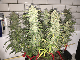 Куст конопли был в полном порядке. Он начал немного подсыхать. До харвеста оставалось несколько недель. На 12-й неделе гровер начал промывать растение с использованием Mammoth P. Внизу куста начали желтеть листья.