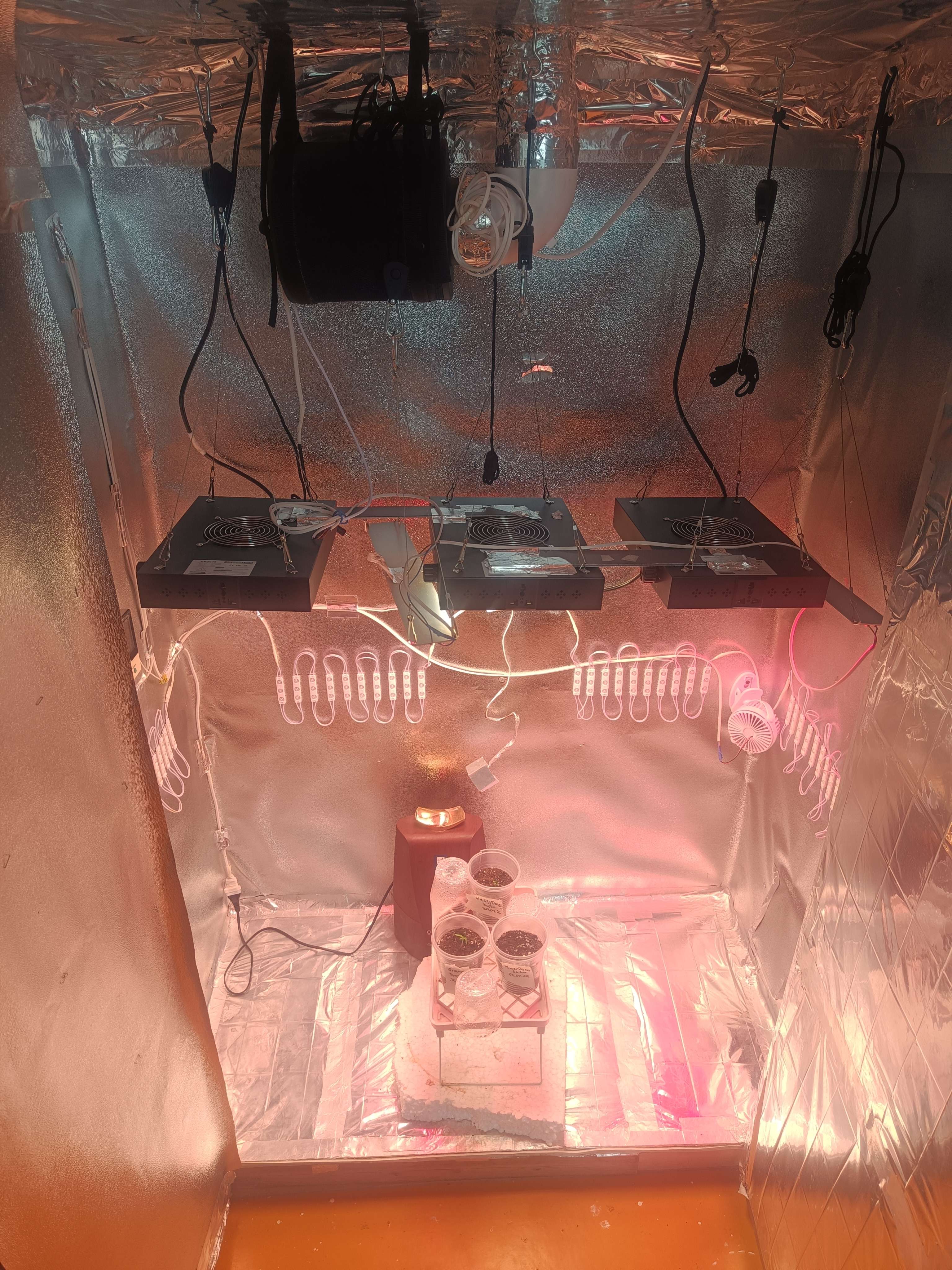 Свет - 200Вт x 3 281 samsung full spectre + minifermer booster 4.9 30 ВТ x 2 + по 27 Вт 4500 к 4 шт на стенках досвет