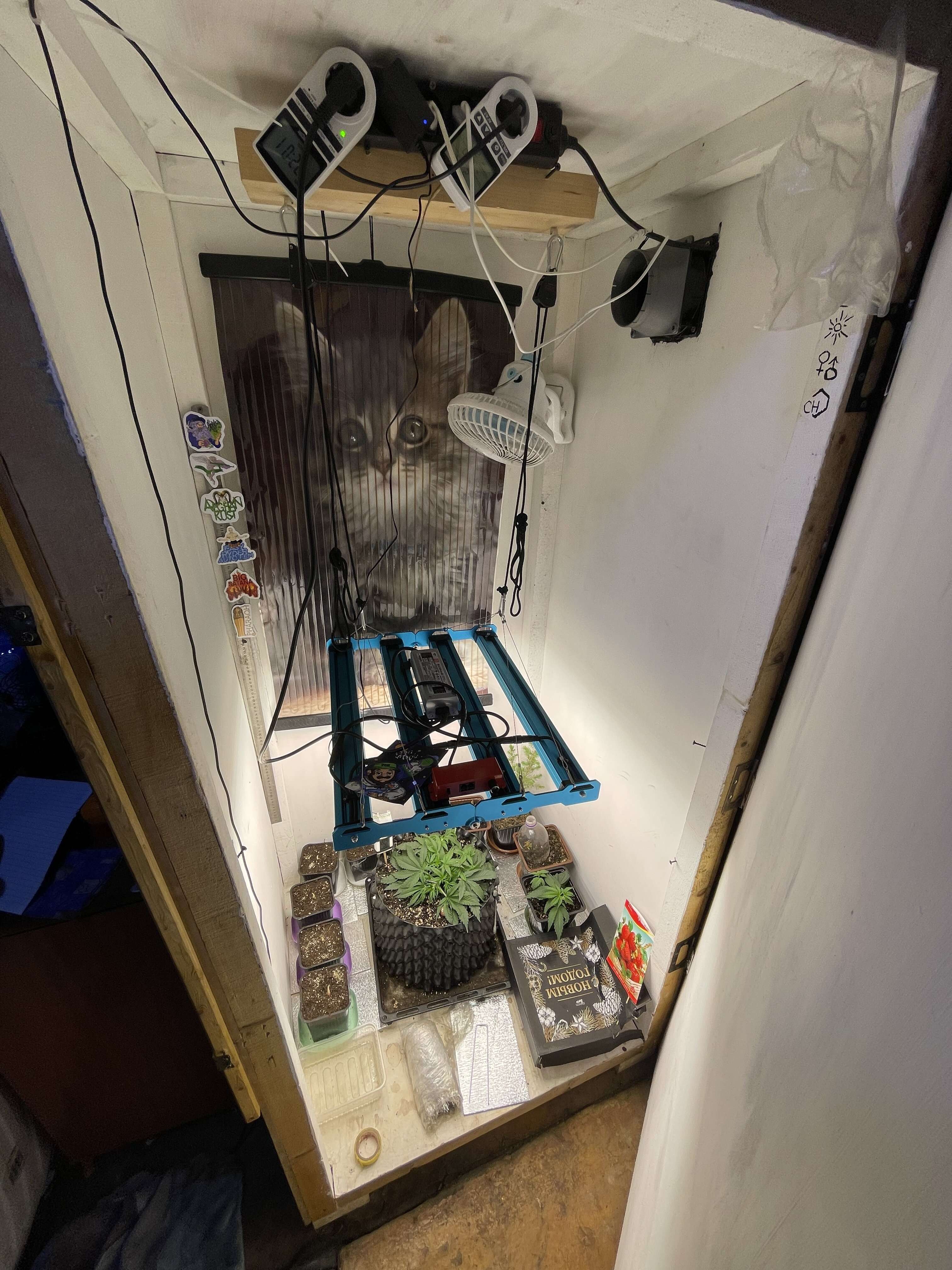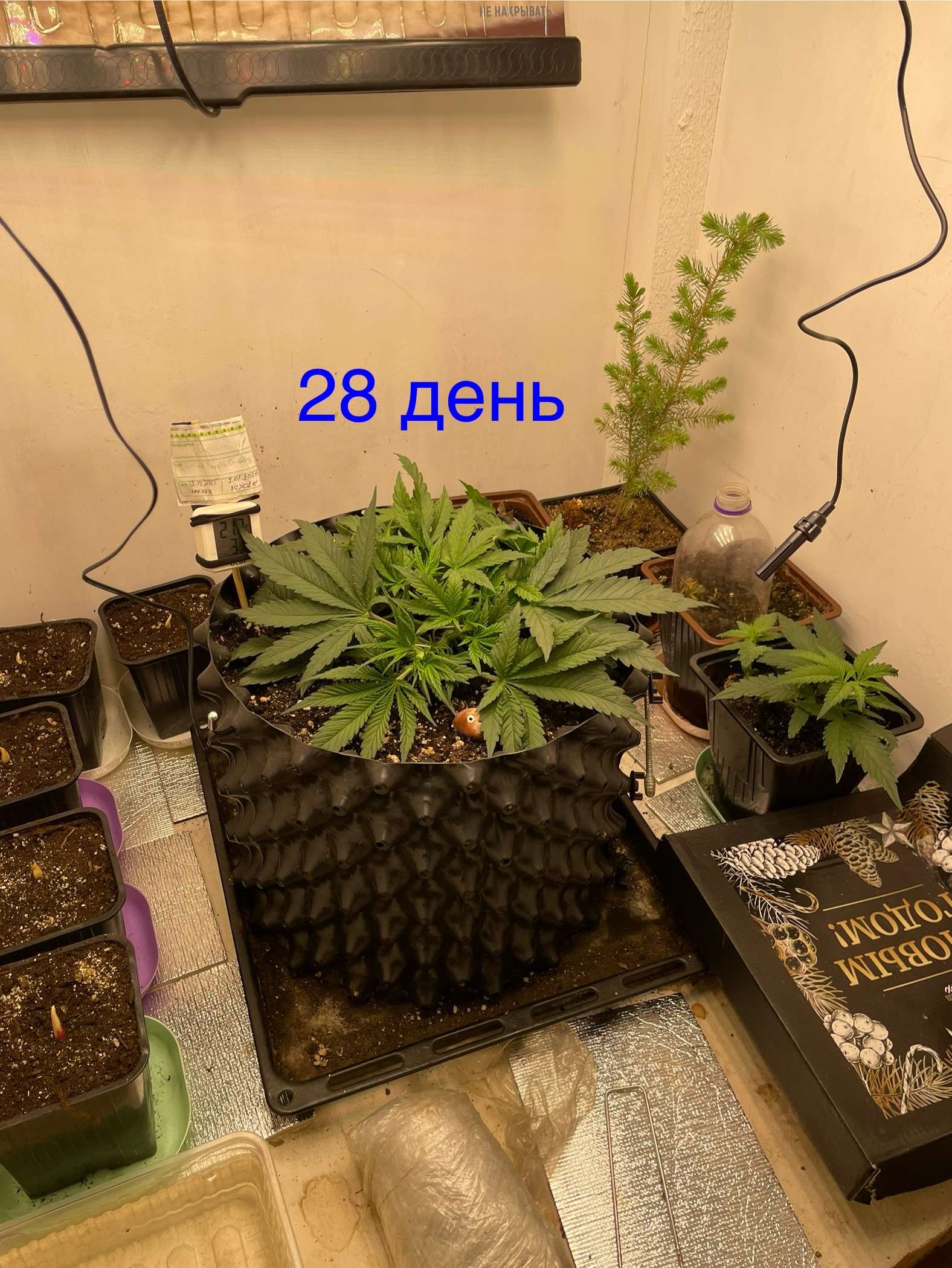 Так что могу сказать вчерашний полив был лишний и я отломал листок нечайно, куст уже издает запахи думаю этот гров без фильтра не обойтись, немного уныла девочка, но нечего, пришла разетка с термостатом настроил на 20-28 градусов будем наблюдать…