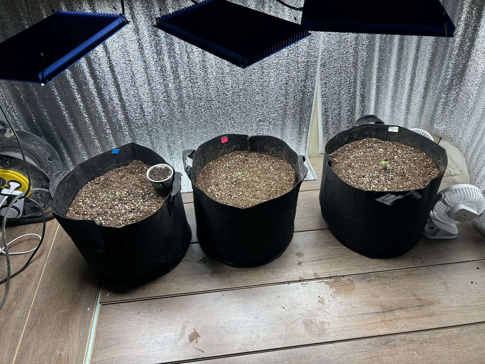 в ожиданиях новогоднего урожая , но я не унываю три мои малышки переехали в 25л гроумешки, смесь кокос+биогумус и во время пересадки рассыпал корневище, под лед Samsung LM301H 120 w каждая