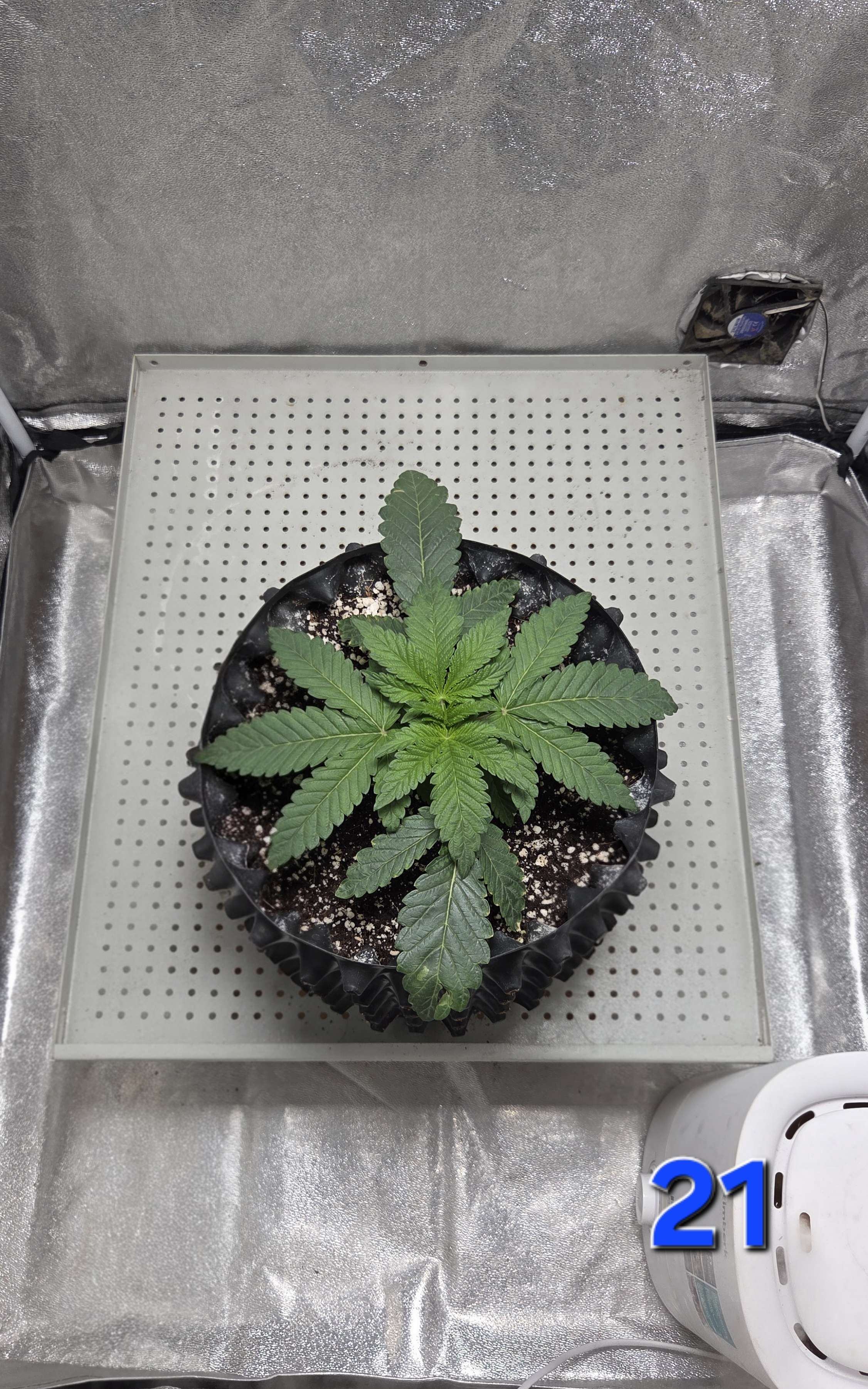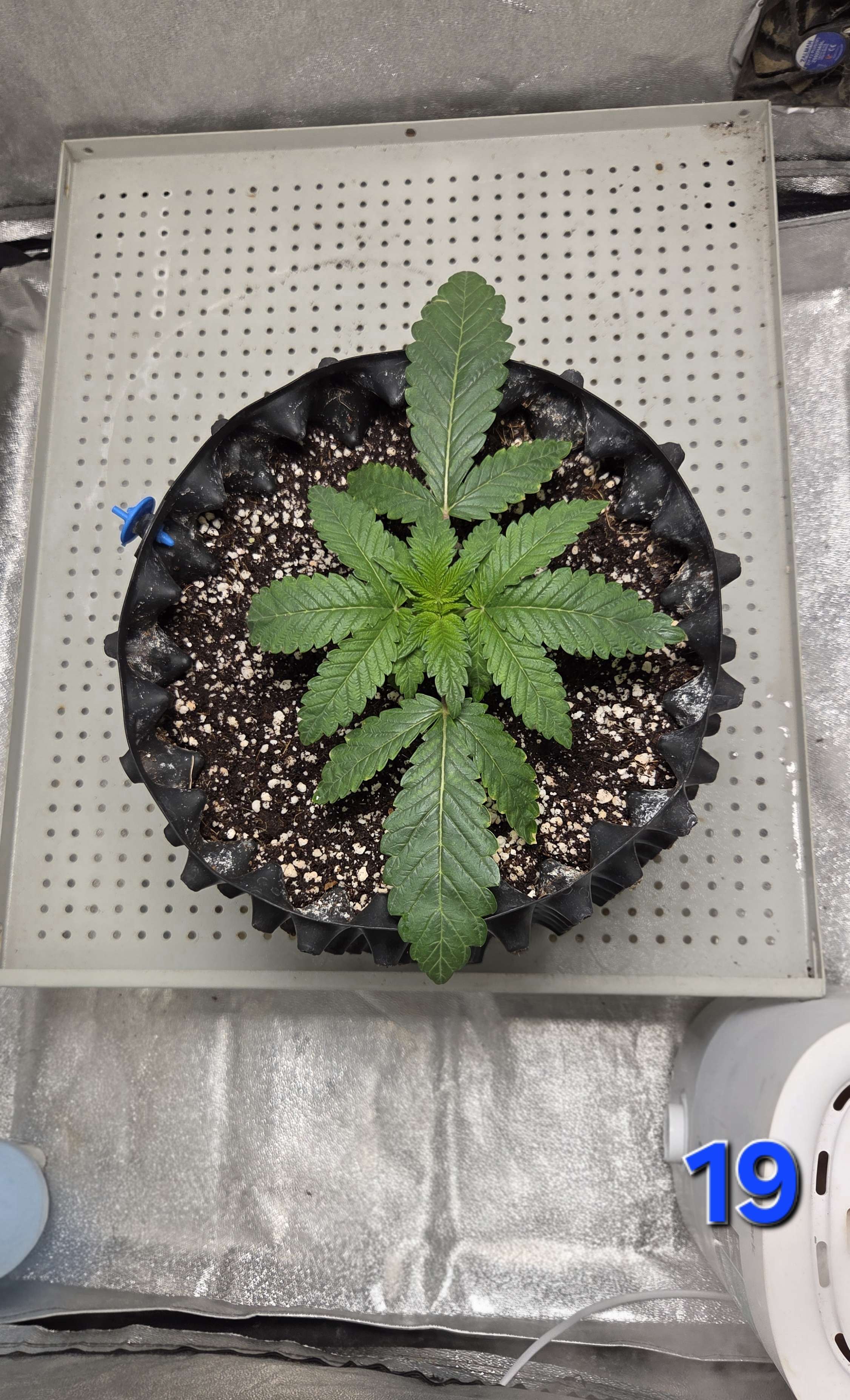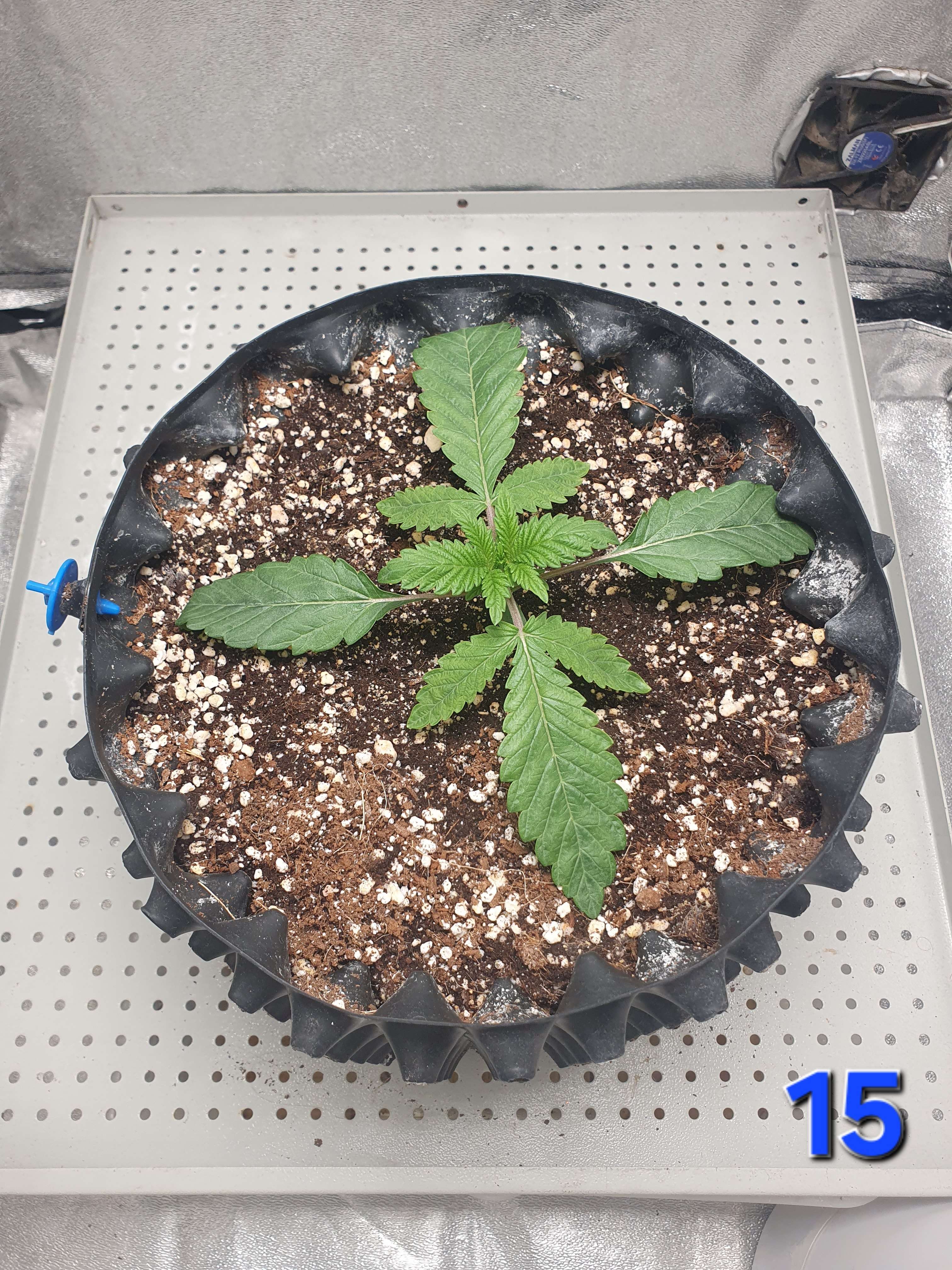 А образовался засол из-за нескольких неблагоприятных факторов описаных на прошлой неделе, в именно - низкая темпа + кривой VPD + свет 24/0 - что в совокупности привело к замедленному росту корневой системы и как следствие не успевала съедать что ей дают.