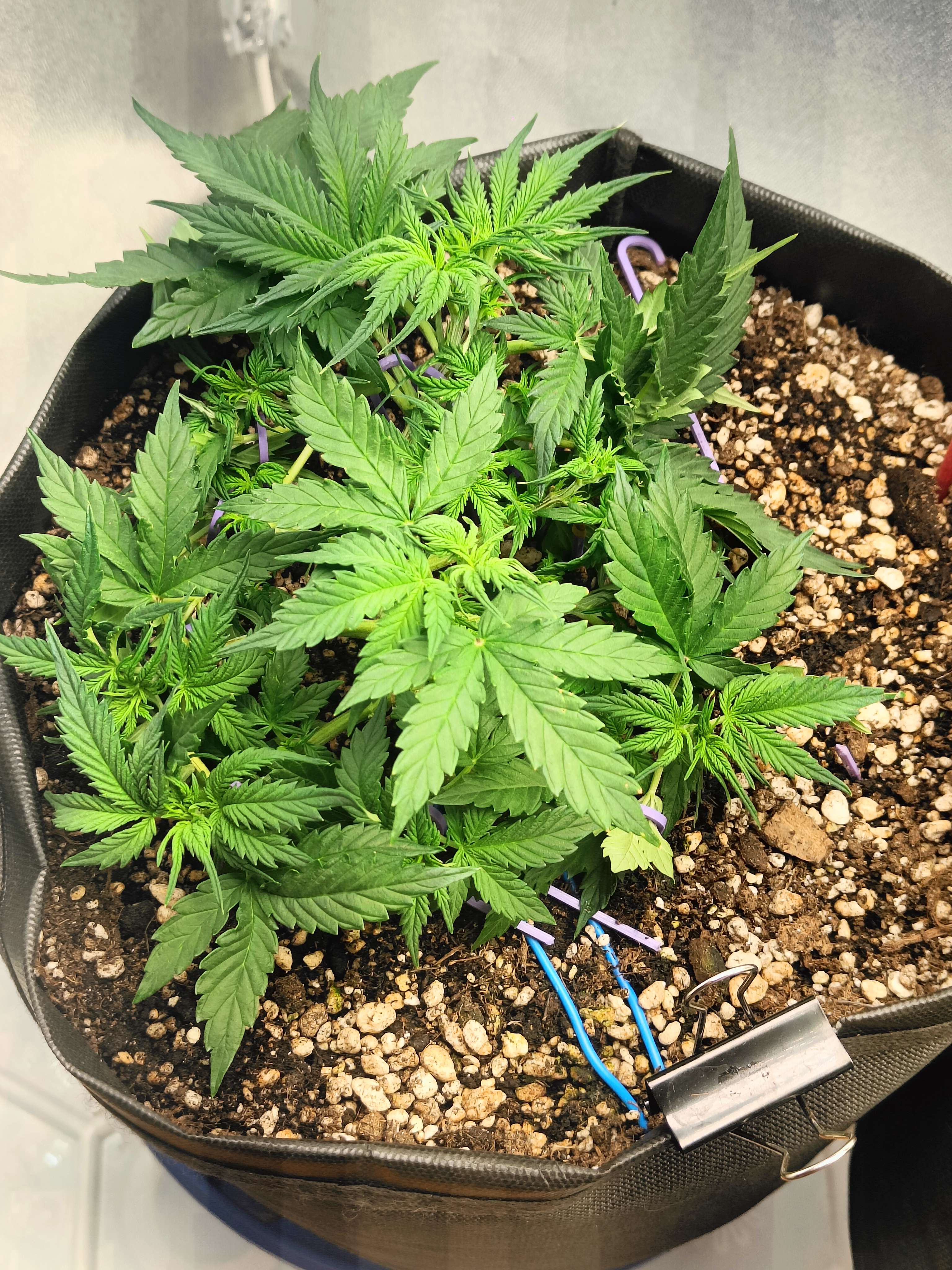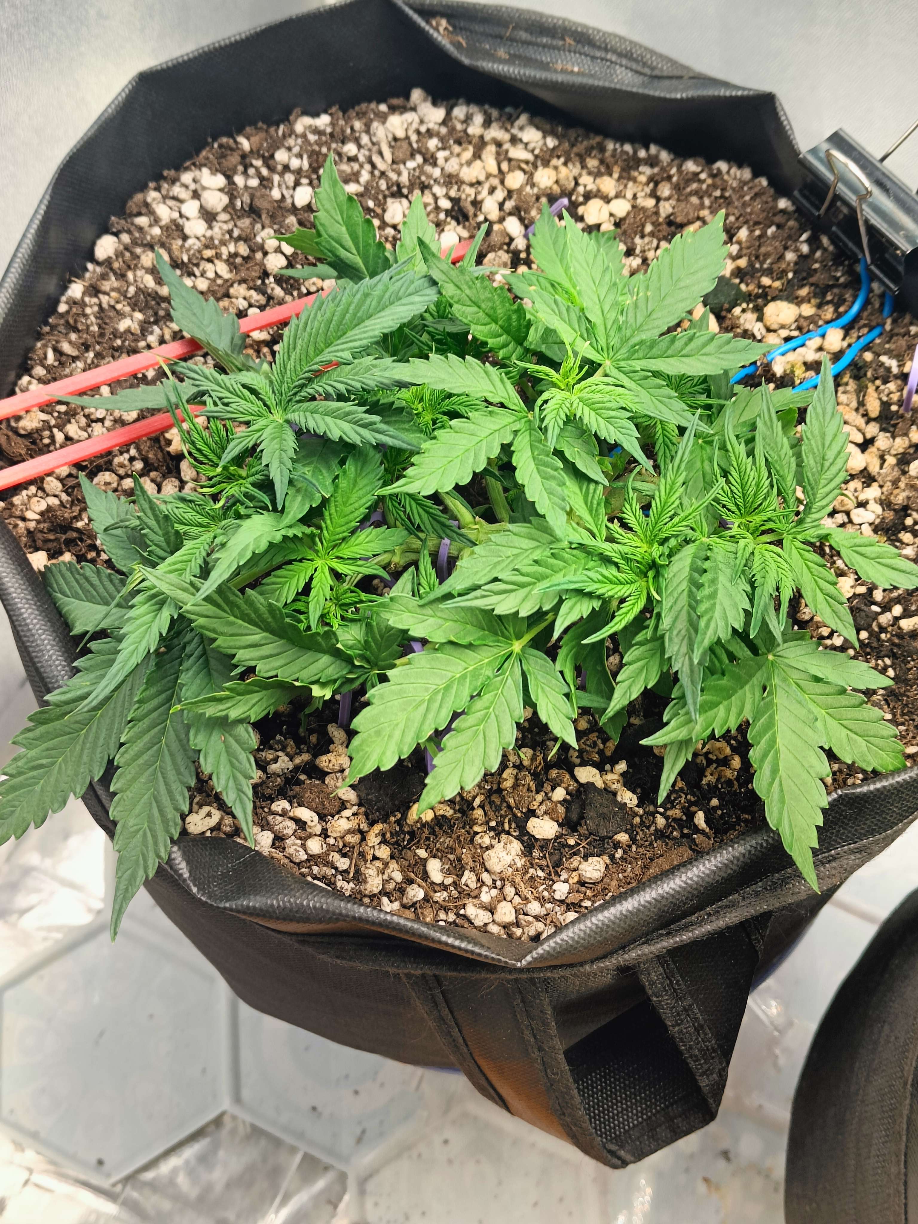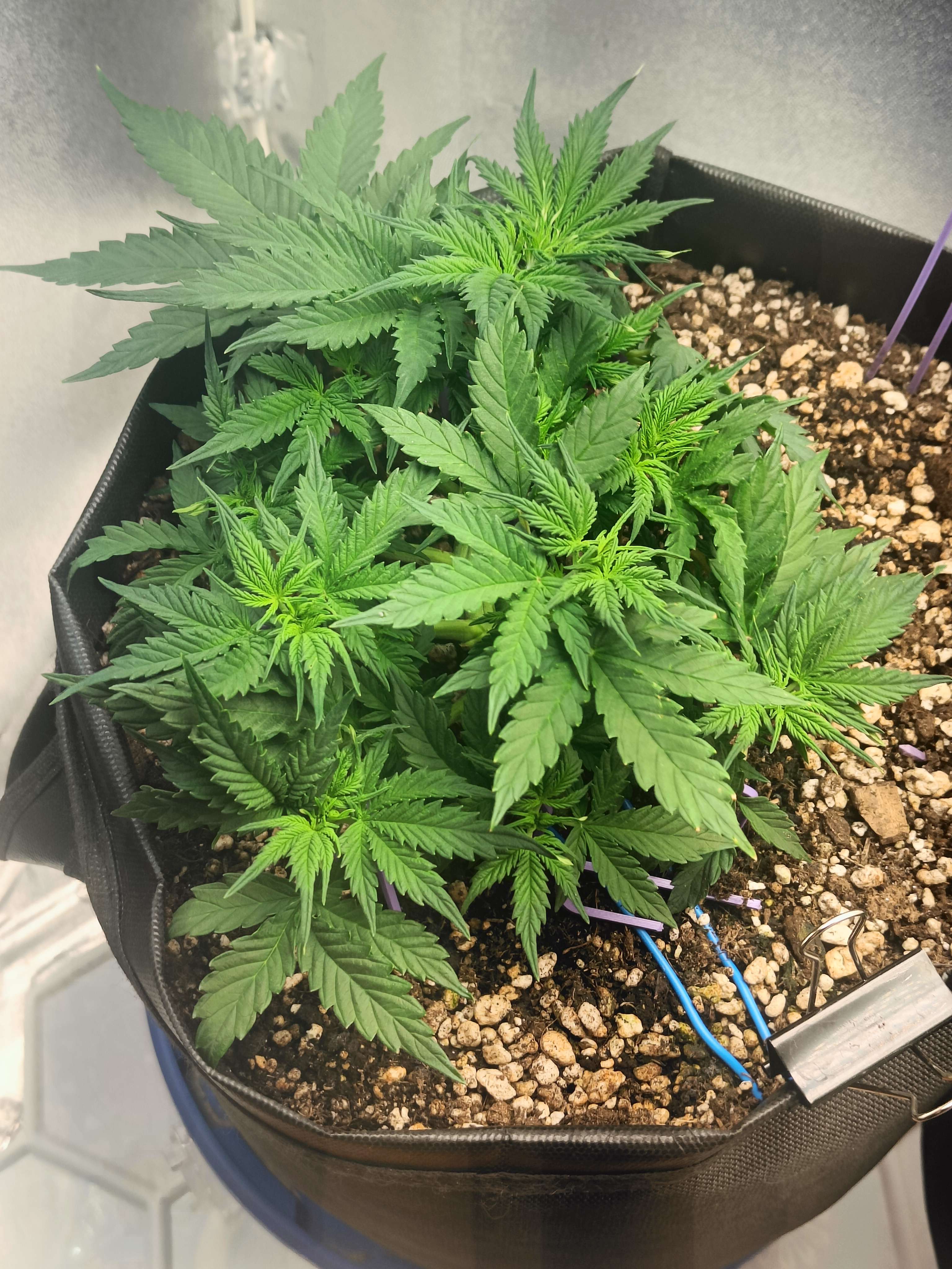 привет бро как будто деф фосфора намечается ну и в целом как будто слегка голодает, замеряй пш почвы и корректируй в случае необходимости. Азот на веге нужен его тоже побольше, ветки хорошие