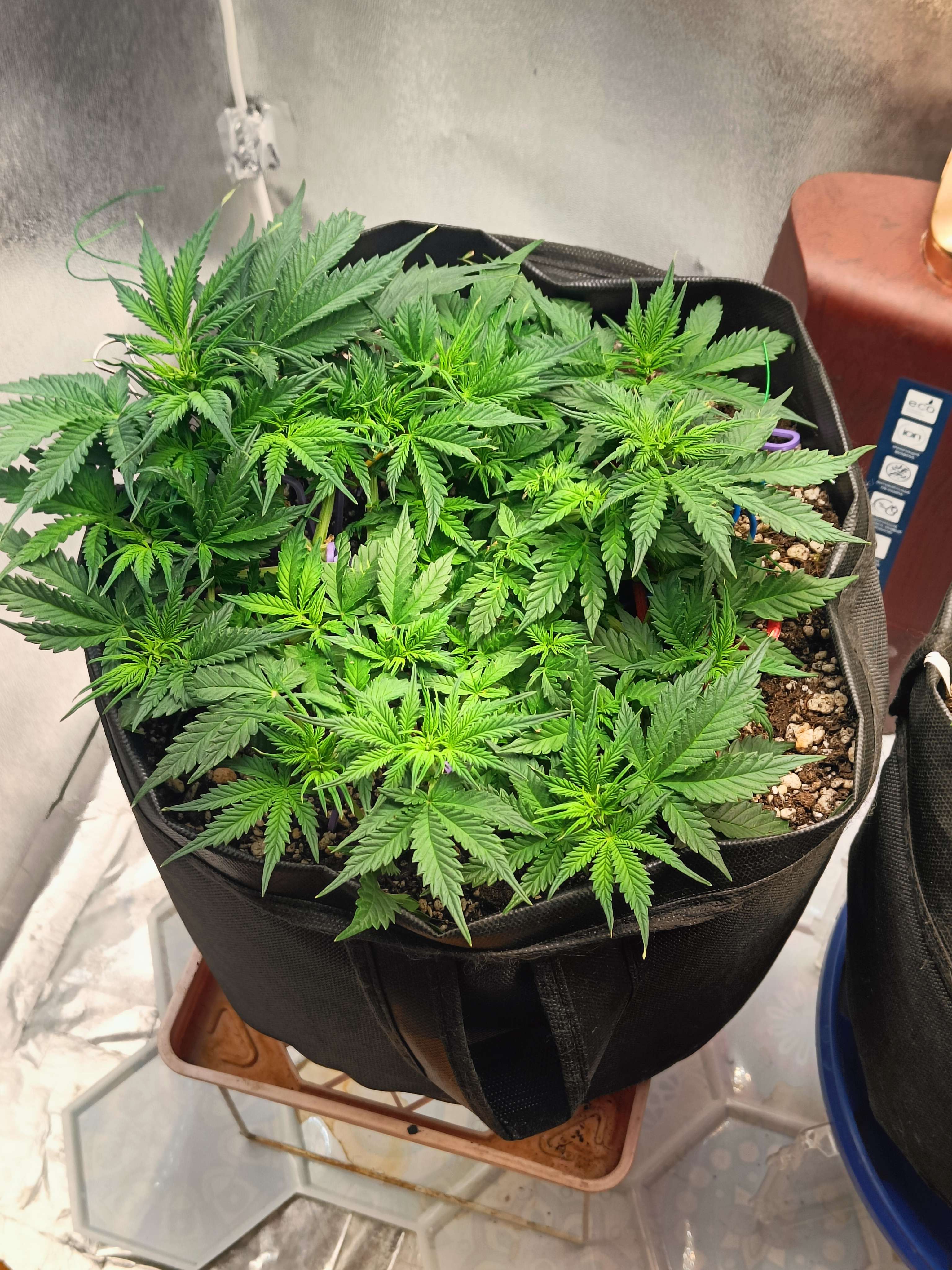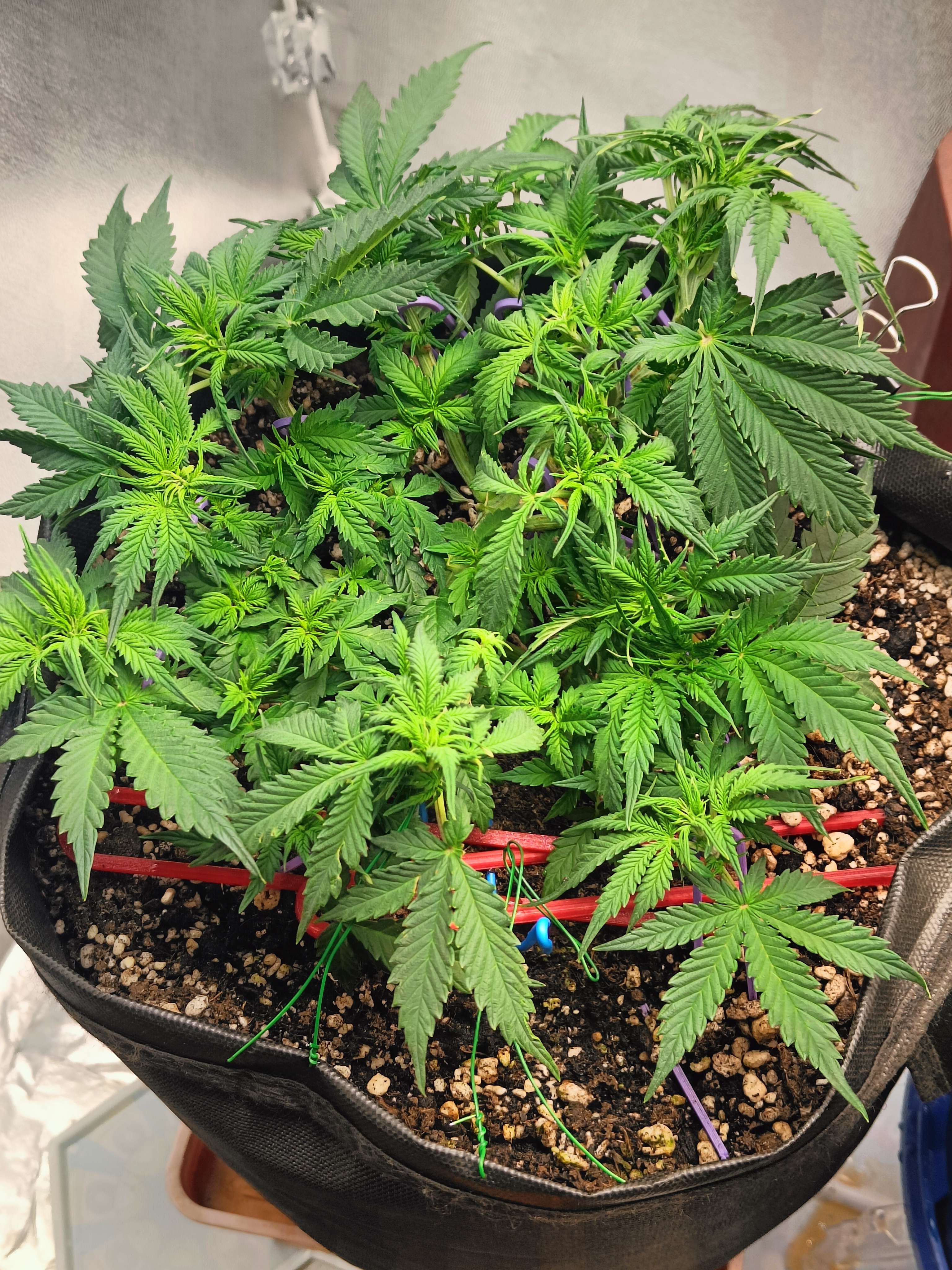 40 День (25.08) Утро ,полив 1.5л 6.54ph + Pro Organic Bloom 2 мл/л + Fulvic 2 мл/л + Pro Bloom 0.2 мл/л,отпустил почти все растяжки пускай вверх растет уже)