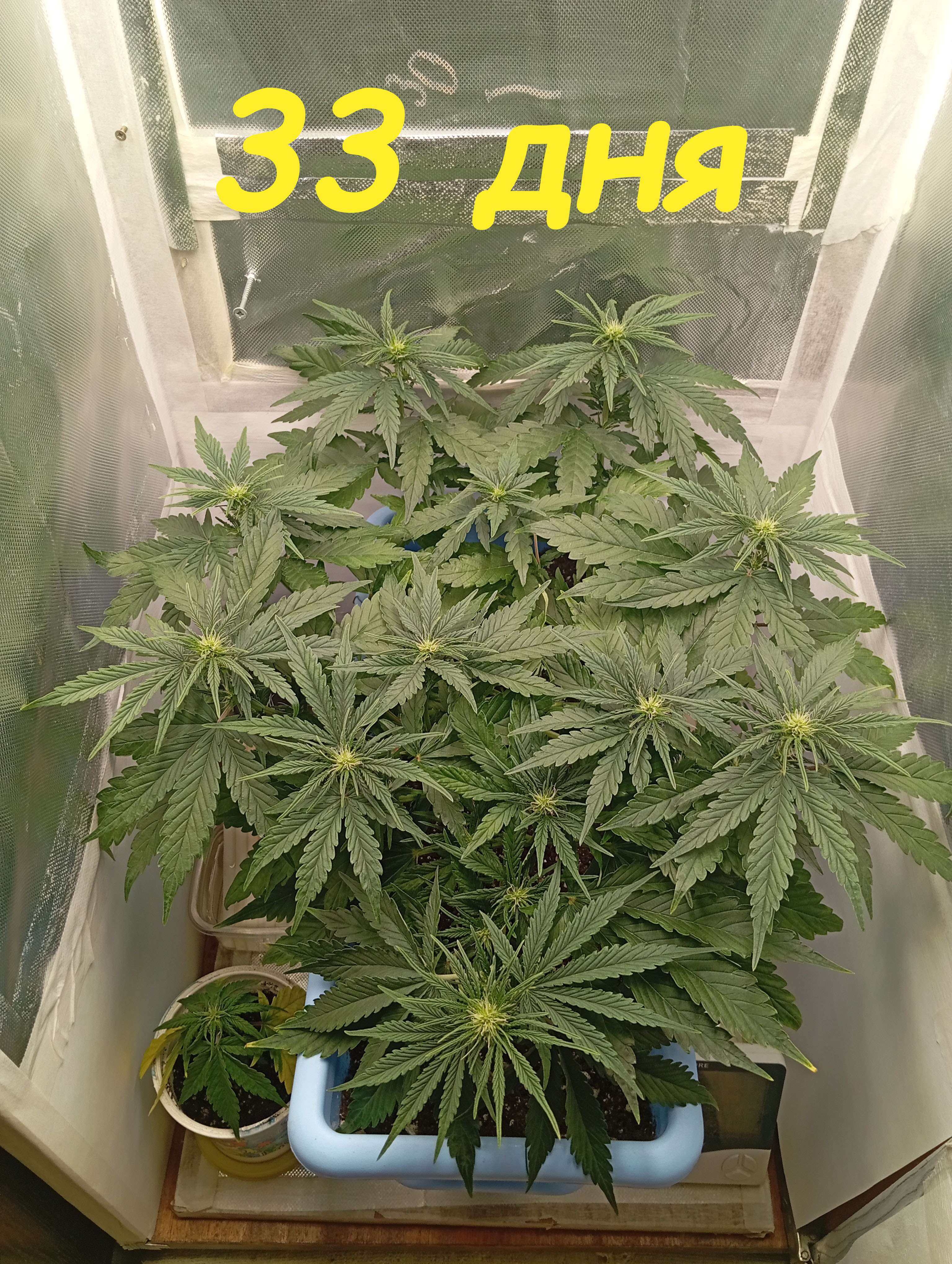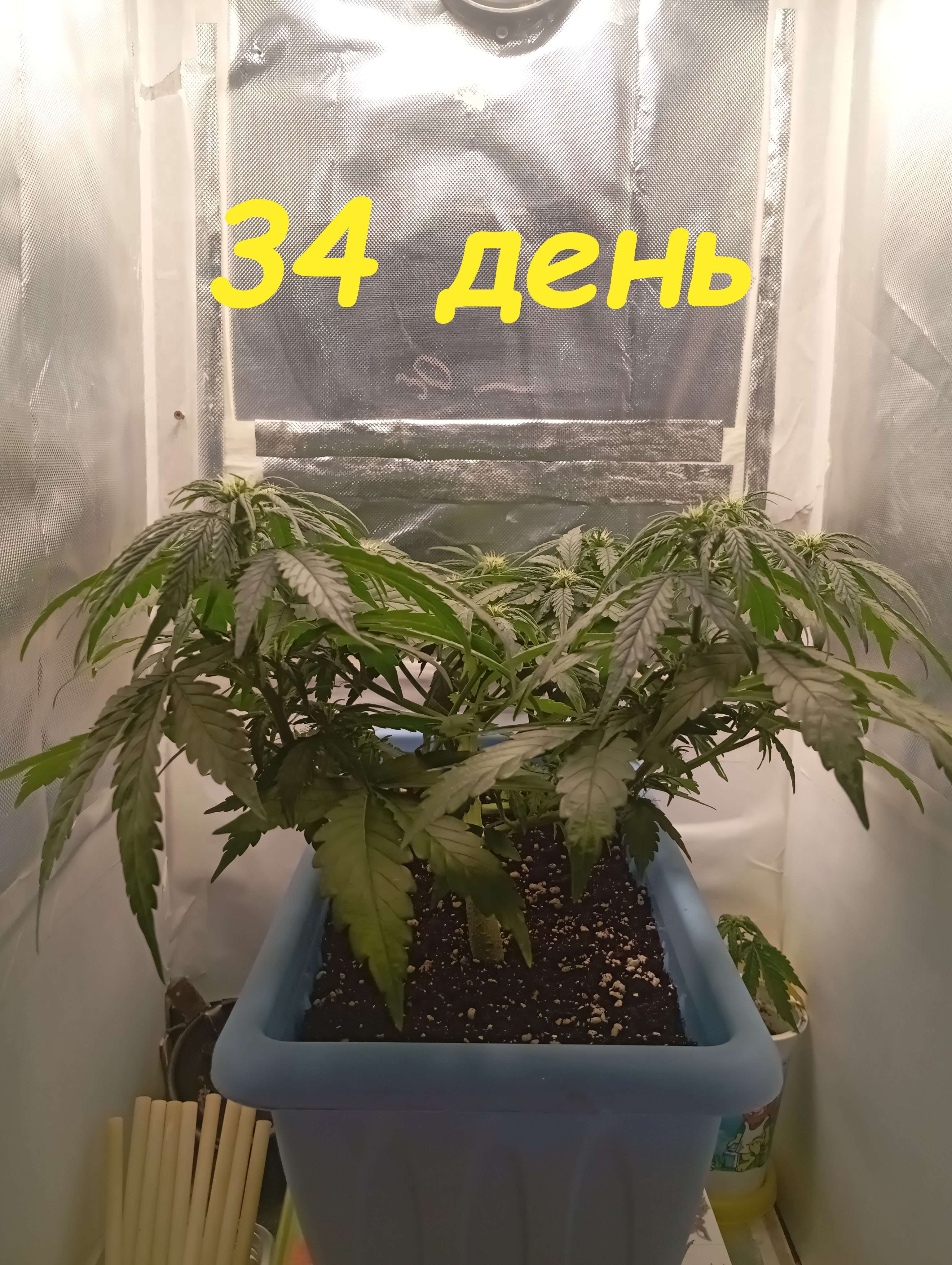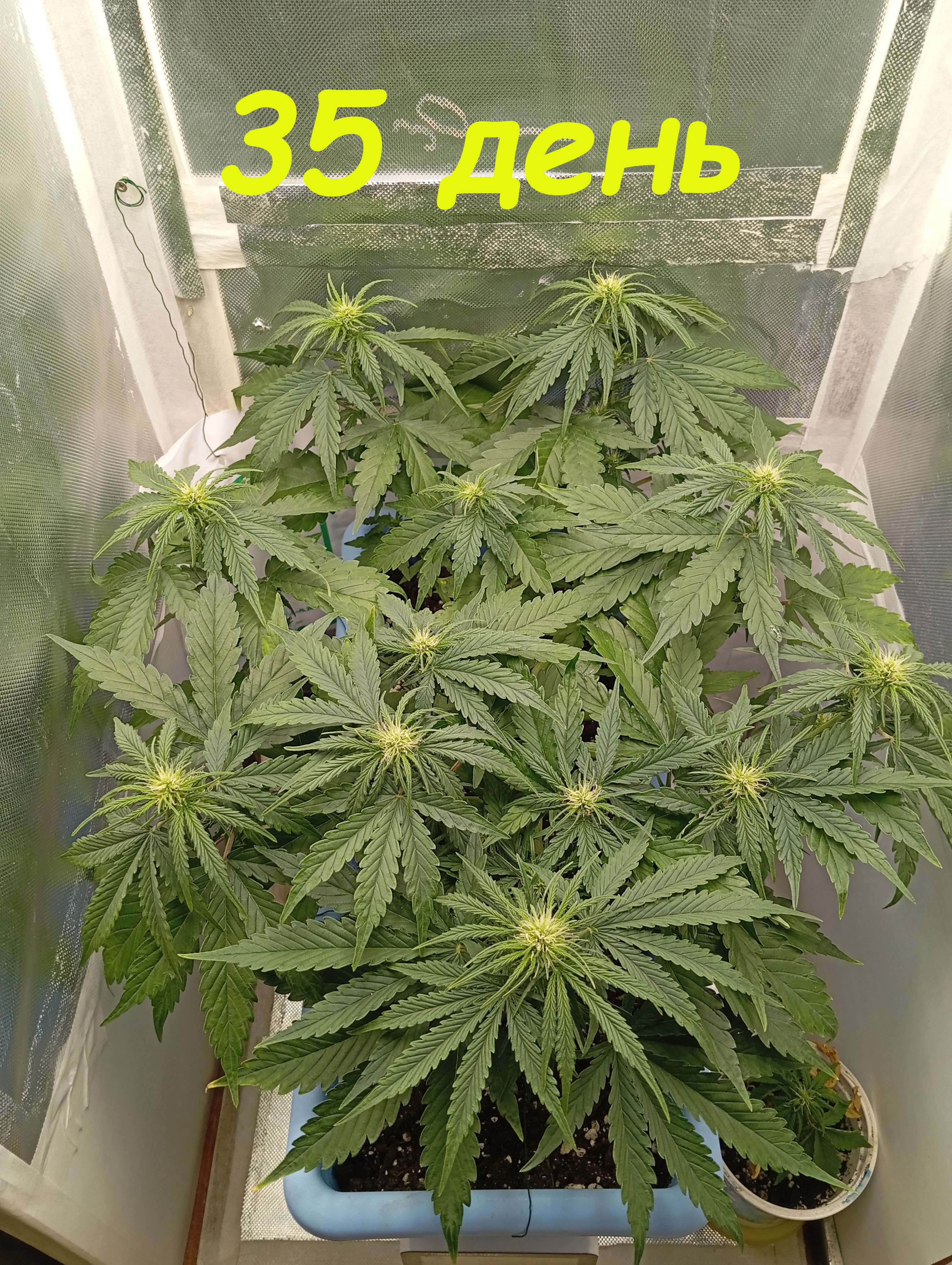 Ежедневно растягиваю проволоку, в день полива ее всю снимаю, через сутки опять растягиваю. Так же сделал еще одну хорошую дефолиацию. Освещенность ~25000lux.