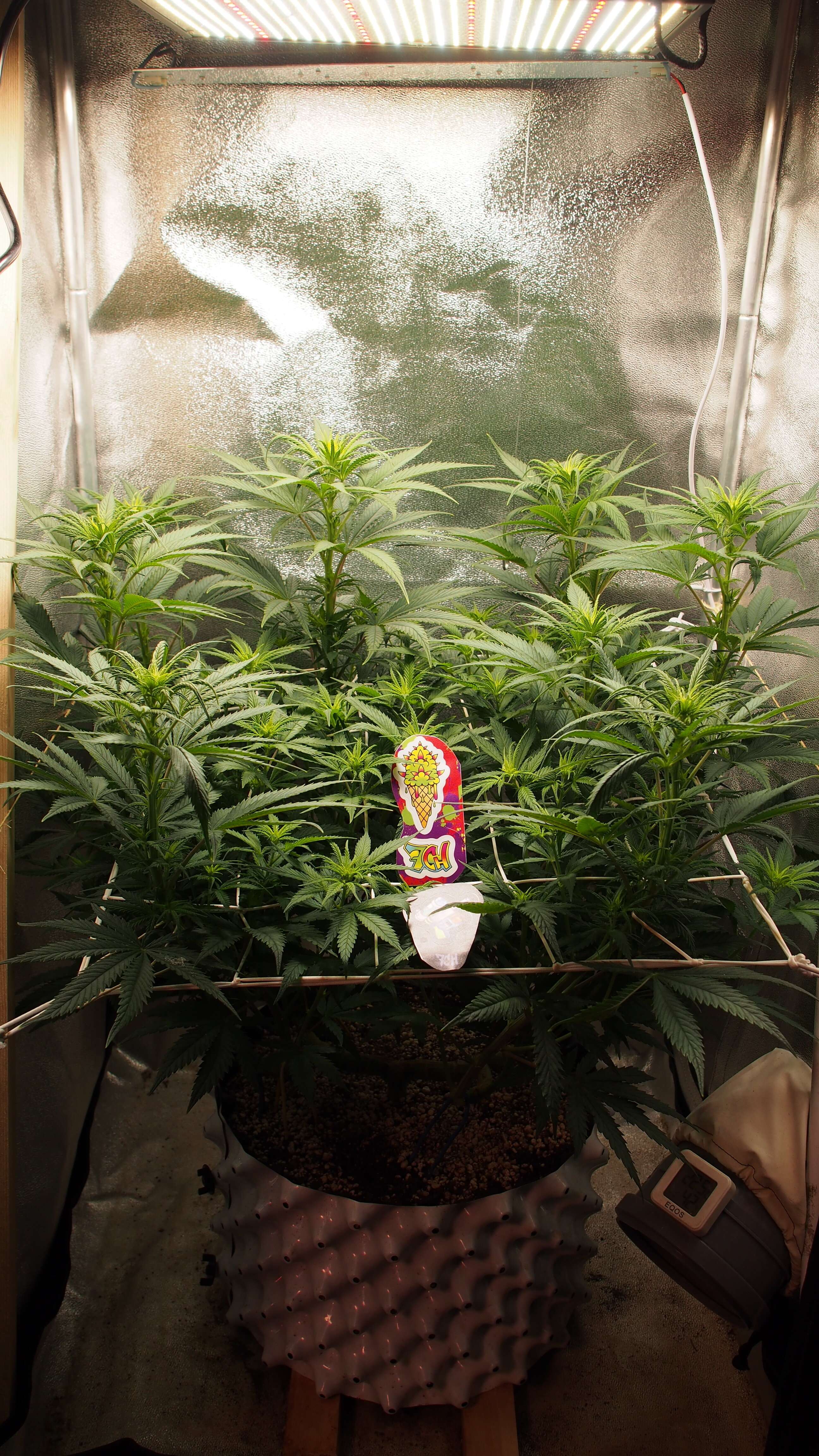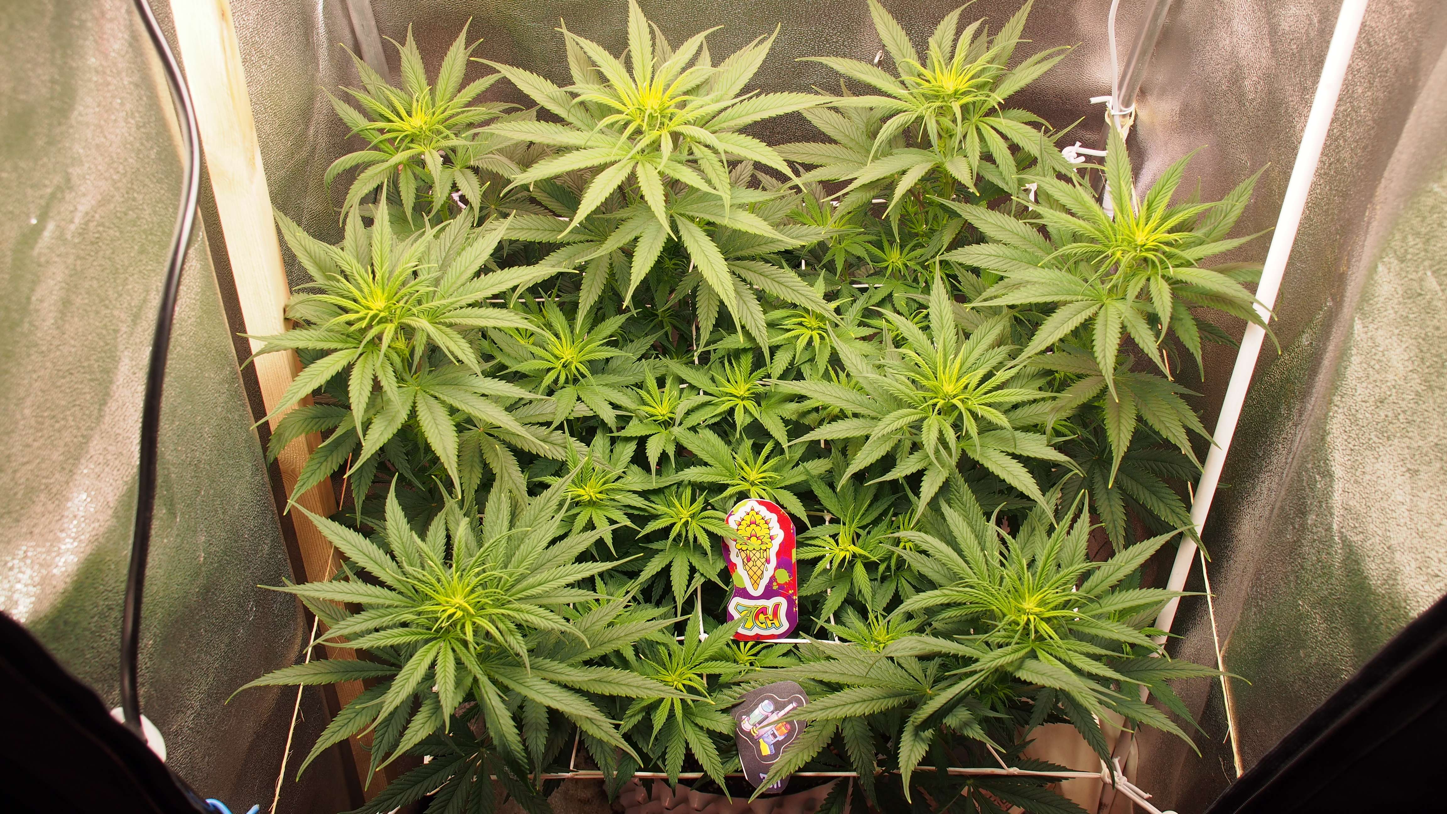По окончании 9-й недели перевёл растишку на 12/12 и в течении пяти дней пол деваха так и не показала (стигмы). Но прилично выстрелила вверх. Поскольку опыта на фотиках у меня мало (давно было), то решил, что "что-то пошло не так" и добавил ночи 14/10. В течении ещё двух дней стигмы так и не показались. Пришлось прибегнуть к самому верному способу: создать на форуме тему с вопросом "когда же зацветёт?" ..и тут же на следующий день повылезли стигмы. Способ рабочий!