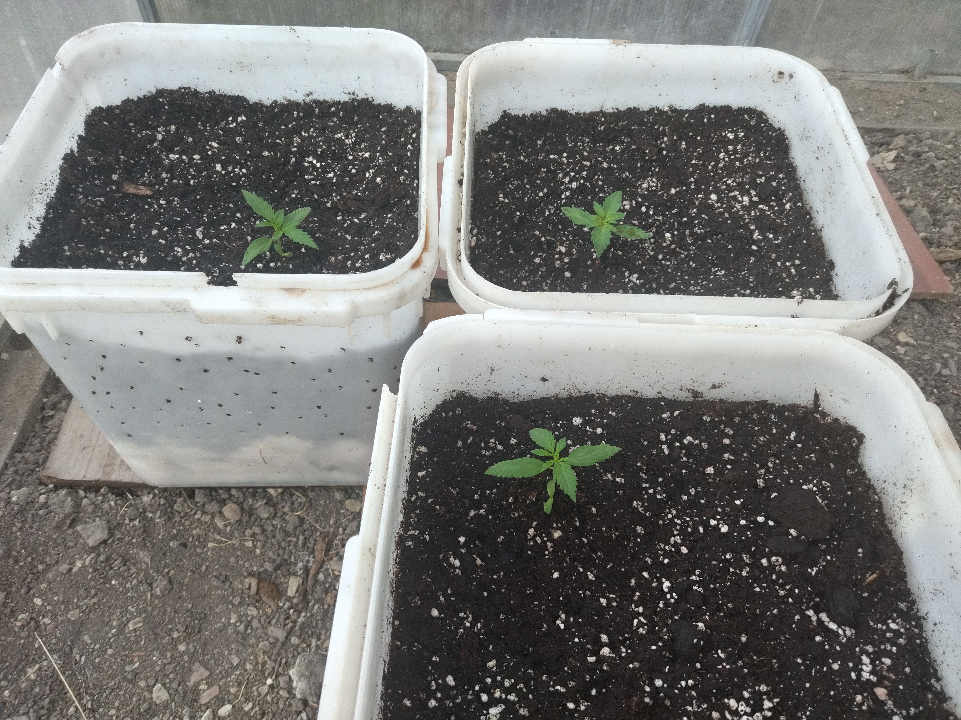 Сегодня переехали в горшки, как взрослые. Грунт Био биз пролил стимом от фиддингов. Теперь едем на грунте без кормежки две недели. Кстати, был обнаружен квартирант нелегал, при пересадке выжил, пусть пока растет. Кстати, корни за 10 дней дна горшка литрового достали запросто. Короче, пошла жара в хату!