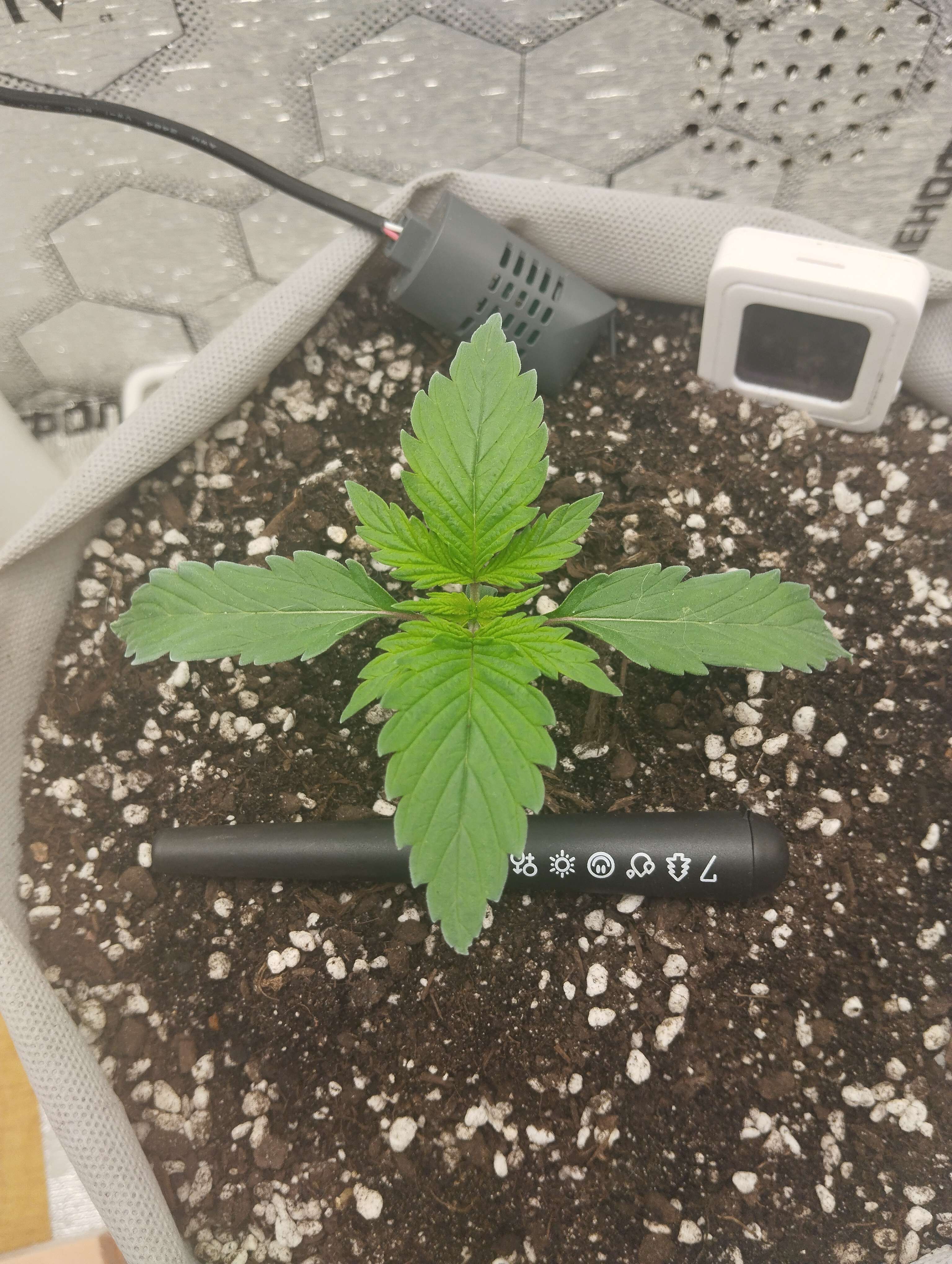23. 02.11 дней от появления на свет. Посмотрел опять разные репорты и по свету получается кто на что горазд. Моё личное ощущение, что она опаздывает в развитии. Новые листики только 5см в диаметре. Доверия к телефонному люксометру нет. Ставил руку над макушкой и даже тепла нет. Прибавил я хз сколько. По телефону 18000 люкс. Горшок по весу не меняется, получается не сохнет. Следующий гров подготовлю приборы. Не люблю я гадать. Этот гров с такими разбегами по показателям превращается в метод тыка.