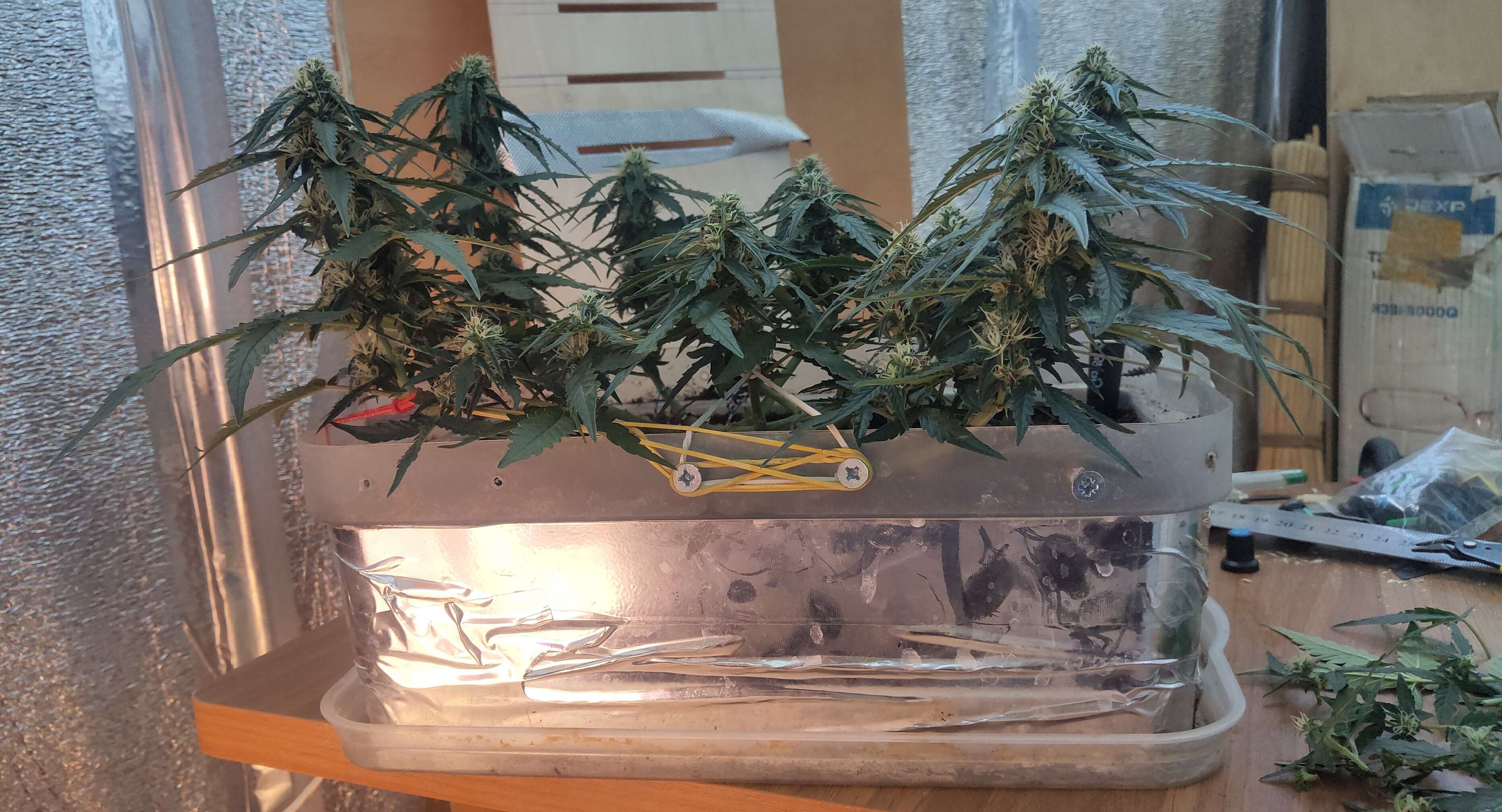 8.08 полил компонтом, послабее, но поьольше реактивов в нем) сделал жестокую лолипоп-дефолиацию) лолипопом ее трудно назвать из-за роста, но и дефолиацией нельзя тоже. Что-то новенькое)))