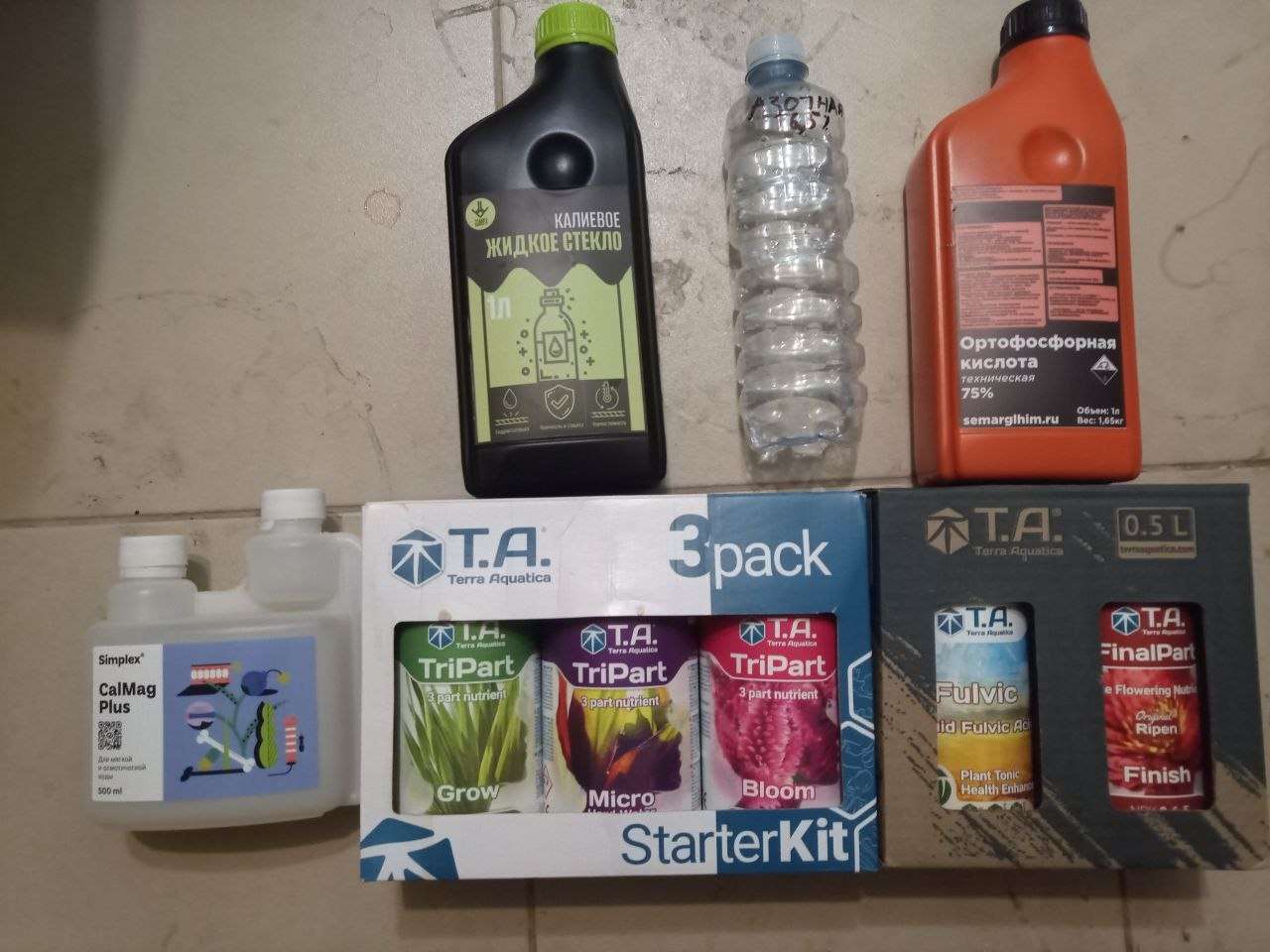 ПШДаун на Цвет - ортофосфорная кислота. цветок жрет из нее фосфор(P). ее я не разводил, потому что объемы полива уже больше, но ее я не капаю, а обмакиваю пипетку в нее и в компот.