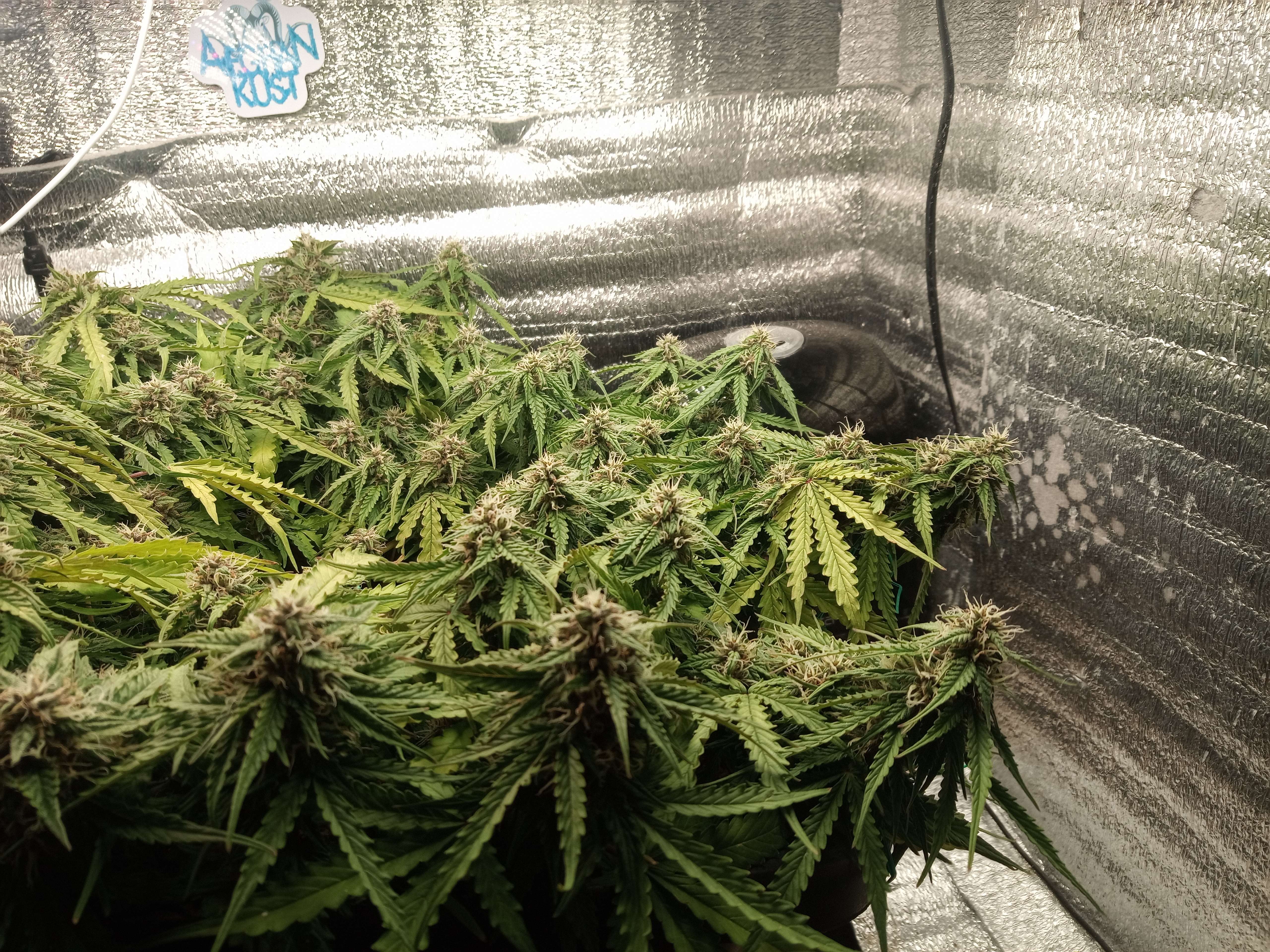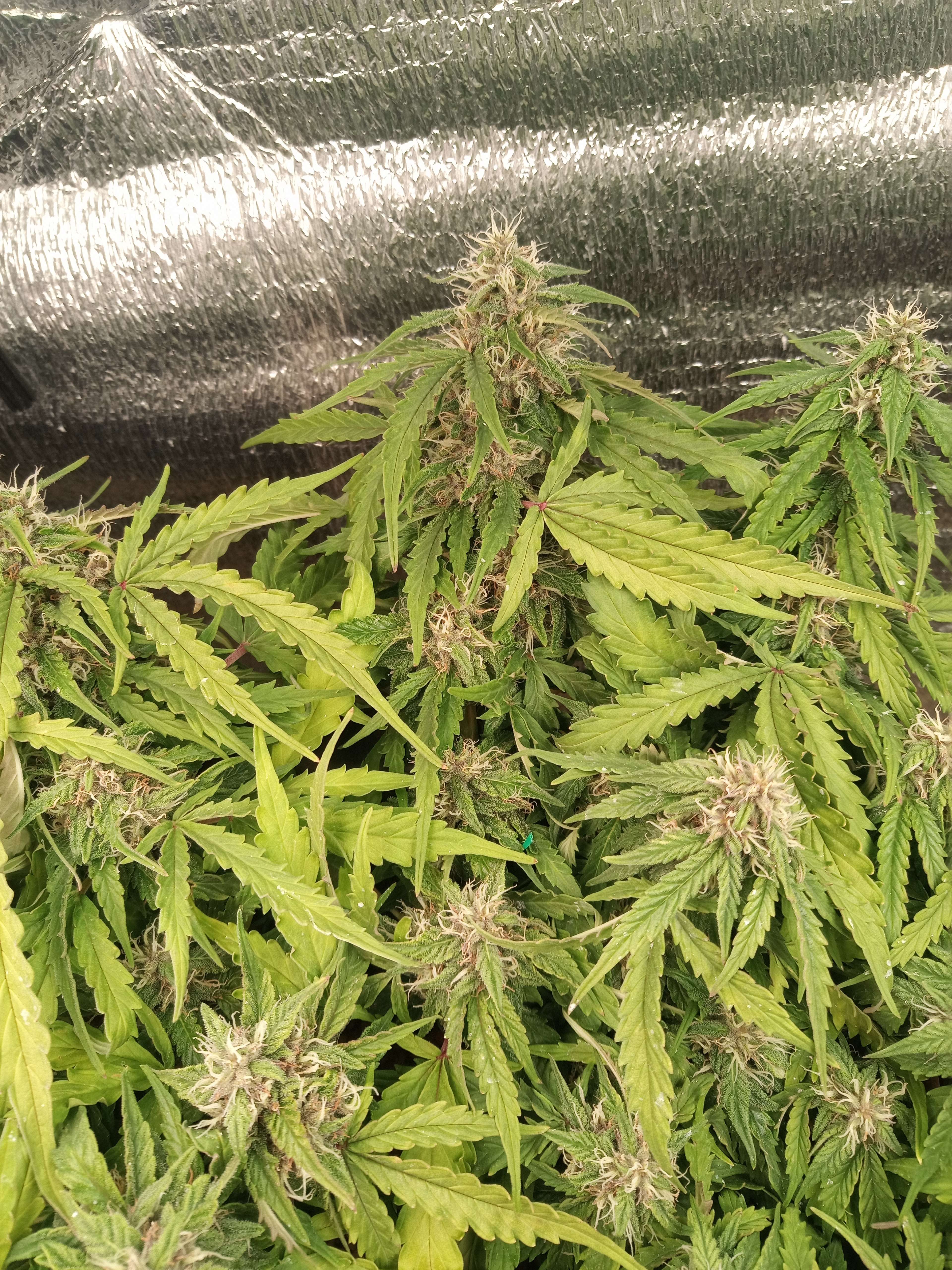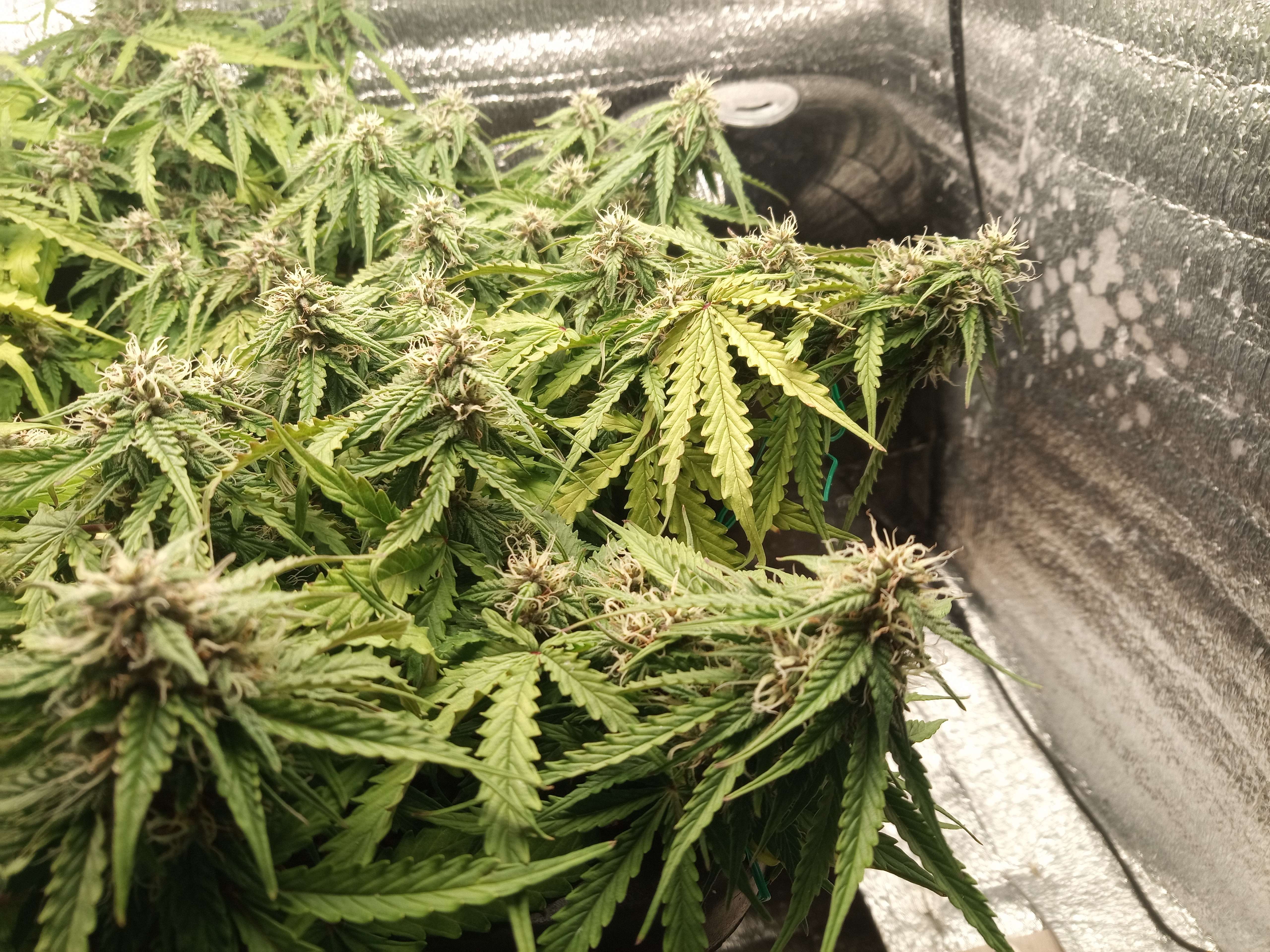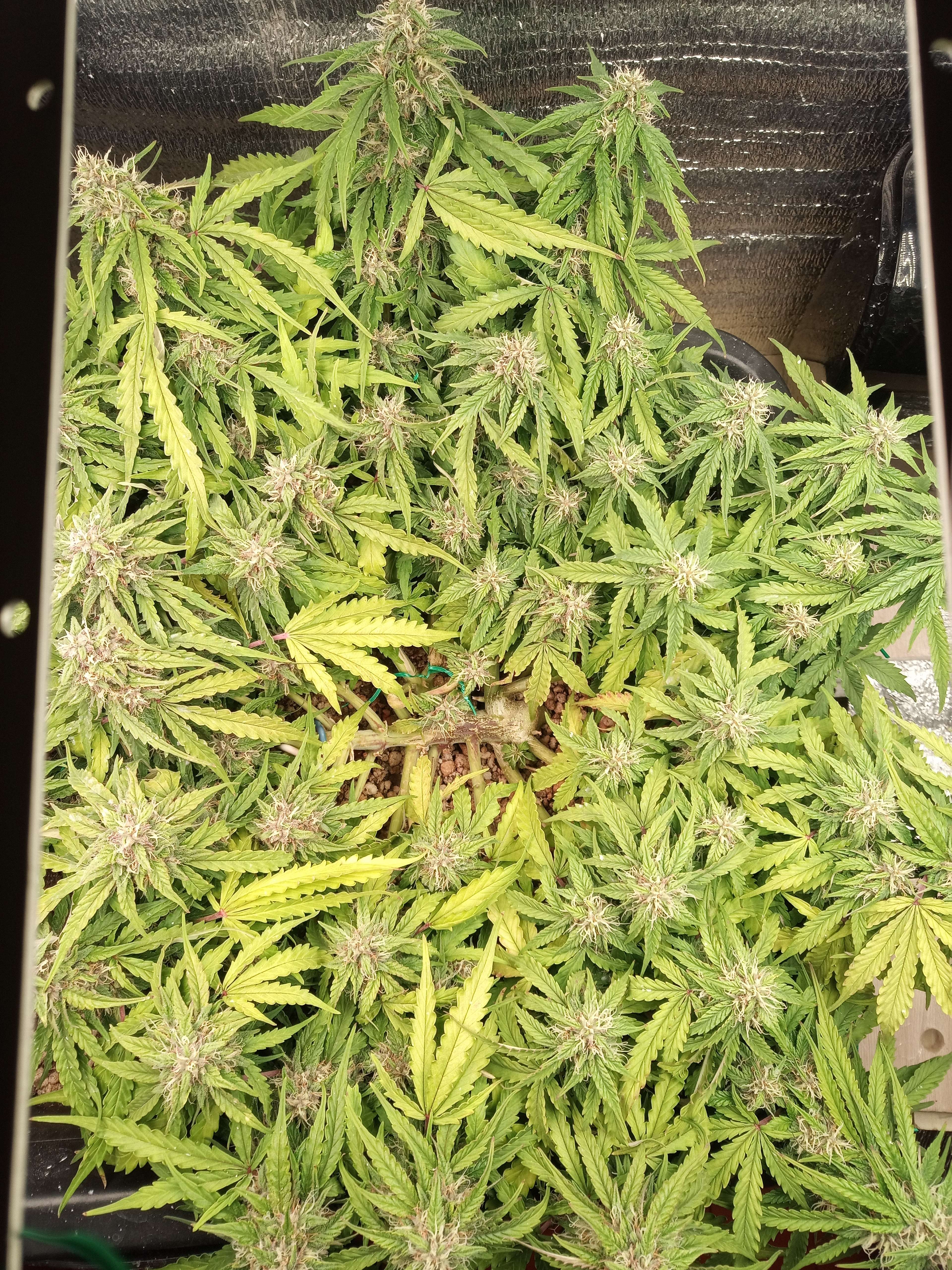 upd неделя скучная, растем, потихоньку желтеем. это растение развивается явно быстрее предыдущего, даже несмотря на тормоза в начале цикла. фото с этой недели сделаны на 62й день от каски, и, в принципе, харвить уже можно, и есть что в плане веса. трихомы янтарные начали появляться. но при этом обильное образование новых стигм. рипена недели 2 назад плеснуть, и был бы готов за 2 месяца. вот что Фульвик животворящий делает.