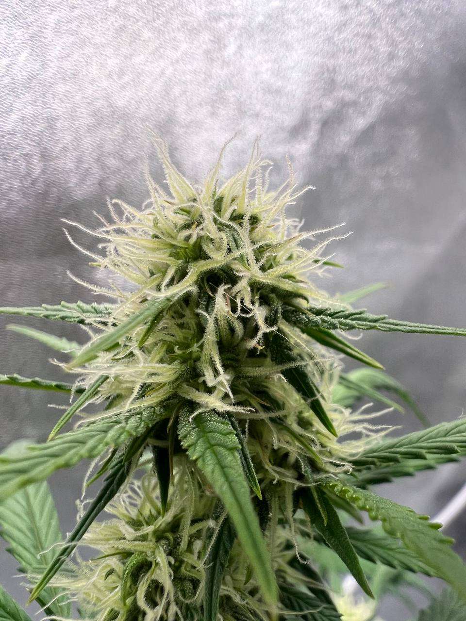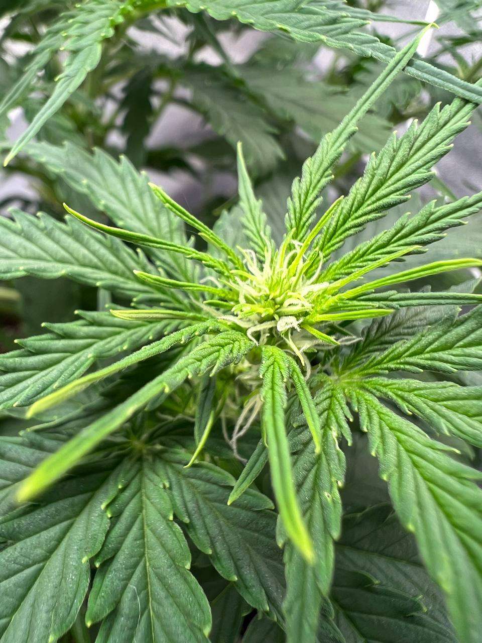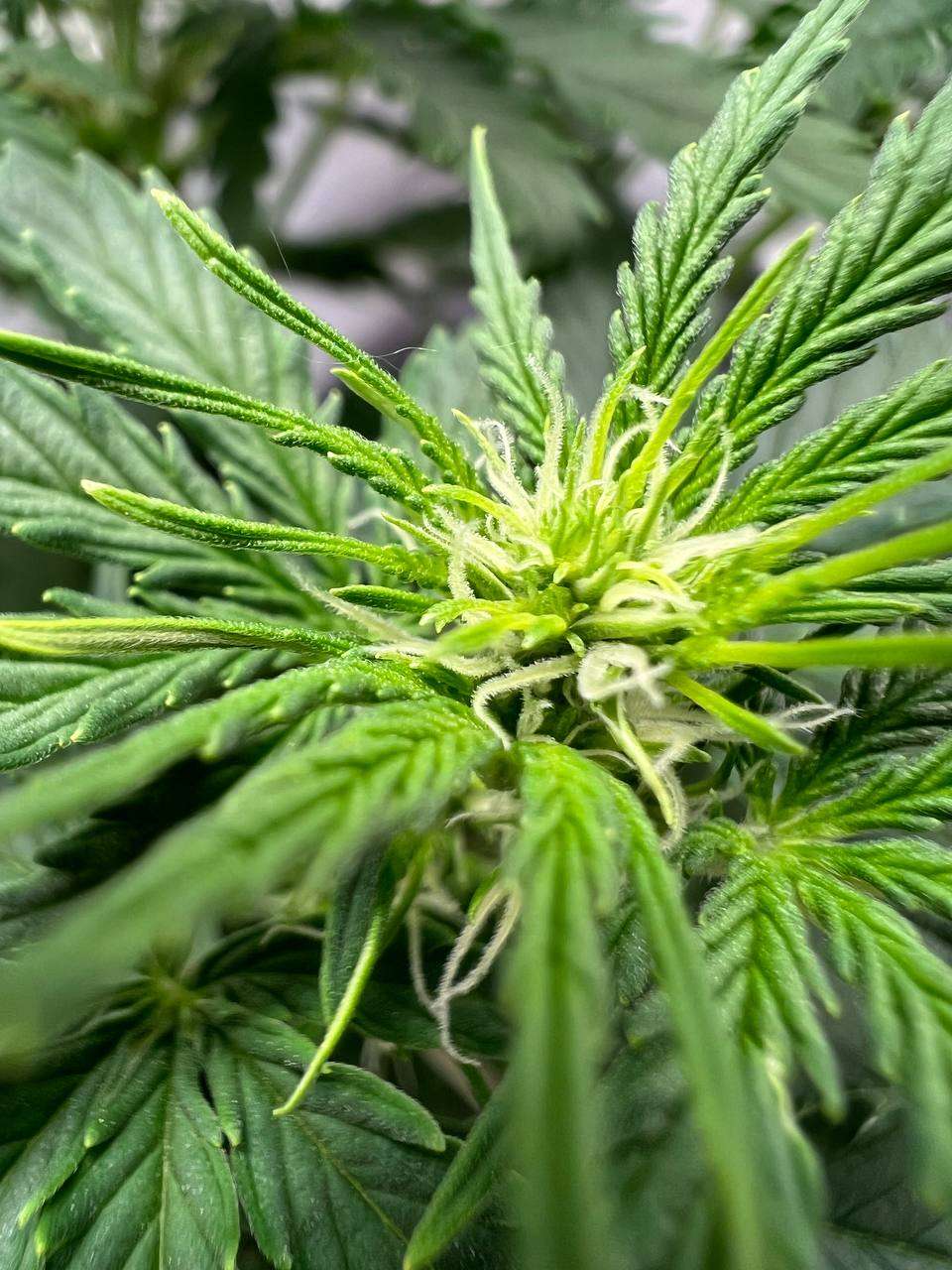 Поливал красоток через день, чередуя компот с чистой водой два через раз. Люся (50 дней) уже цветет во всю. Всё, вроде хорошо. Шишки растут и набирают вес. Красота! Звездочку (40 дней / 34 см) решил не гнуть. Густая малыха.
