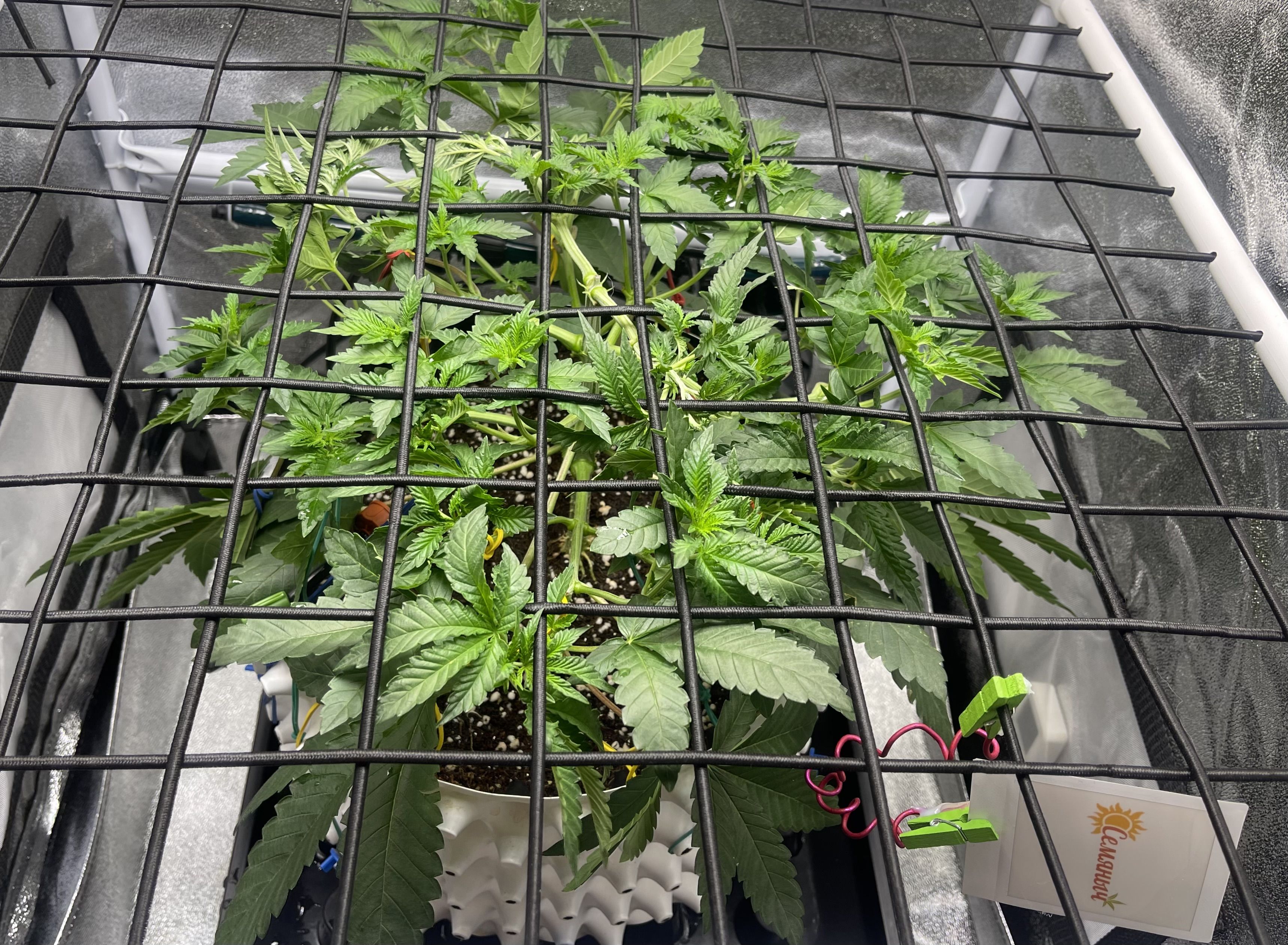 На неделе поставила сетку , дополнительно к тренировкам Lst , Дефолиации - тренировка называется Scrog . Для индики она используется редко, самый лучший вариант для сетки - это сативные сорта! Чтобы контролировать рост . Поэтому не рекомендую, либо вегу затягивать , чтобы заполнить все пространство . Я ее до этого грова никогда не использовала, поэтому хочется попробовать, понять, что это и как.