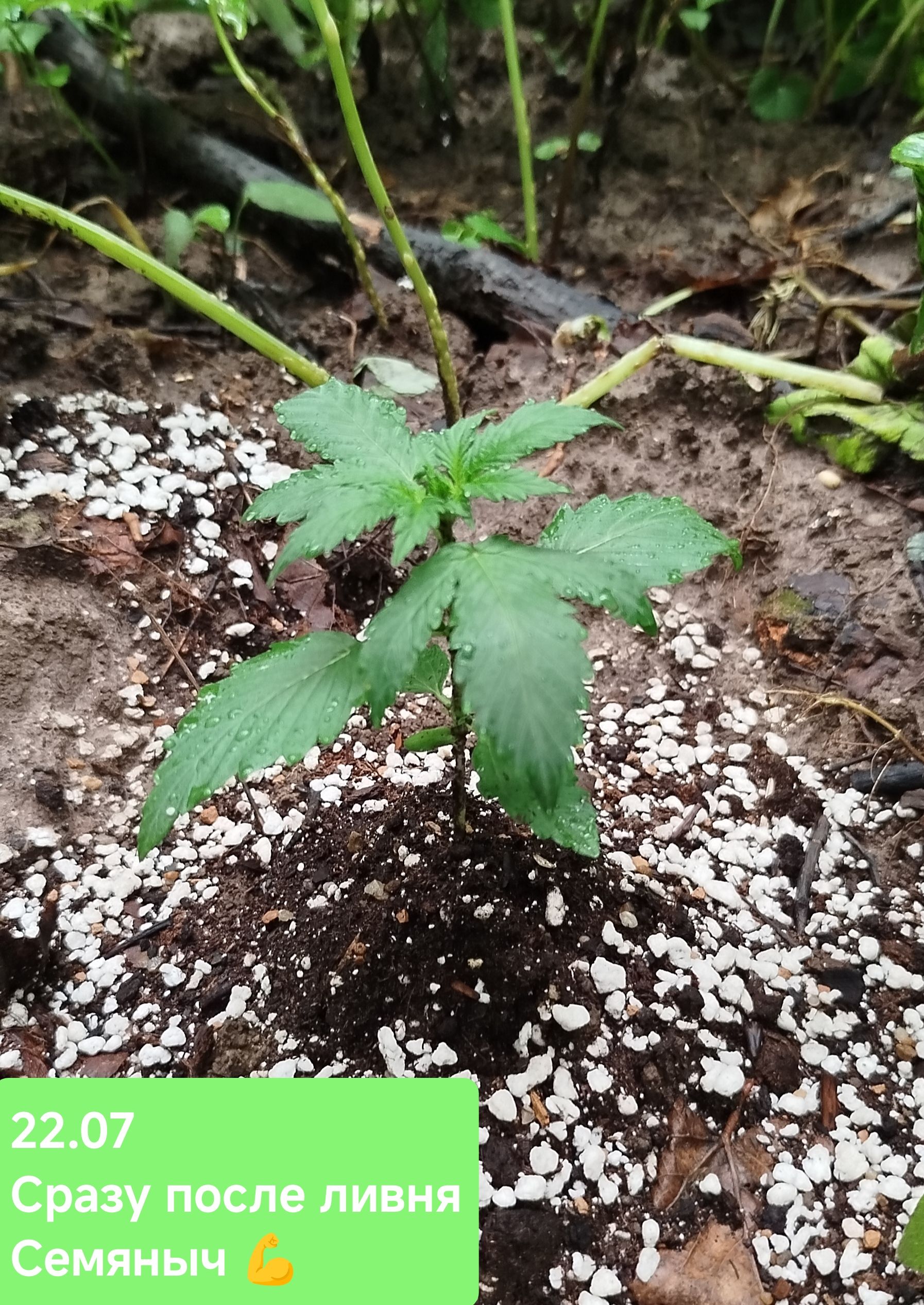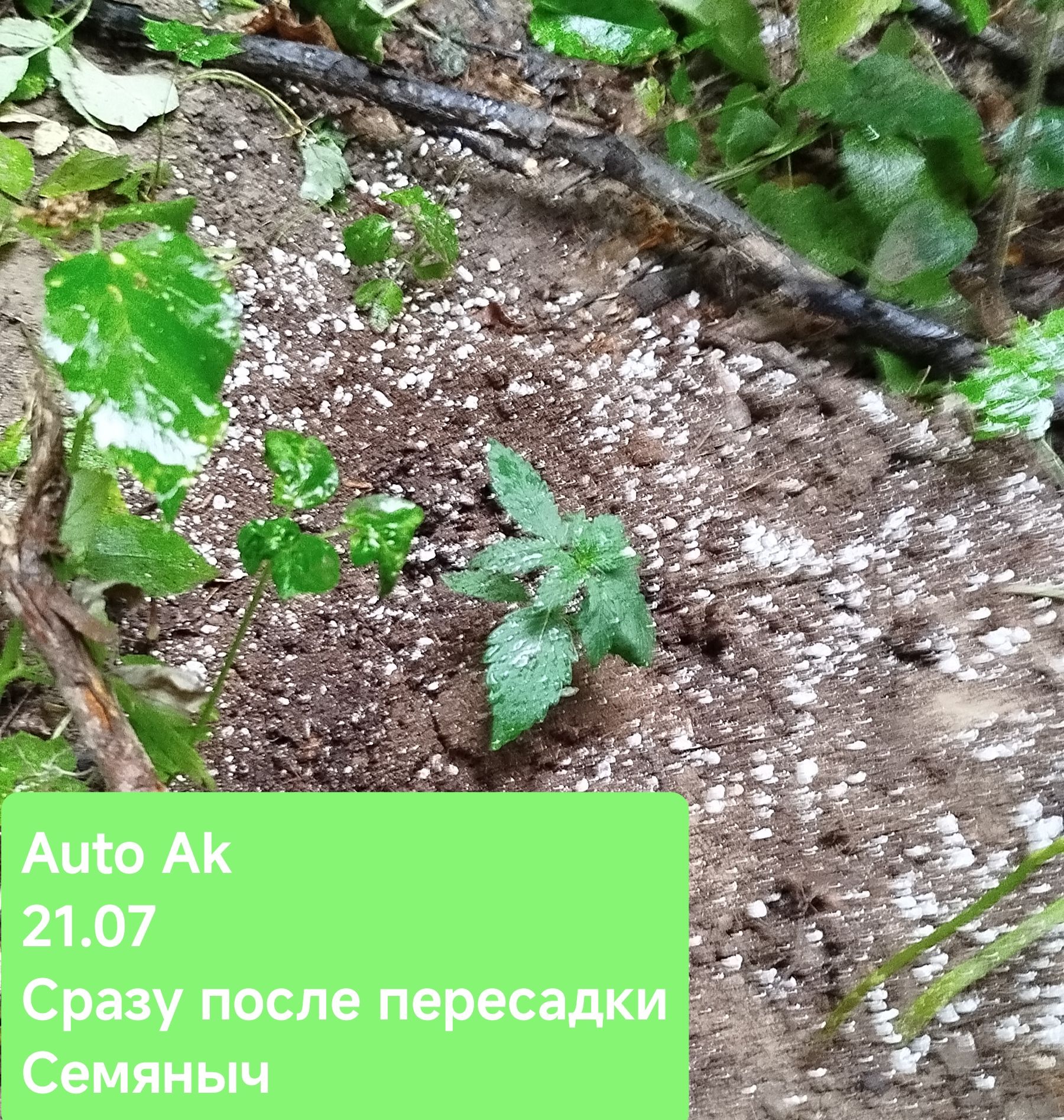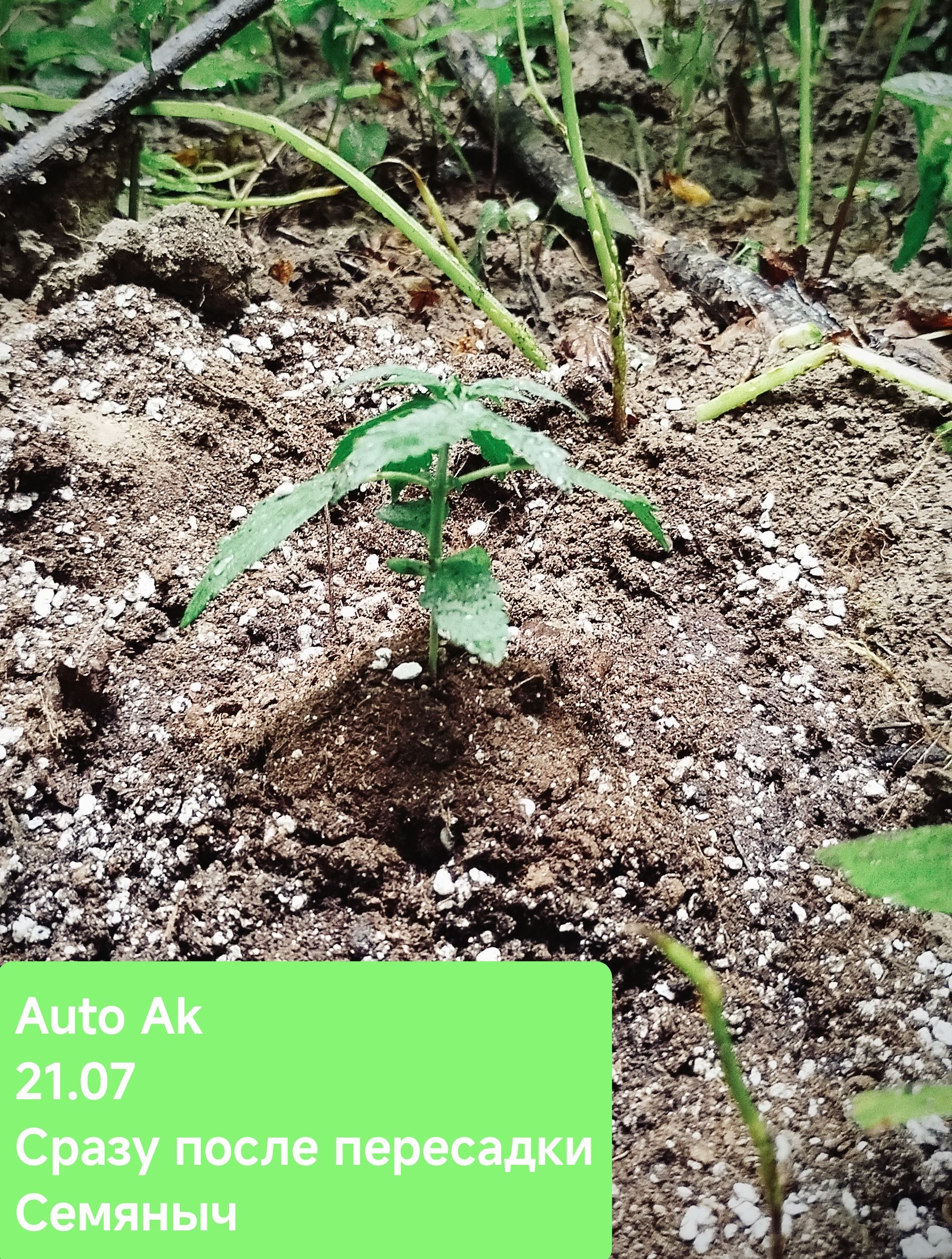 21.07 пересадка прошла вполне успешно, не считая того, что из-за сбитых гео я потерял метку, уйдя в самое сердце леса, без троп и ориентиров через полтора часа брождений под грибным дождиком, накормив собой всех комаров досыта, я все же вышел на свою делянку вдоль крапивы, благодаря мху и Джа, который на нее меня и вывел. Встретил пару полевых мышек, одного дятла, долбящего ствол погибшего дерева, насладился моментом и начал проводить пересадку. Снял верхний стакан, порезаный вогнал в землю и развел в противоположные стороны - из стакана вывалился ком земли, до основания набитый корнями. Для того, чтобы растиха скорее пережила эту психологическую травму, полил ее антистресс средством Revive от AN 1 мл/литр воды.