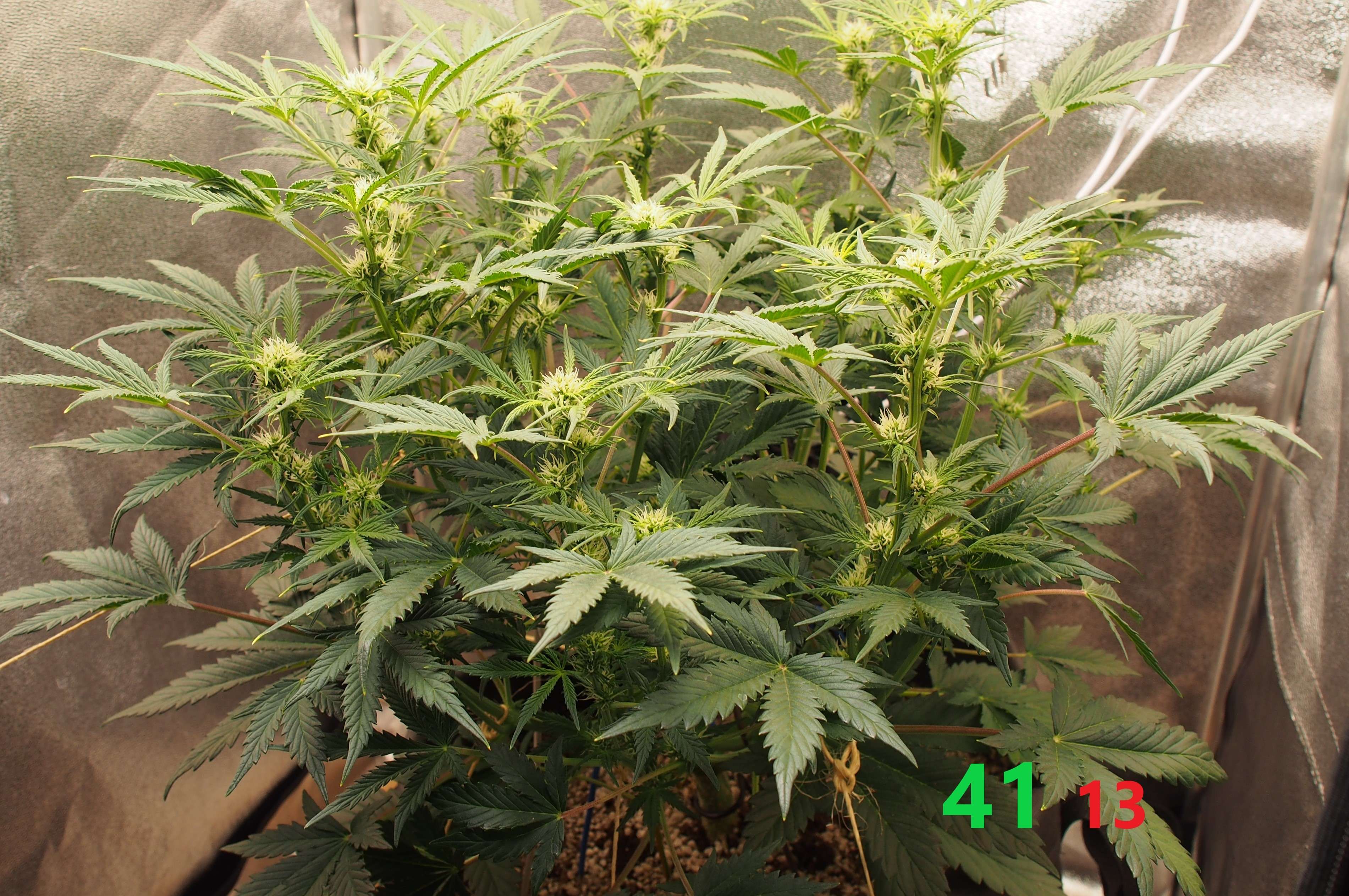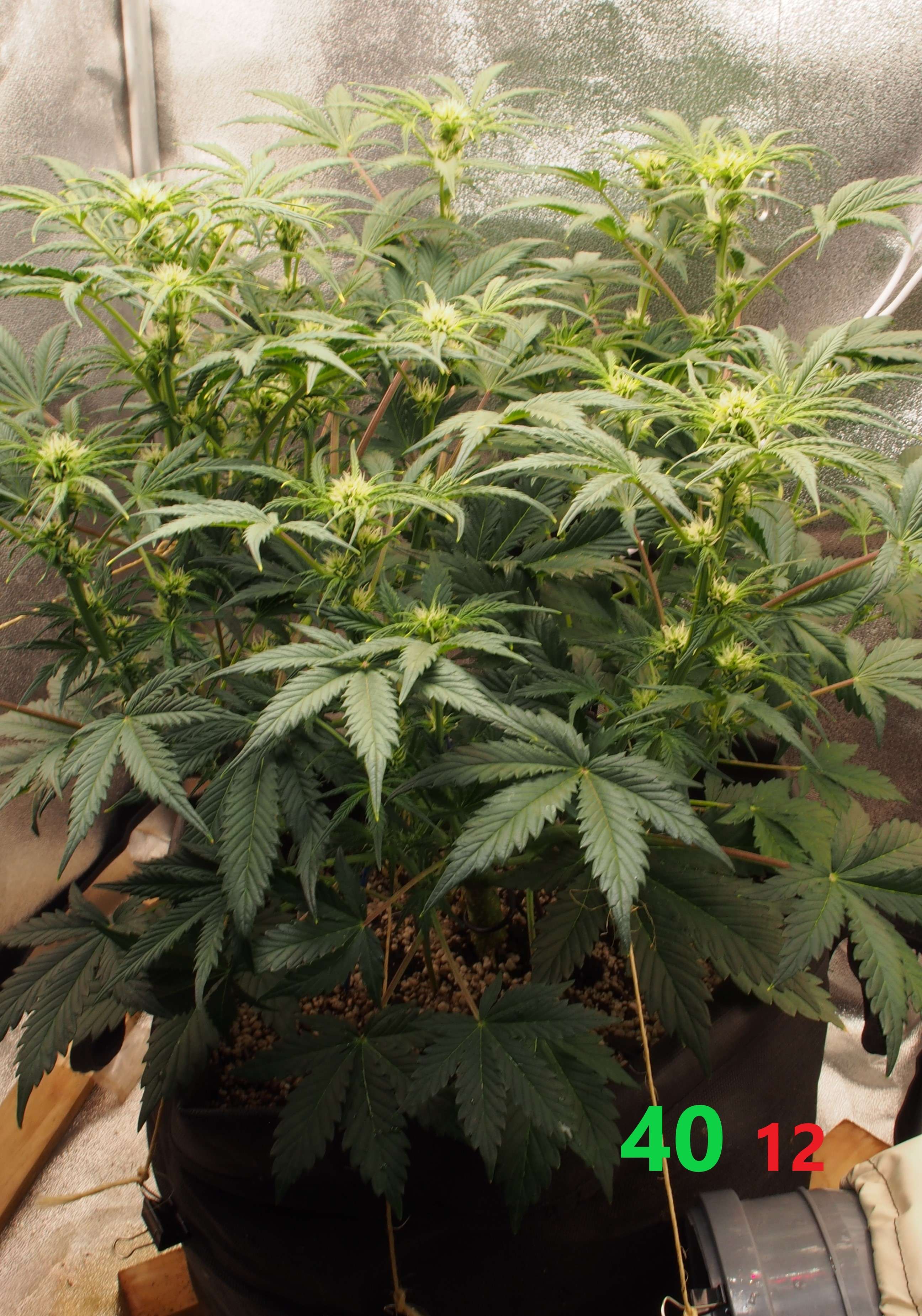 Свет - 50.000 lux. Высота растишки очень комфортная, низкая (70 см? даже не замерял.. но, лампы для меня висят очень низко). При этом куст растёт в ширину и фактически занимает уже весь бокс, поэтому не пытайтесь этот сорт селить с соседями в небольших боксах - результат вас не порадует.