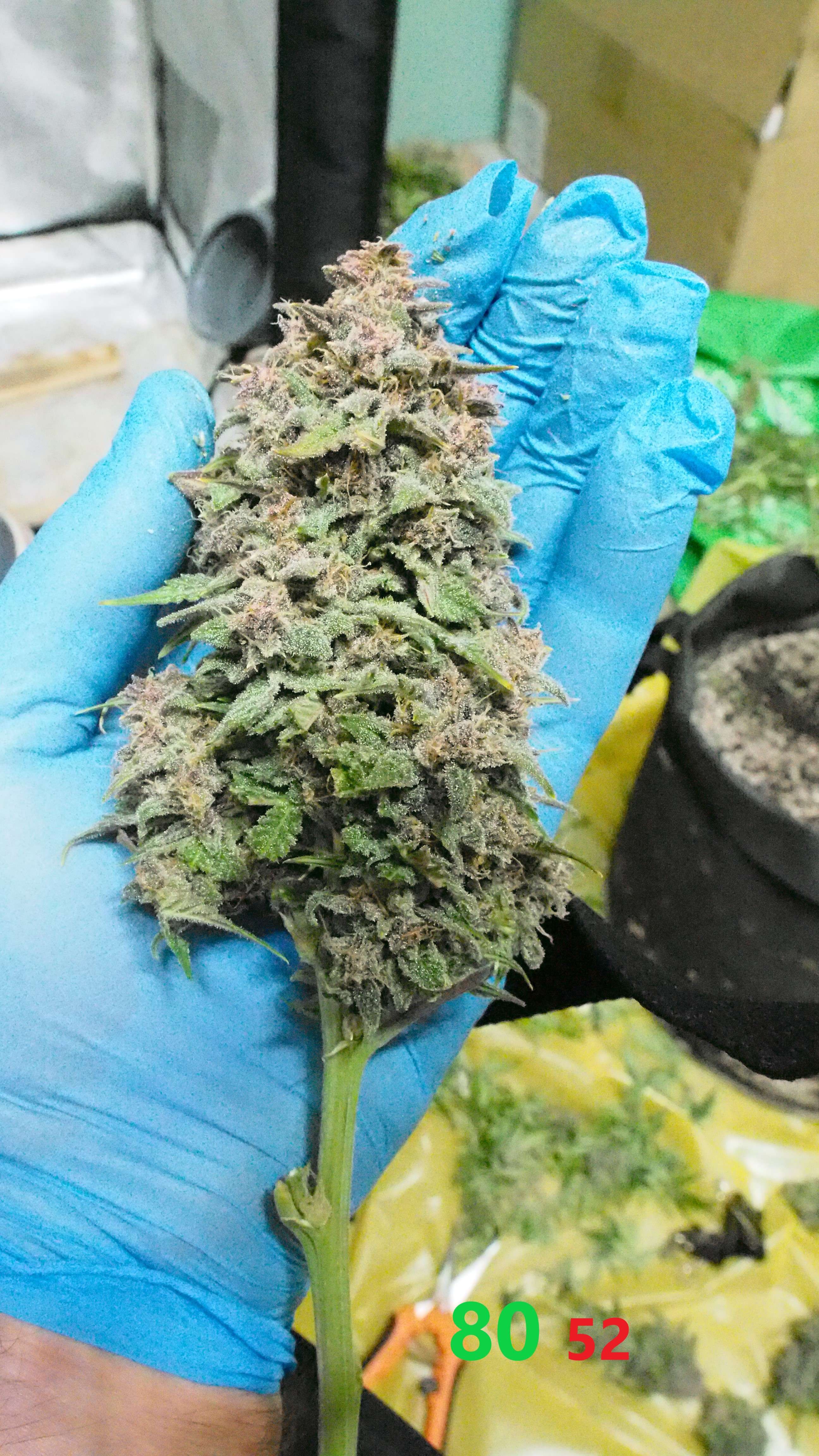 2. Период грова: вместо заявленных FastBuds 56-ти дней, гров занял 80-десят дней. Можно было бы и чуть раньше схарвить, но максимум на неделю. Такое впечатление что растишка сильно замирает на 2-3 неделе и там запаздывает. Вангую, что в больших горшках растишка полностью уходит в рост корней и этим вызывается задержка. В маленьких горшках было бы побыстрее, но менее урожайнее.