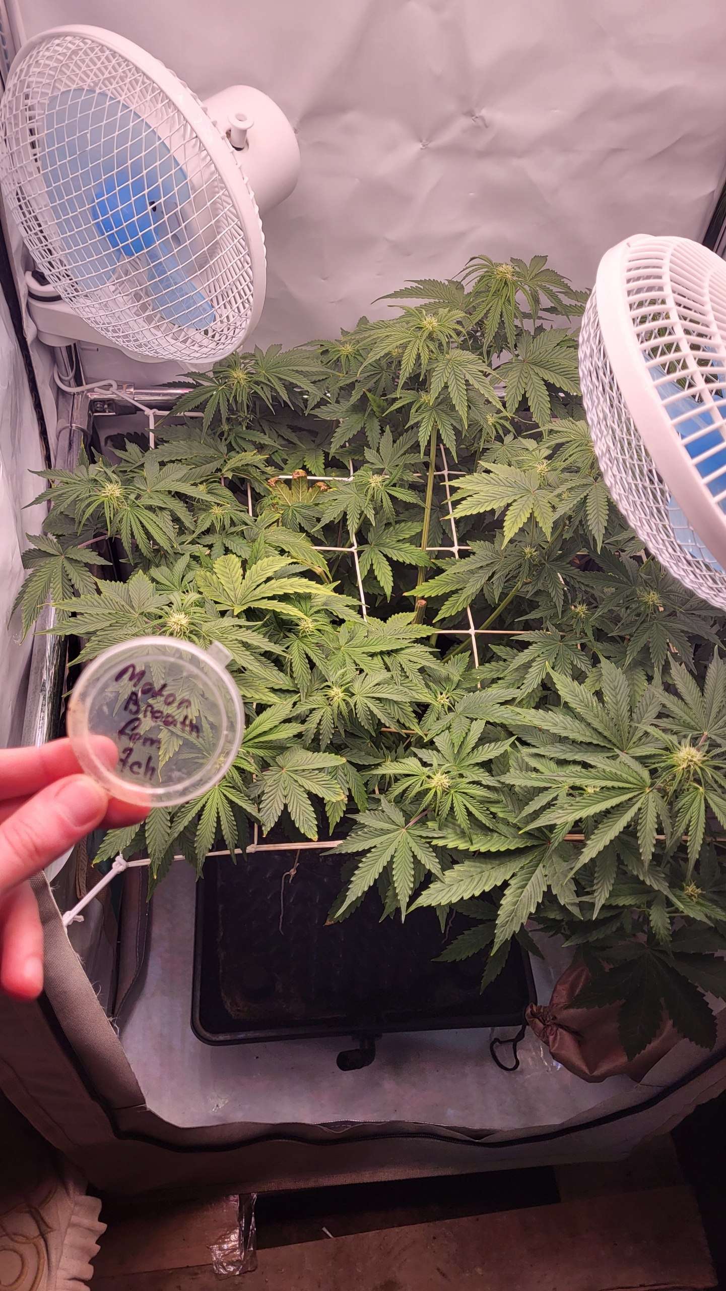 И так так так , очередная неделя подошла к концу , у нас начинается потихоньку предцвет , аккуратно под сетку не получилось , за этого топнул то о чем писал раньше , немного от ровнял структуру , где - то пришлось жестко , методом залома SCROG и под сетку