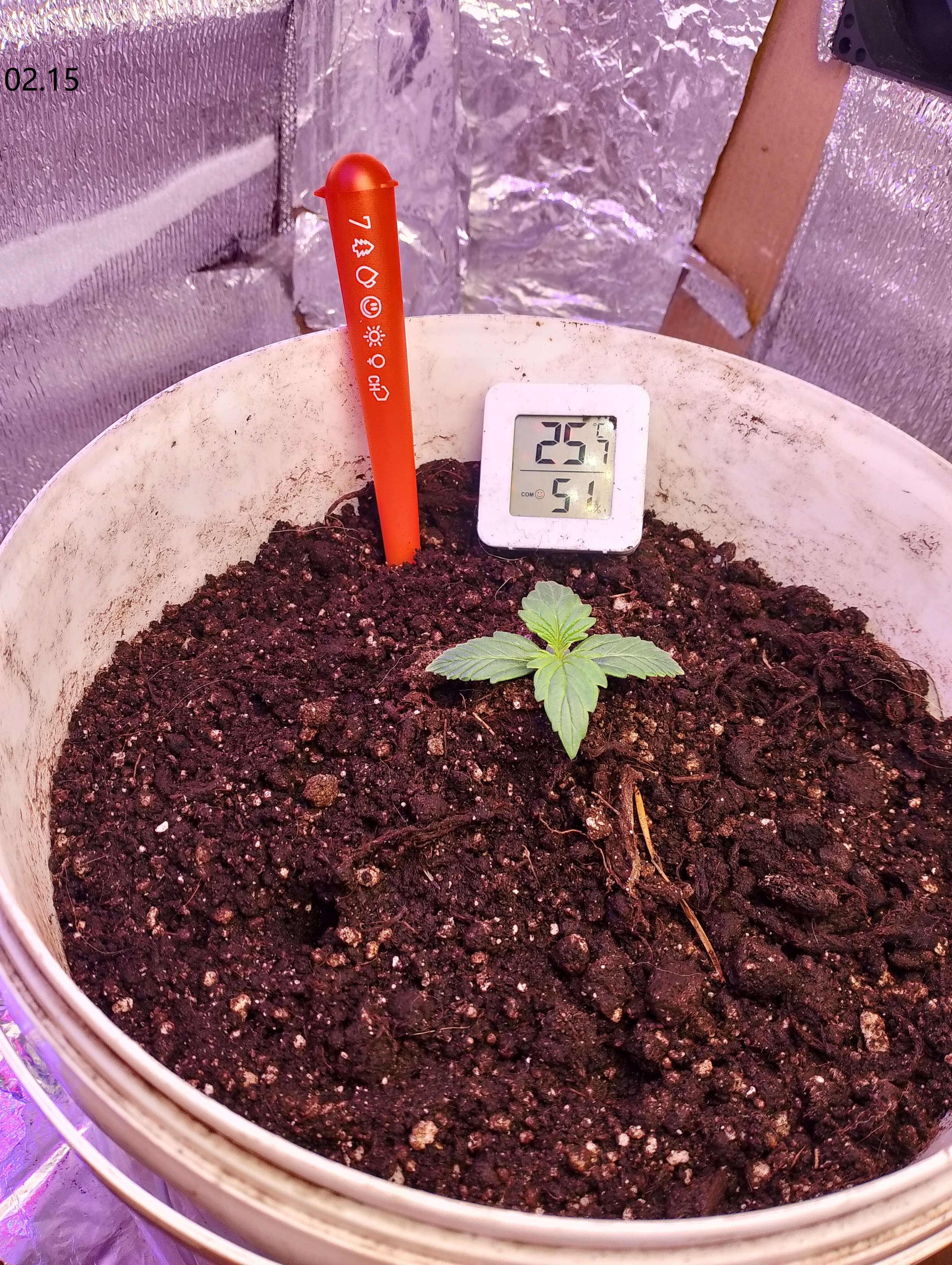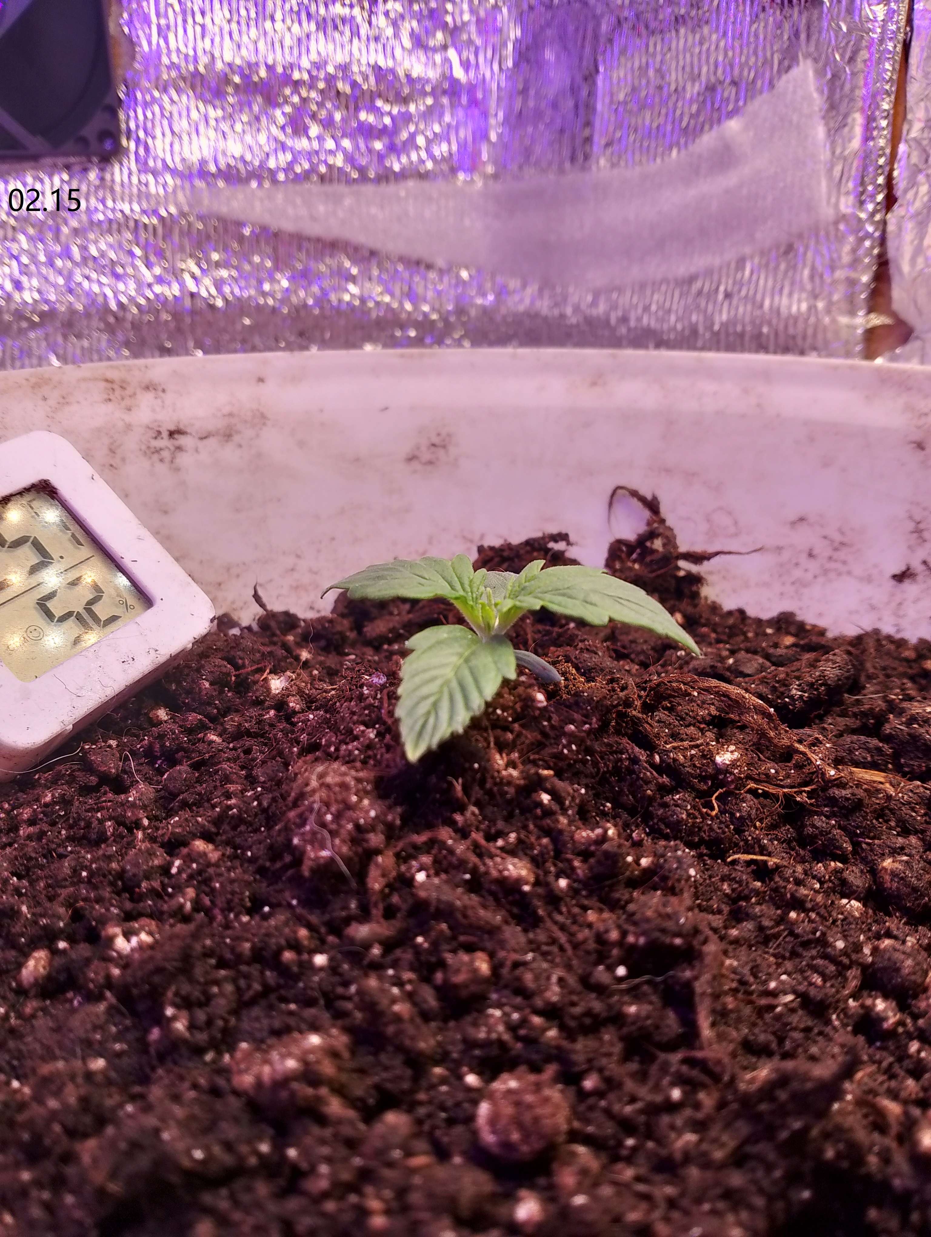 02.17 Проснулся с надеждой что куст жив, открыв коробку выдохнул...Но заметил что нижняя пара на краях слегка пожелтела, а верхняя пара по бокам пожухла. Темпа днем 26-27. В остальном без изменений.
