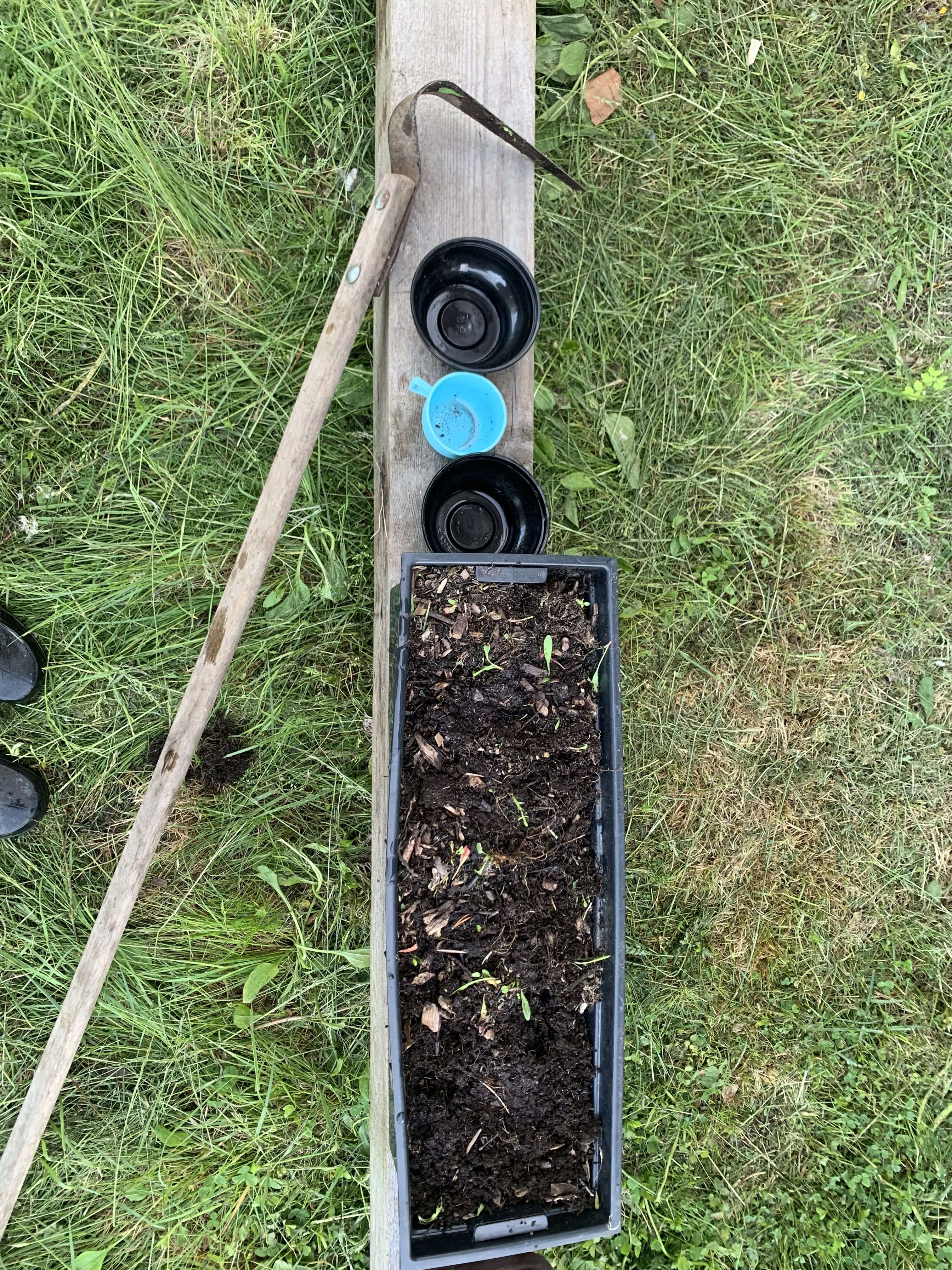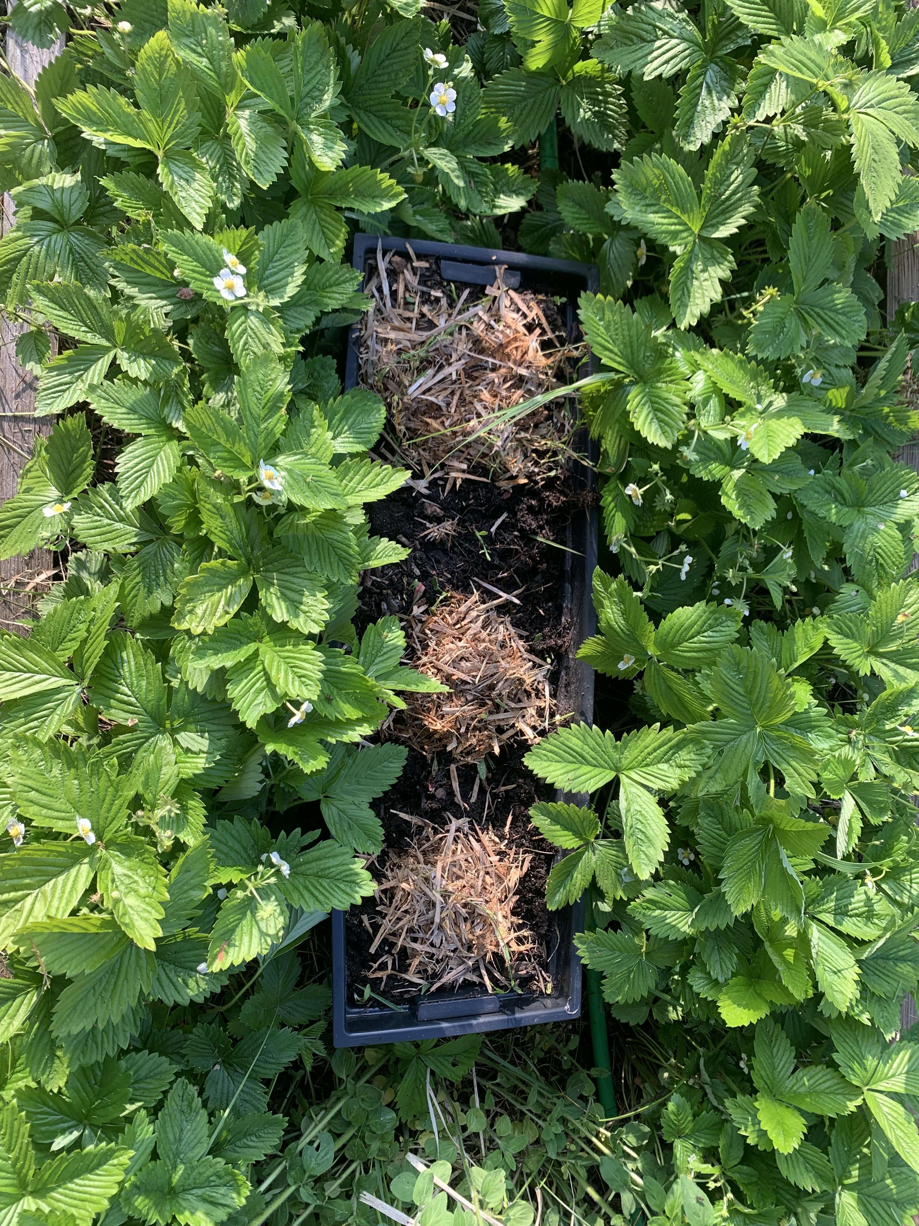 семечки в горшок - и в грядку с земляникой, чтоб черные борта ящика не перегревали землю.