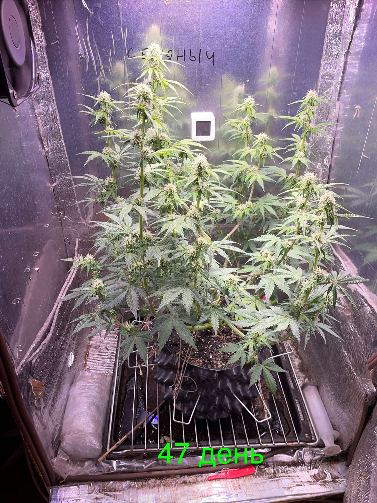 Полил 1,5 литра воды с ПШ 6,7(какая прелестная вода в колонке) шишки бухнут рост вертикальный не встал, лишь немного притормозился после кропа, ну да ладно до лампы надеюсь не дорастет…