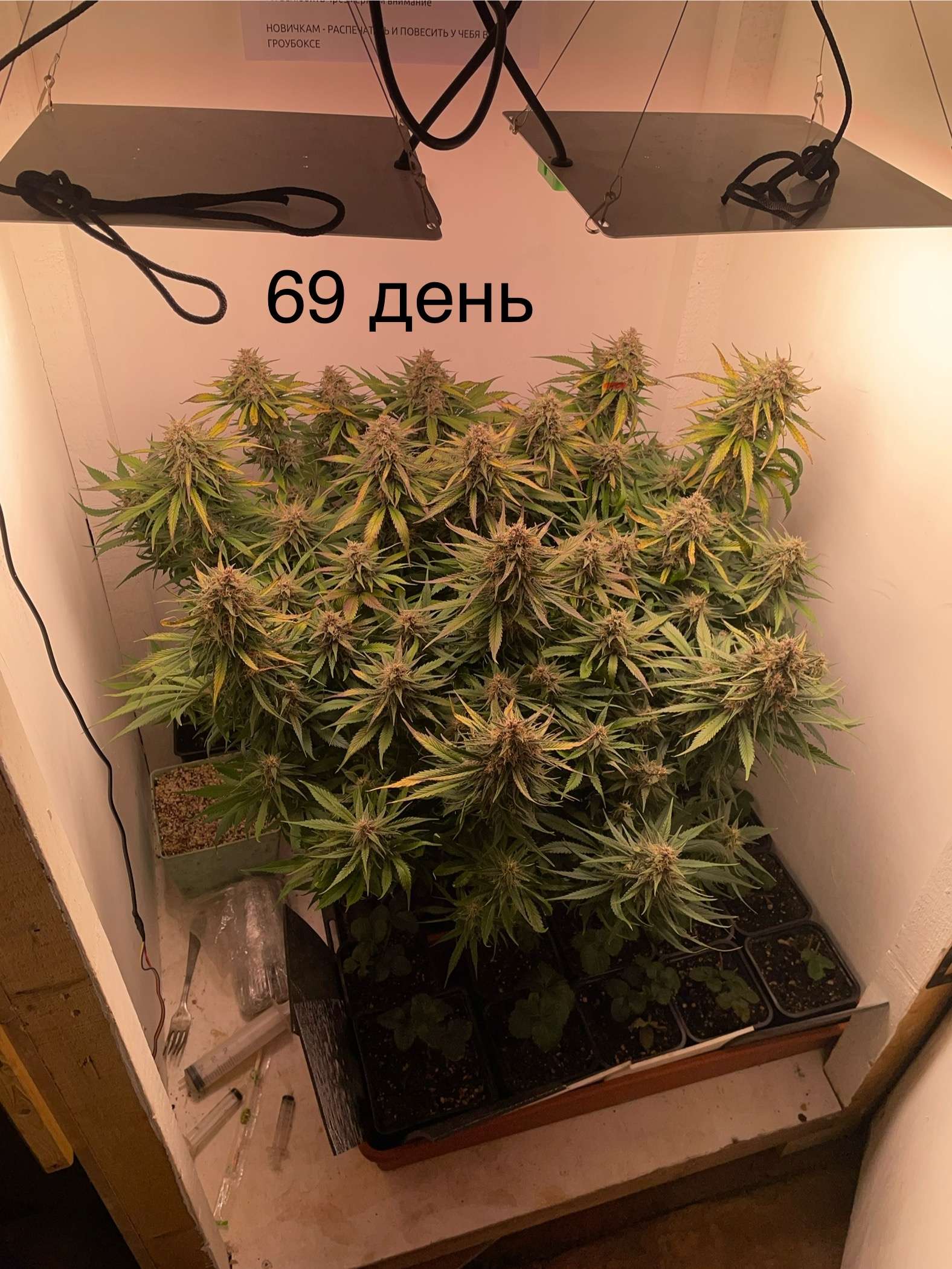 Снова я! прошу терпеть и не кидать в меня шишками(но смотря какими):420, вечером удалил все листья которые уже не приносят пользы, а именно сухие, скрученные и желтые, все долой на зелье! Но не об этом листья все так же продолжают жертвовать свою жизнь во благо цветоносов….