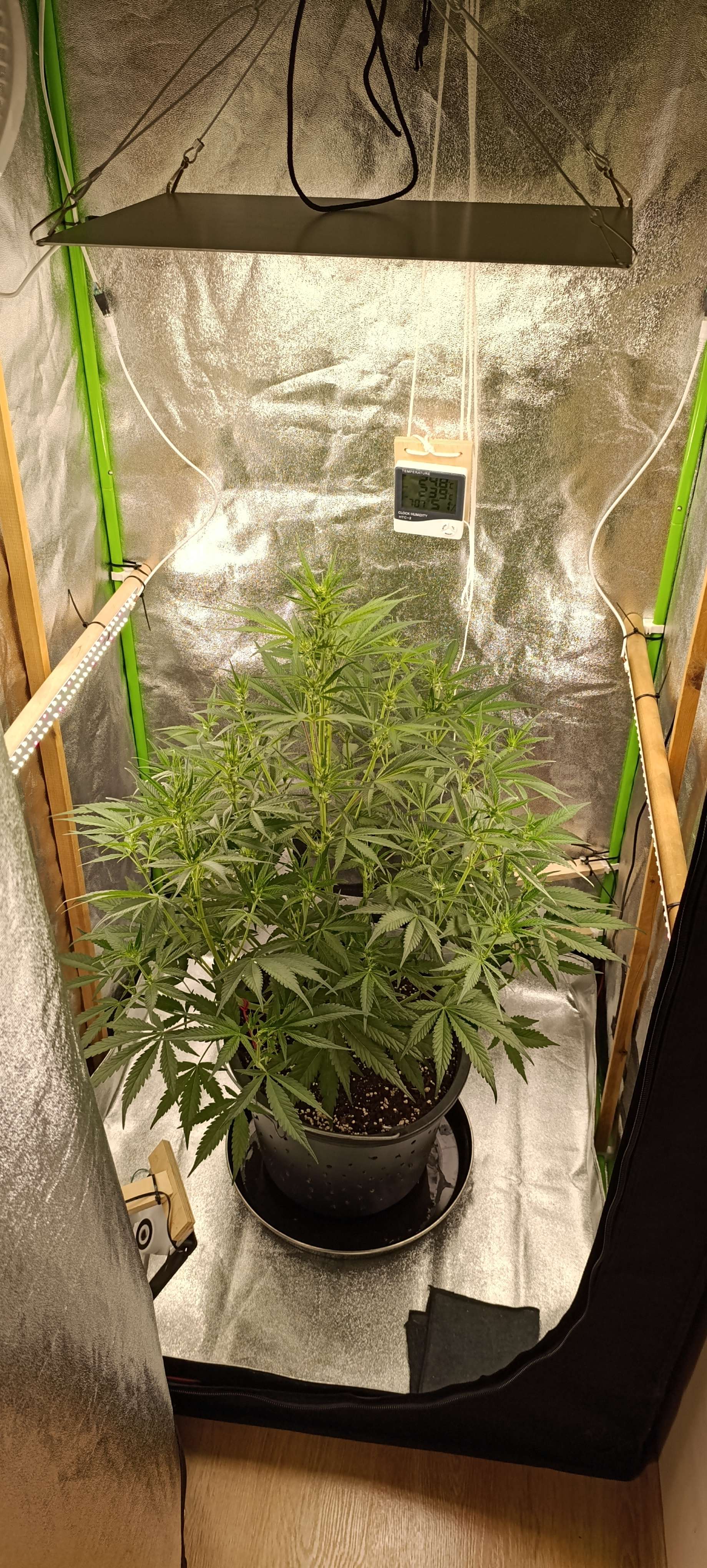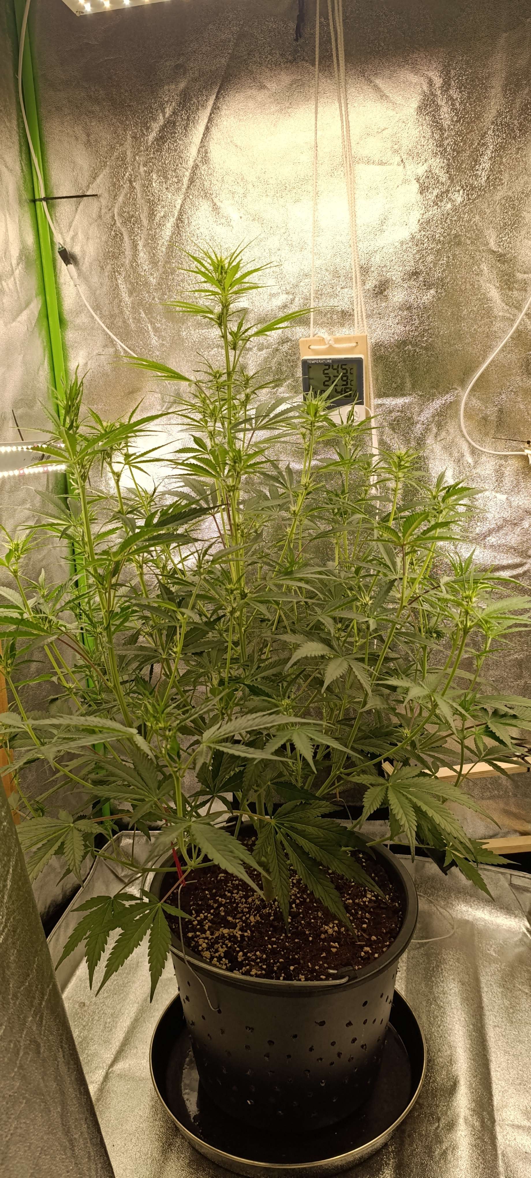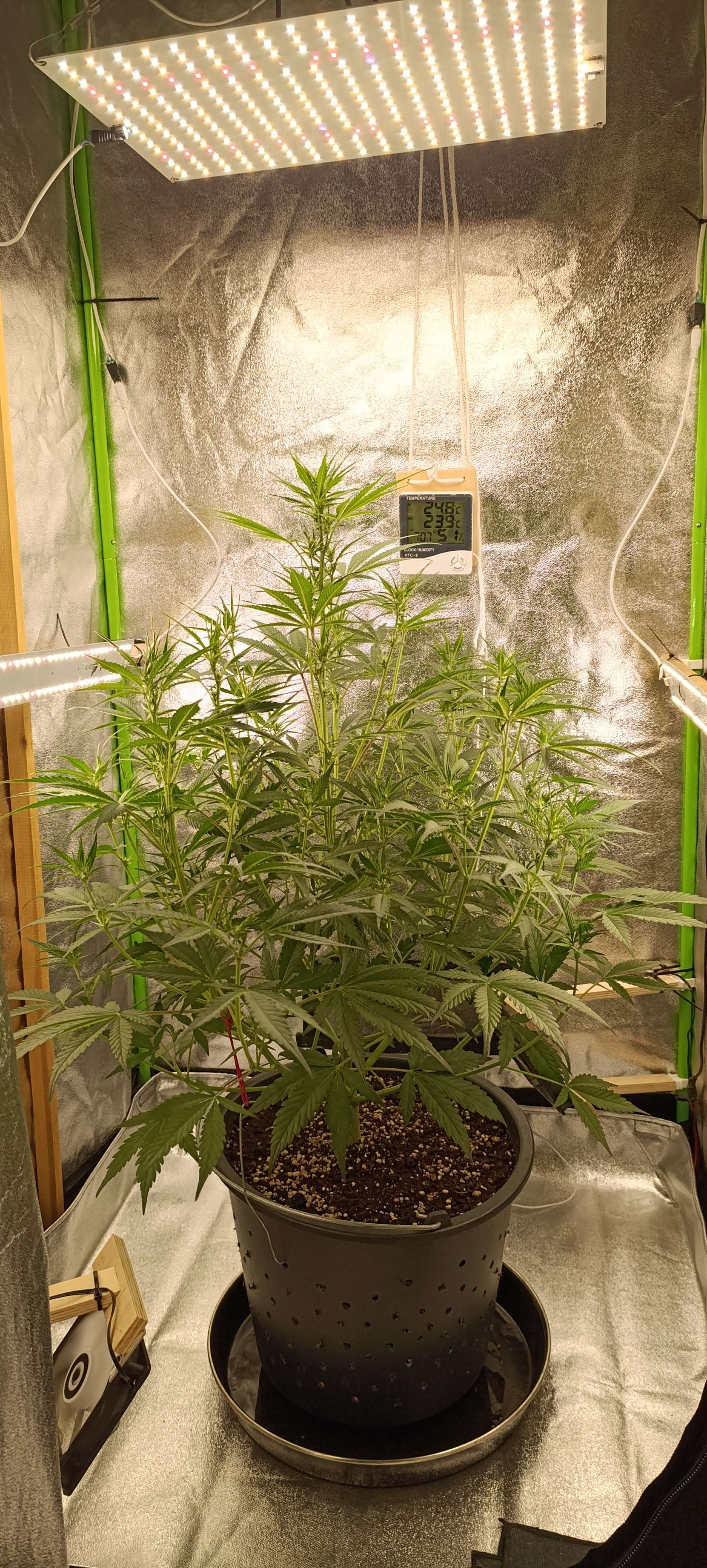 Полив вода+CalMag 3,5 литра. Дренажа ни капли. Ну и аппетит, уже 3,5 литра за сутки выпивает.
