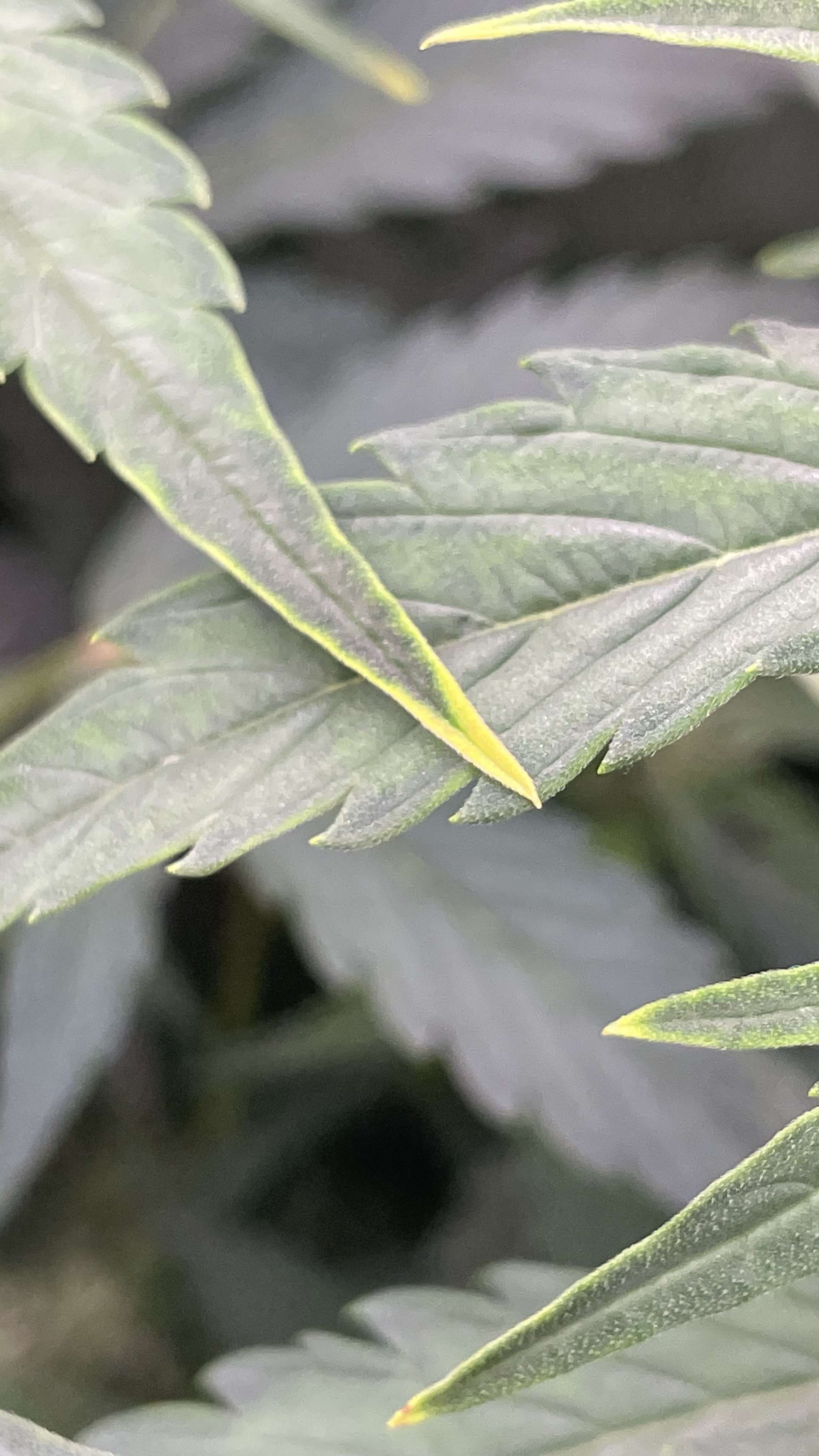 у меня похожие условия как у тебя - только я чуть впереди тебя по сроку грова.. И просто расскажу как может быть дальше: до твоей стадии всё шло похоже, а дальше начнёт прогрессировать пожелтение нижней листвы (похоже на дефицит азота) и одновременно начнут "отгорать" кончики верхней листвы - симптомы перекорма. А суть в другом: происходит блокировка корневой системы.. и сколько не лей дальше удобрений , симптомы "голода" только усилятся. Спасение одно - проливай грунт... и проливать надо прям очень много. Сначала "размочи" его проливом и через 3-4 часа проливай 12-15 литрами воды. Когда дренаж выйдет, то увидишь, что первые дренажи это очень тёмно-жёлтый раствор и консистенция как у желе.. Я понял что "засол" грунта происходит вне зависимости от входящёй воды по PPM - там хоть дистиллеровку лей, всё равно к 7-8 неделе грова будет засол с блокировкой в грунте если не промывать... из-за этого теперь только на кокосе хочу гровить.