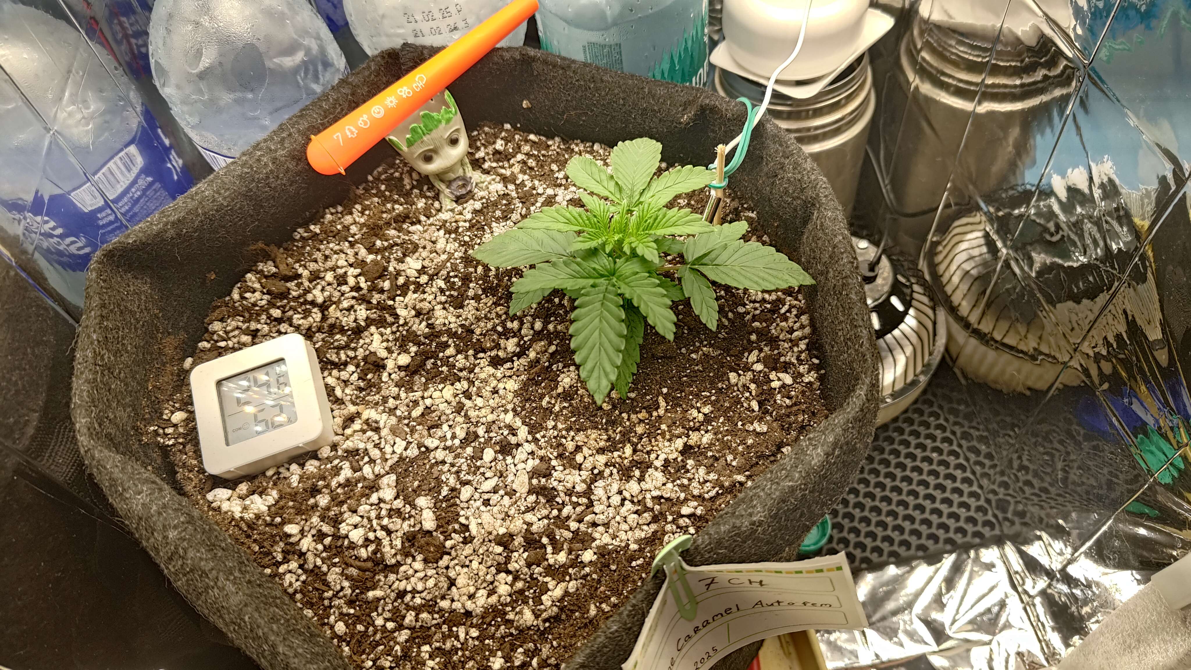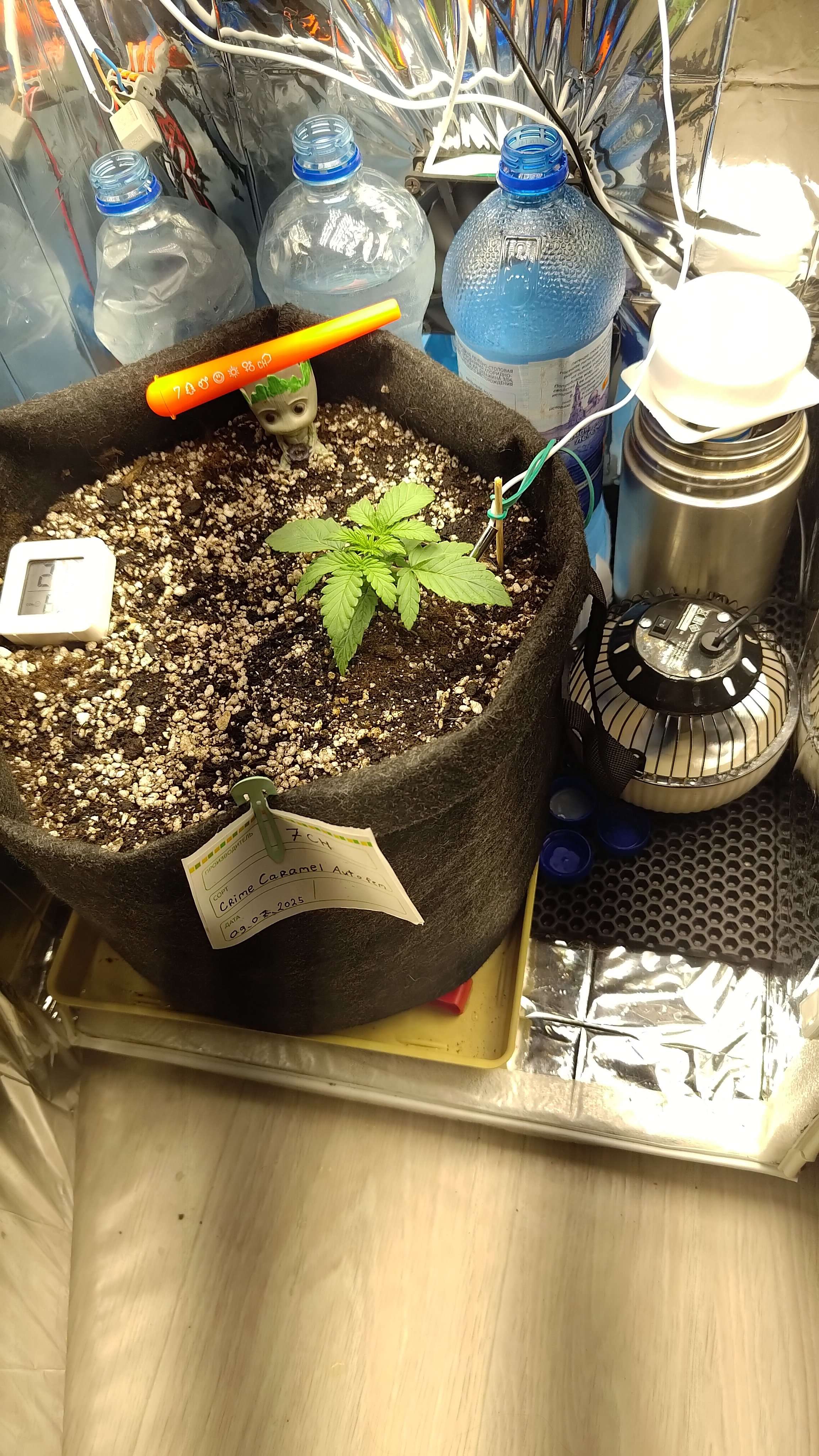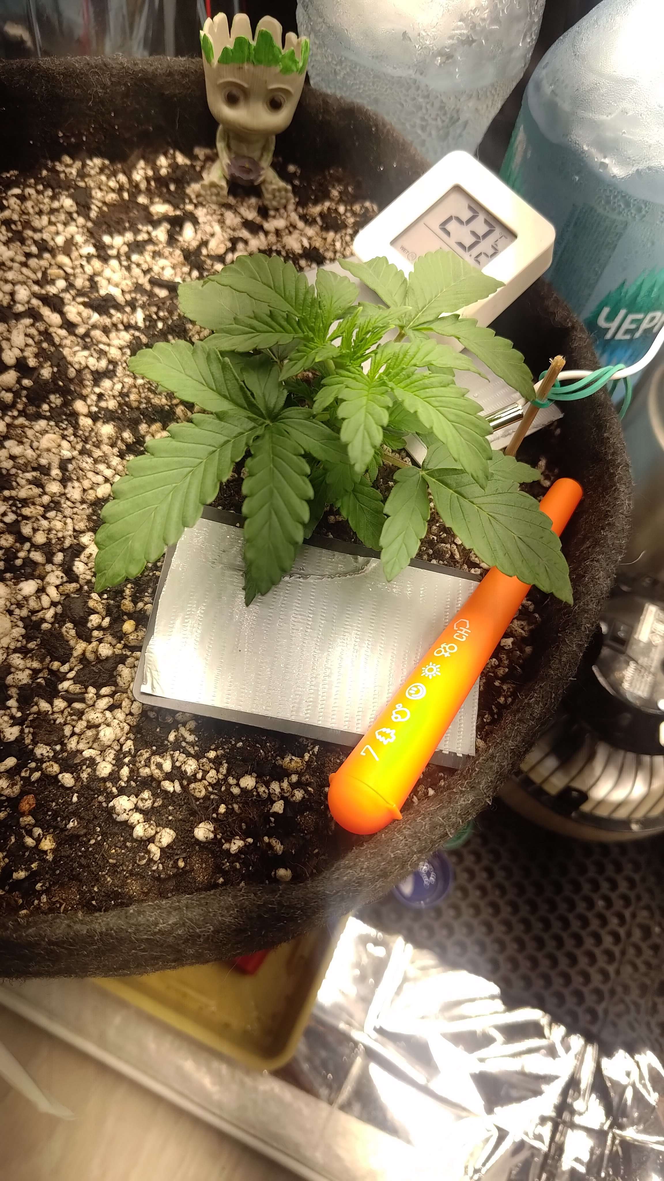 Полил вокруг растишки 150мл воды, заметен рост, темпа днем от 29 до 25 понемногу двигается, влажность судя по двум датчикам в пределах 45-55, отсюда берём среднее в 50%. Если не так поправьте пожалуйста. :gogrow