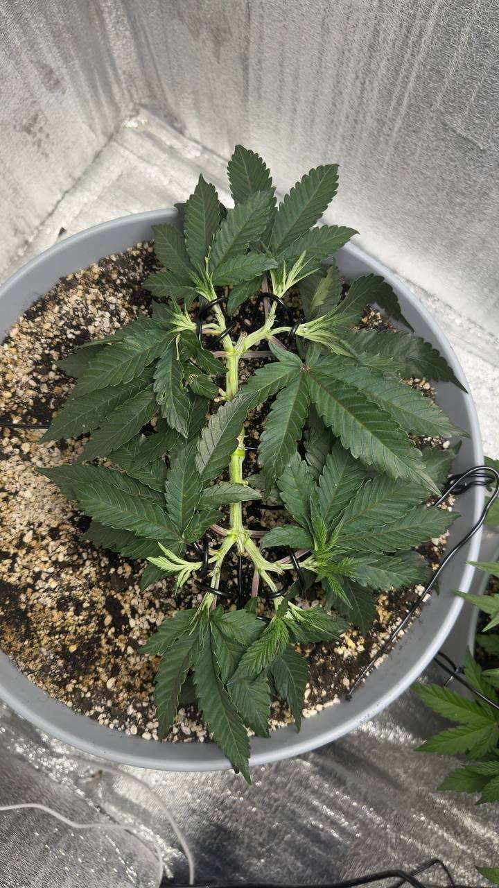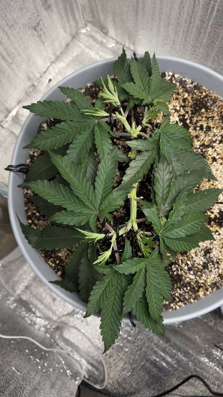 Вот Брюс на 7й неделе с мейн-линингом, в 38-ми литровом горшке. Тренька тоже сильно тормознула, на месяц наверное, но он быстро оклимался и уже через 2 недели на цвет перевел.