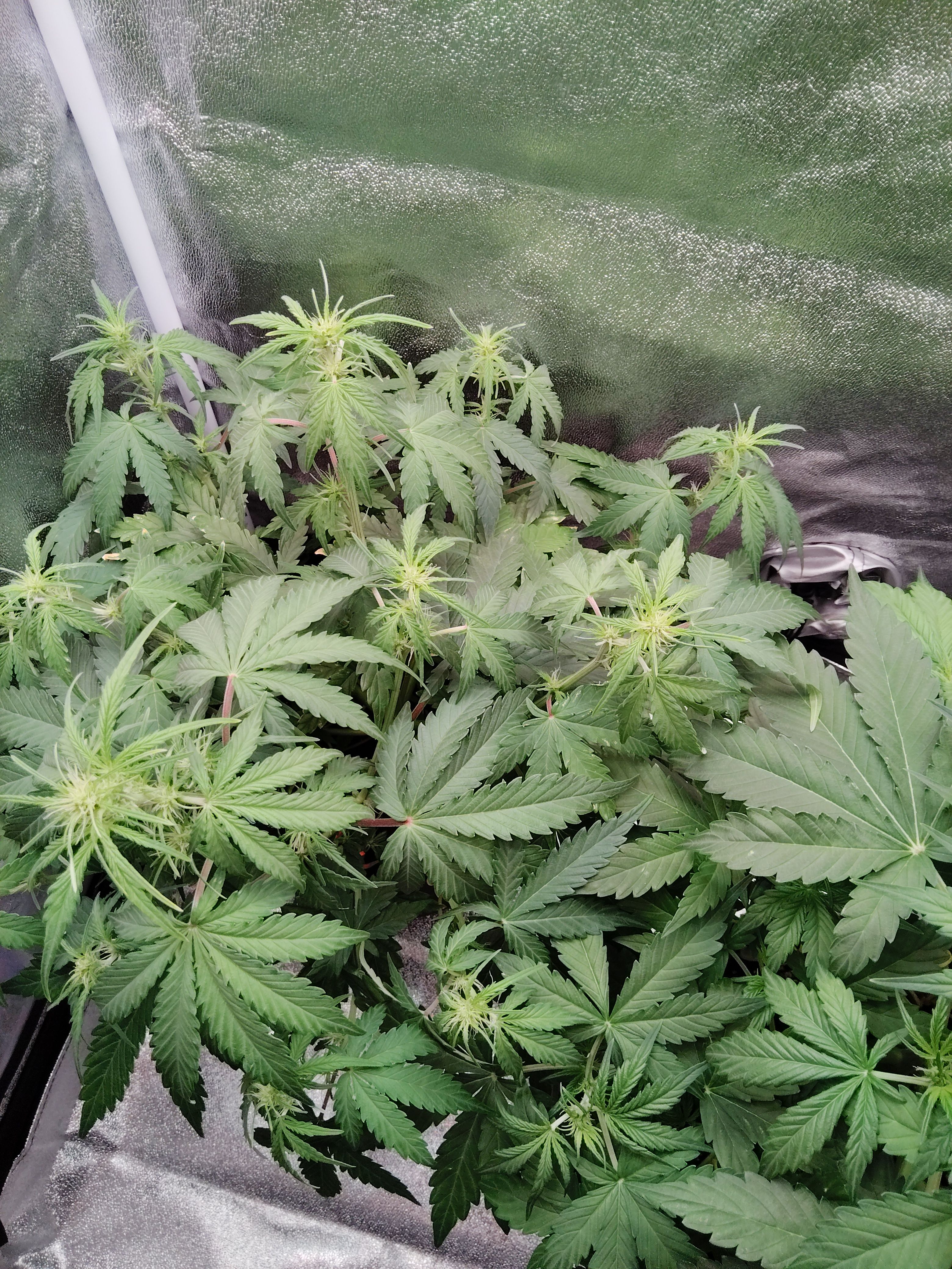 Больше выкручивать пока не стал, чтобы сильно не задавить светом и не обжечь самые верхние побеги.