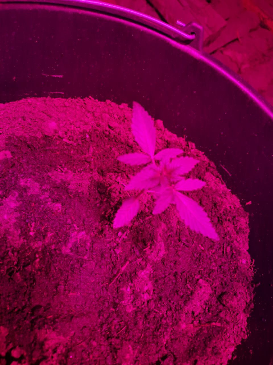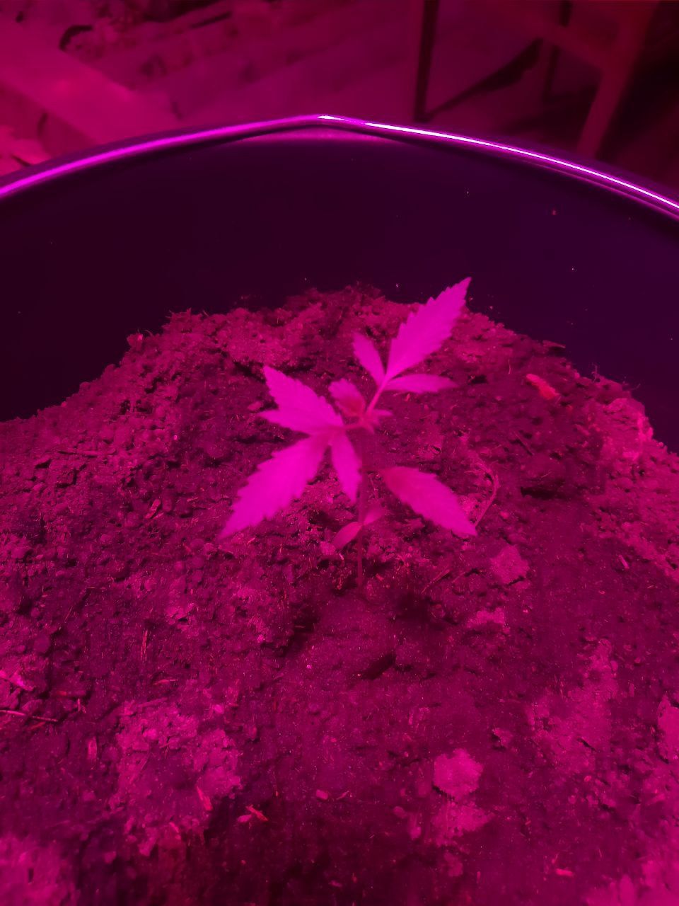 стоит три лампы на два цветка фото специально затемнены что бы не засвечивало, земля в горшках это универсальная земля 10л с перлитом и ещё гумус 5л замешивал туда, в каждом горшке по 15л почвы с перлитом по итогу, сейчас они разогнались в росте всё стало хорошо, по пш земля и гумус нейтральные, воду лью артезианскую из автомата