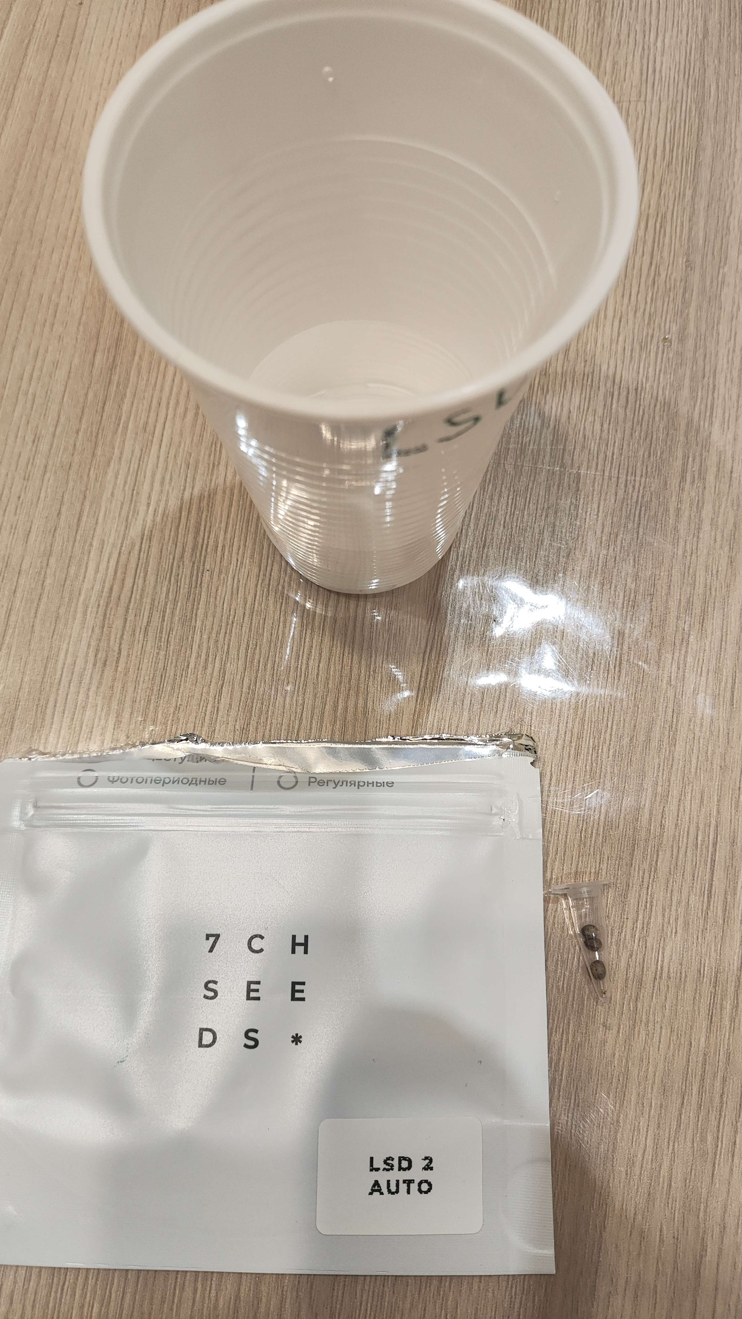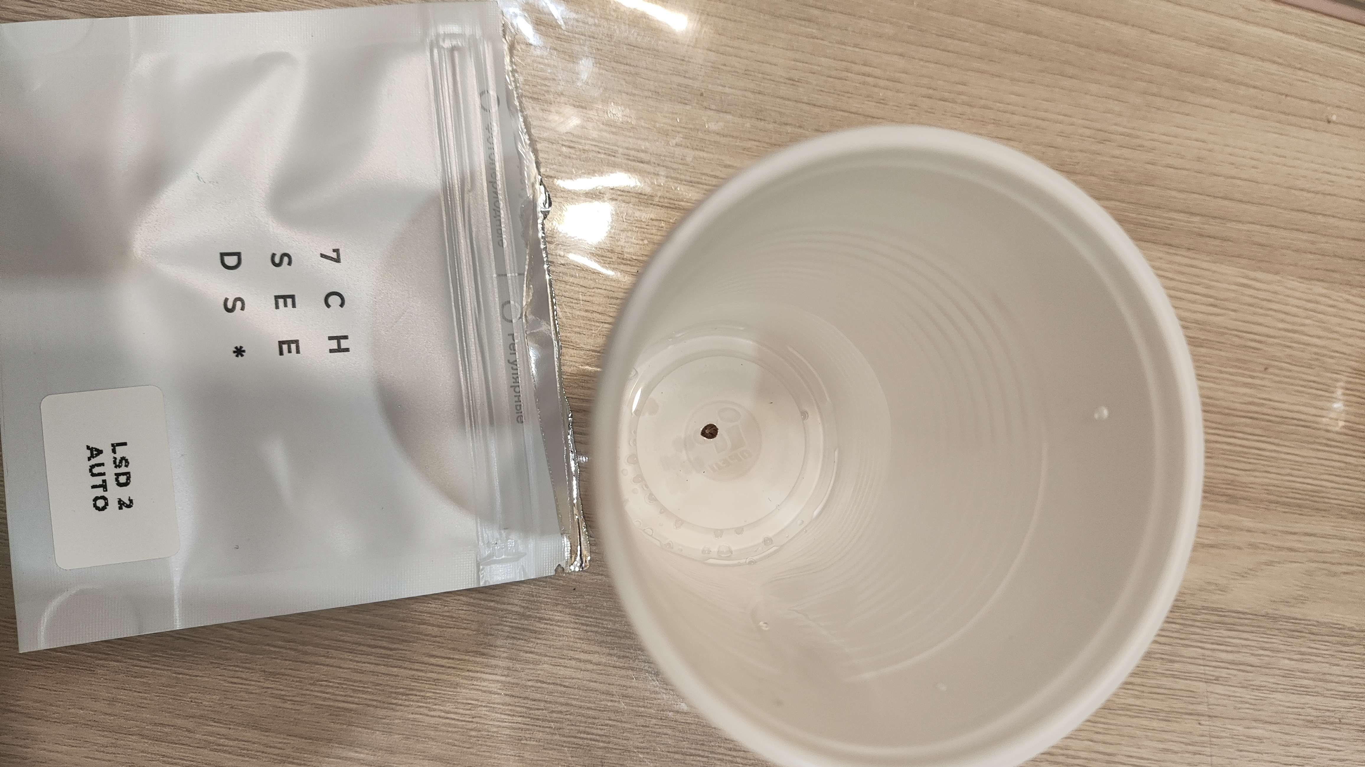 Закинул семечку в стаканчик с водой из под крана, добавил 10 капель 3% перекиси водорода и в шкаф.
