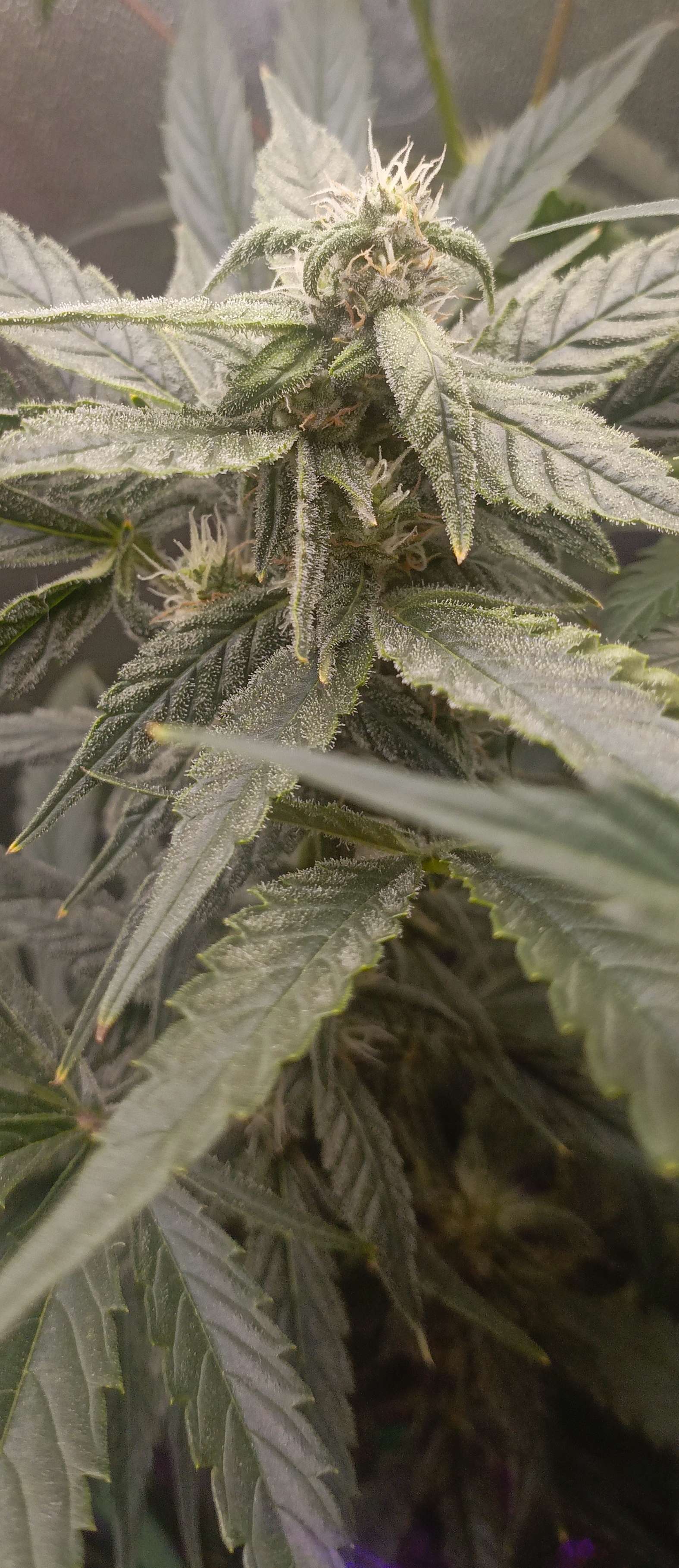 Произошёл форс мажор у одного растения проявился гемофродизм большую часть стеблей пришлось удалить. К сожалению фото не было сделано в этот неблагоприятный период. Поэтому дальше буду стараться довести до харва хоть одну растишку, второй сколько успеет набрать, все бананы с пыльцой были вовремя замечены и убраны путем отсечения веток. Не знаю из за чего это произошло, скорее всего стрессанул, после подгиба на стадии цветения. Но что характерно рост продолжается постоянно вытягивается, тогда как первое уже неделю набирает массу на шишки...