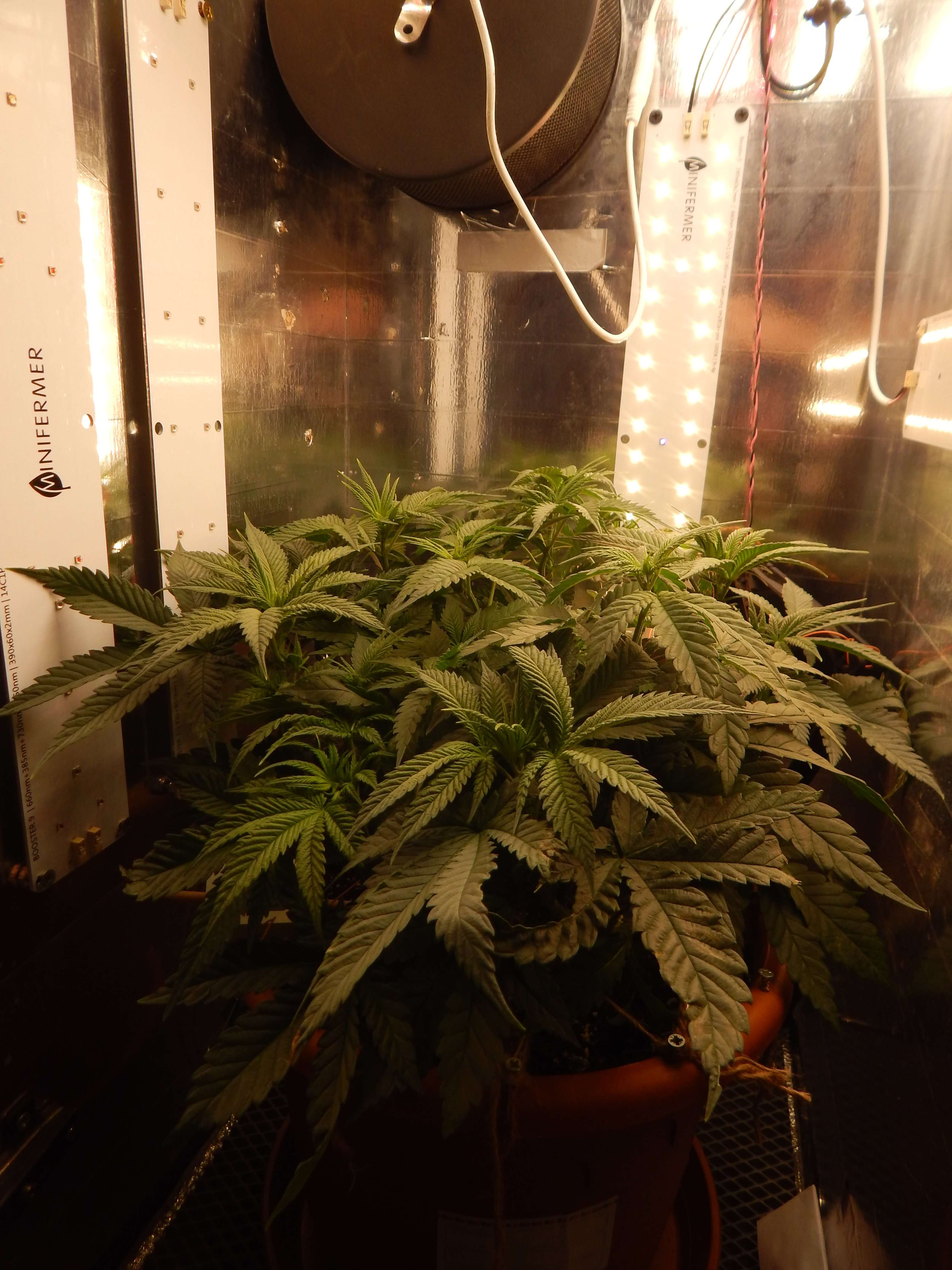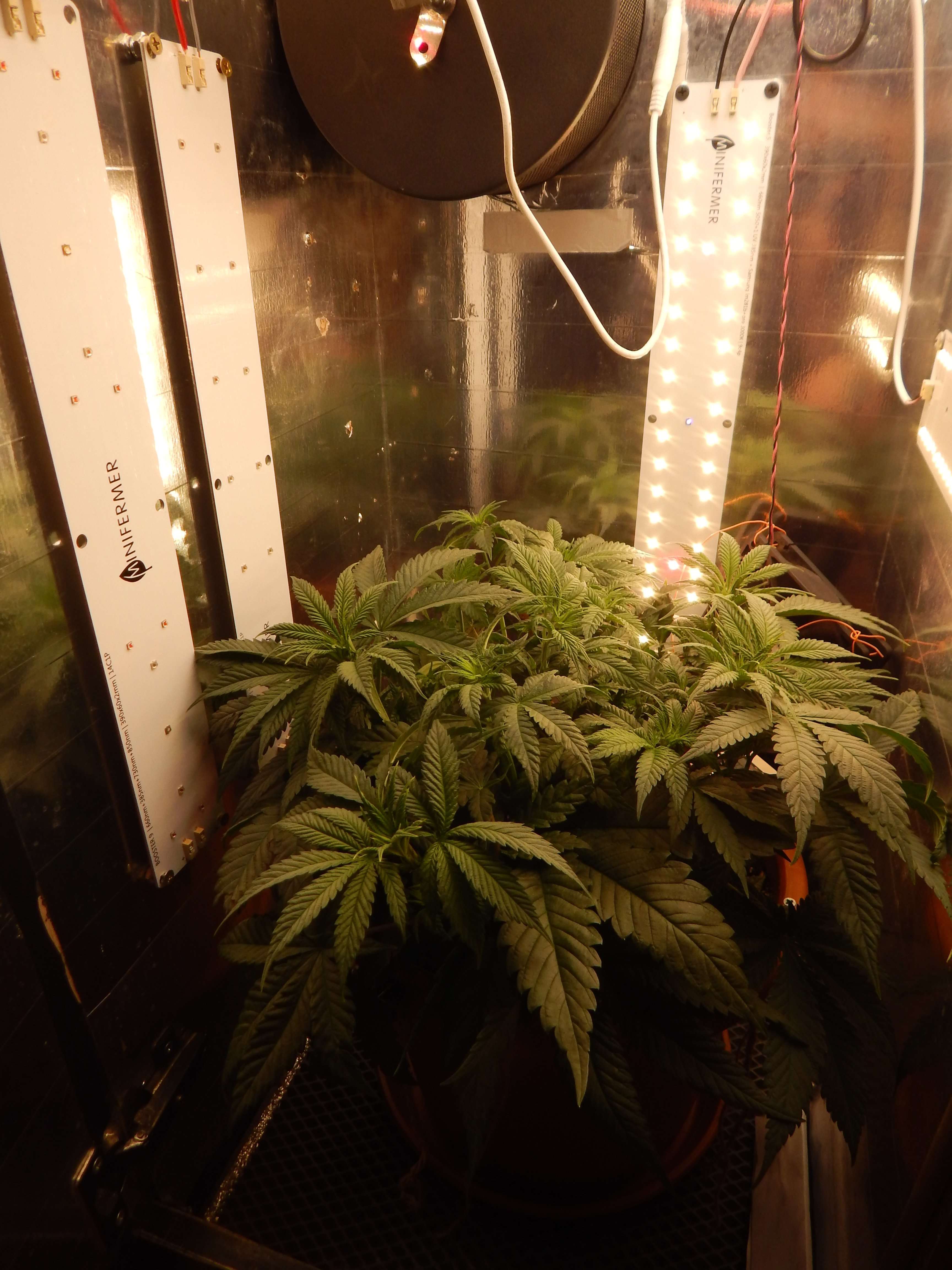 Привет бро, бодро выглядит, цвет листвы сочный насыщенный, на низах правда концы подгорели слегка, может азотом передознул немного? Цвет листвы темный как раз соответствует повышенному азоту. Да и цветение как будто запаздывает немного, может тоже благодаря азоту. Хотя в целом +- в пределах нормы, к тому же сорт насколько знаю не быстрый. Недели через 2 должен уже в предцвет точно пойти если не в полноценный цвет. Смотрим, наблюдаем