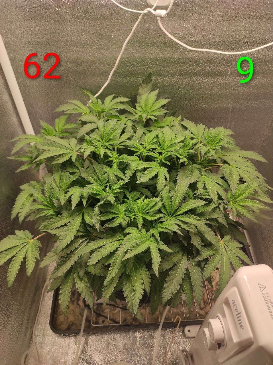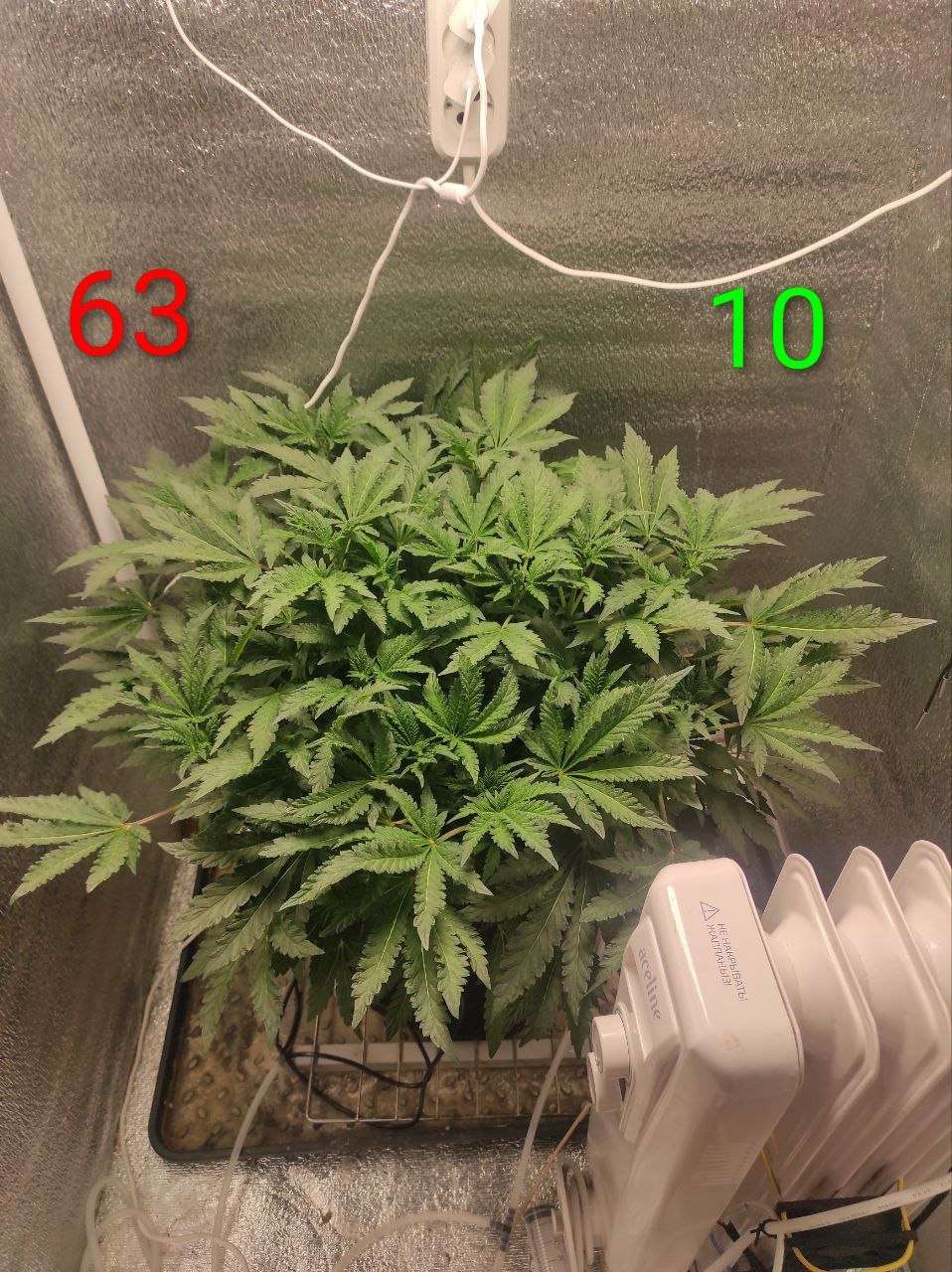 Уже 10 дней куст живет в режиме 12/12. Начали появляться первые признаки цветения. Макушки посветлели, начали активно закладываться стигмы.