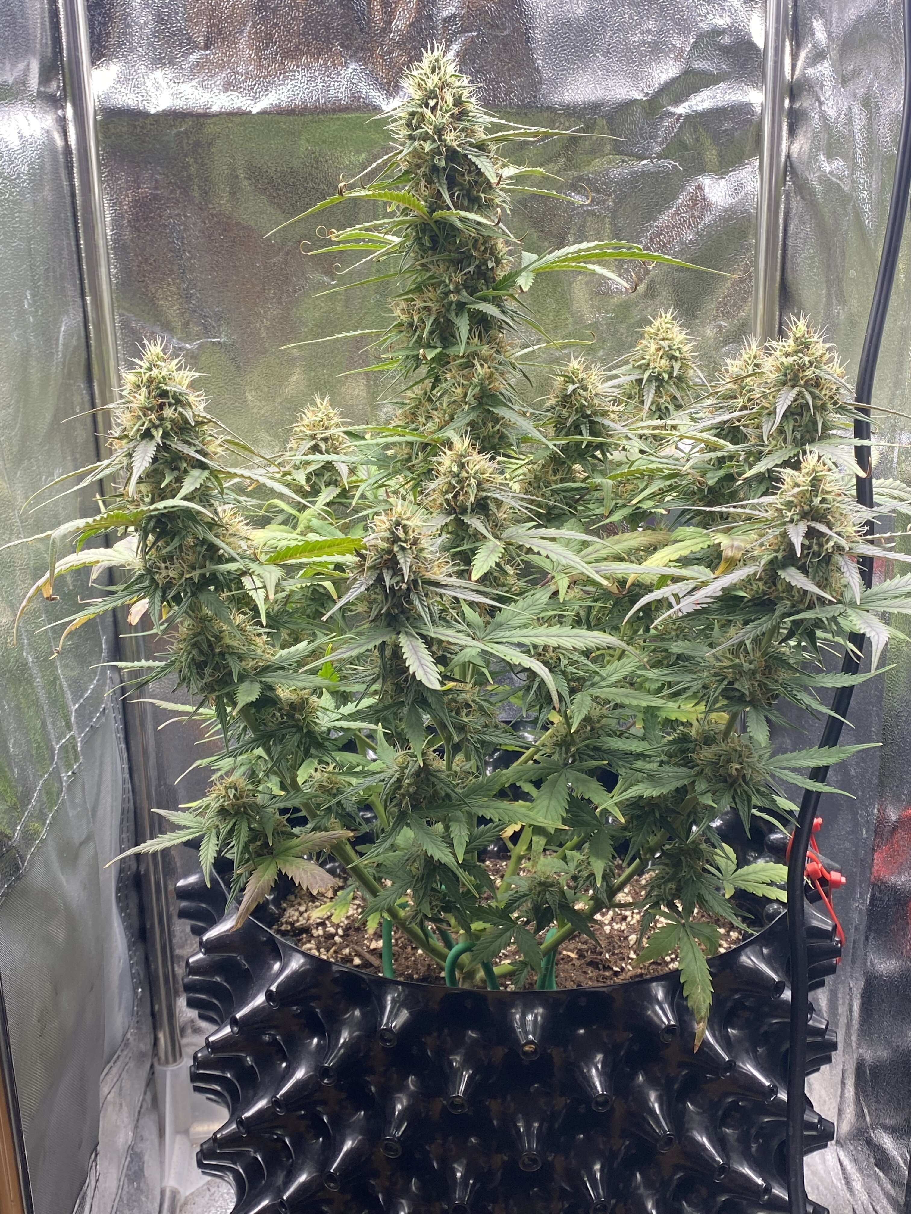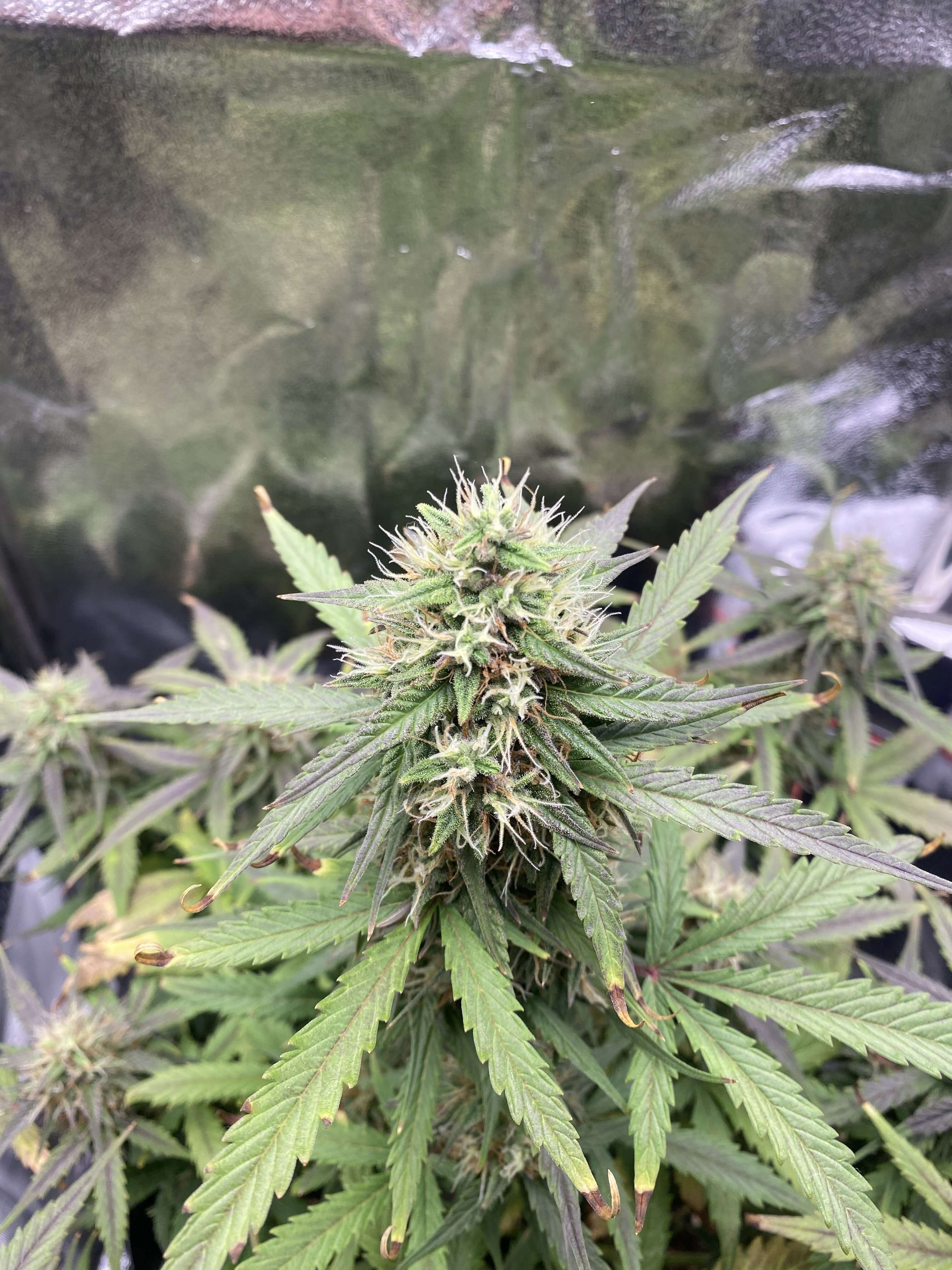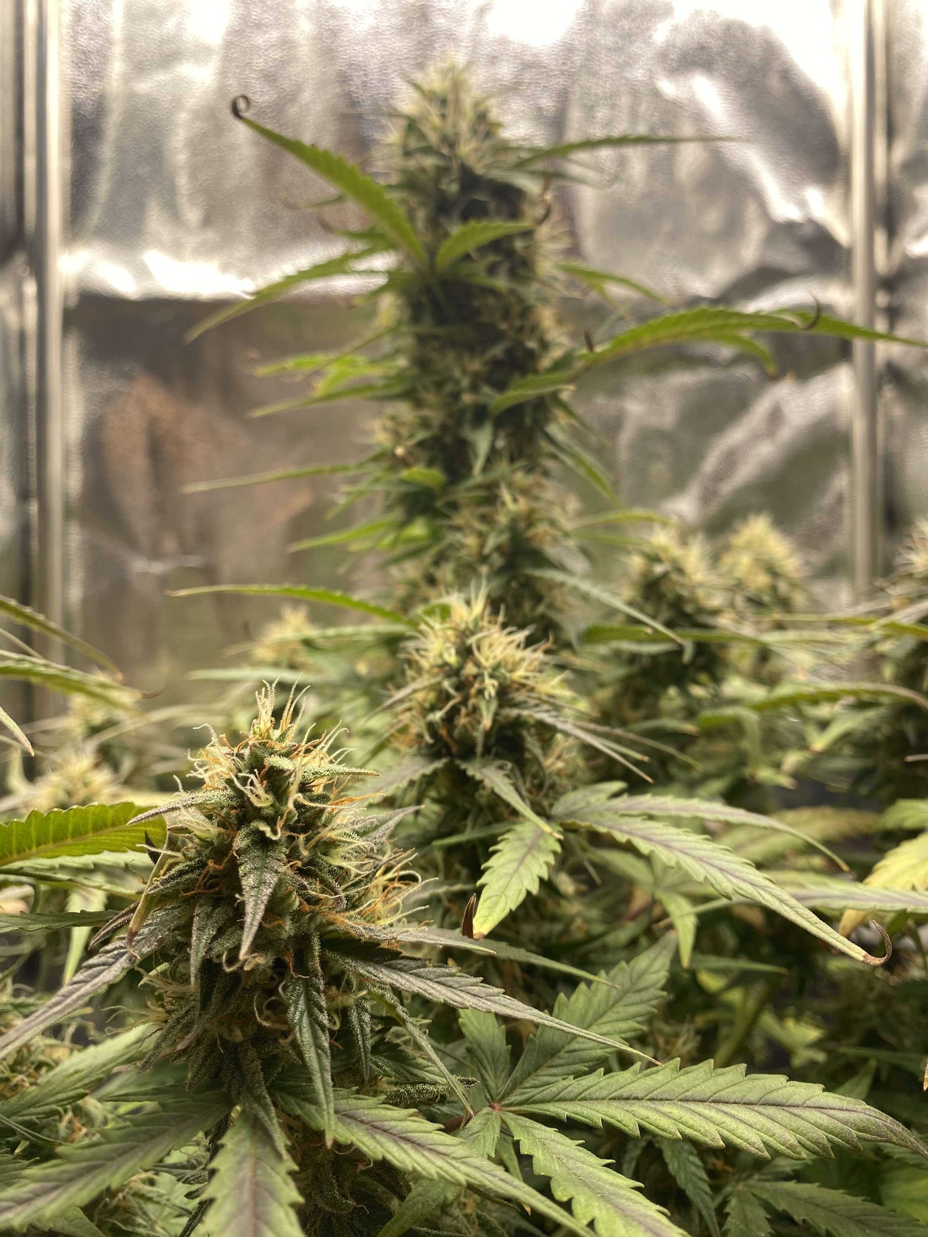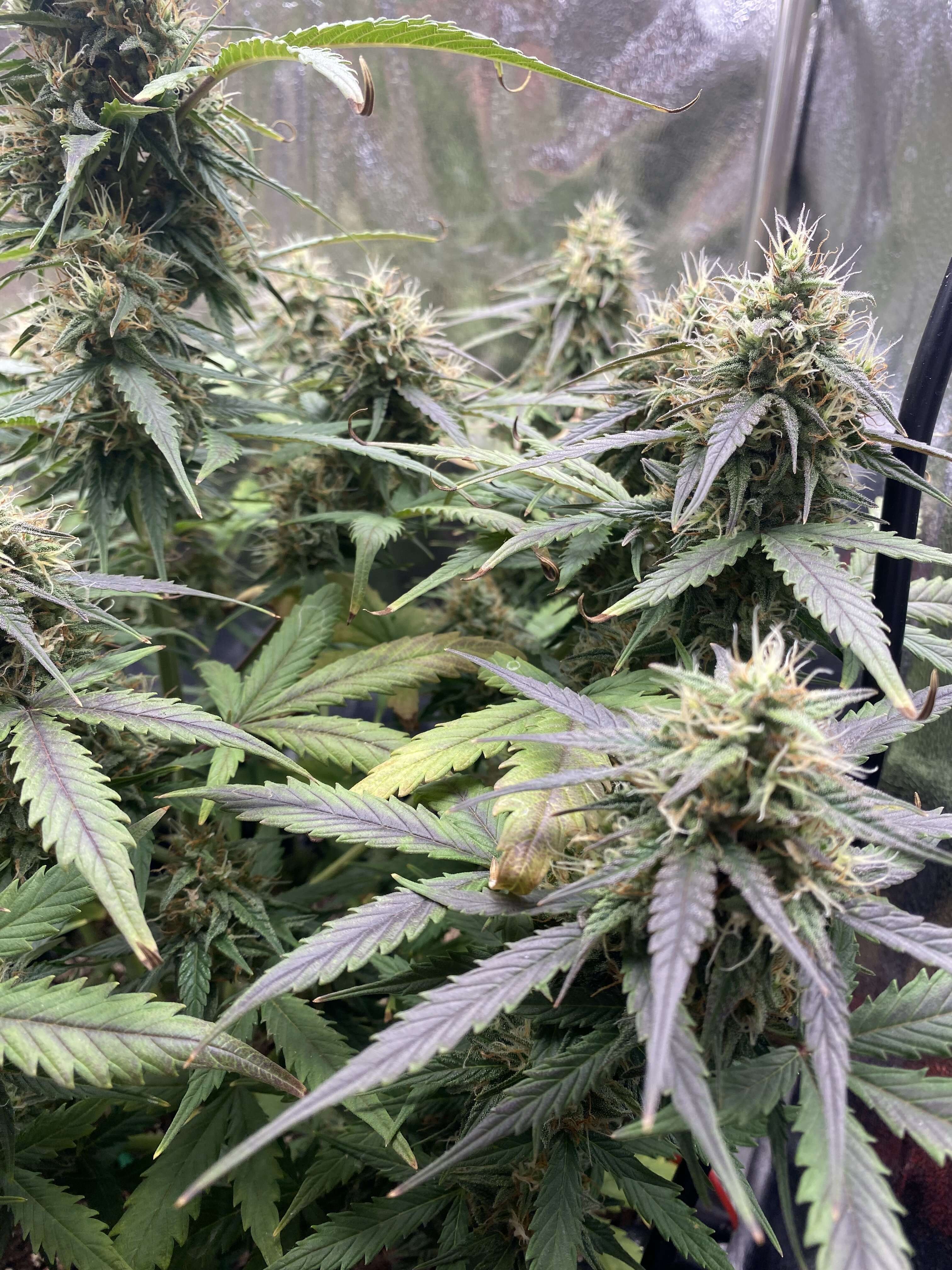Привет. Конец 8 недели , растиха чувствует себя хорошо, благодаря предку Afghan Indica (Mazar). Мы можем отчетливо увидеть фиолетовый оттенок, который выглядит нереально круто . Сама малышка не большая , думаю урожай будет не большой, но мб шишки еще нальются и будут более плотными и пышными , до 10 февраля по паспорту харвест, но думаю еще неделю добавлю , на всякий случай, плюс нету возможности поверить трихомы.. вообщем будем посмотреть.