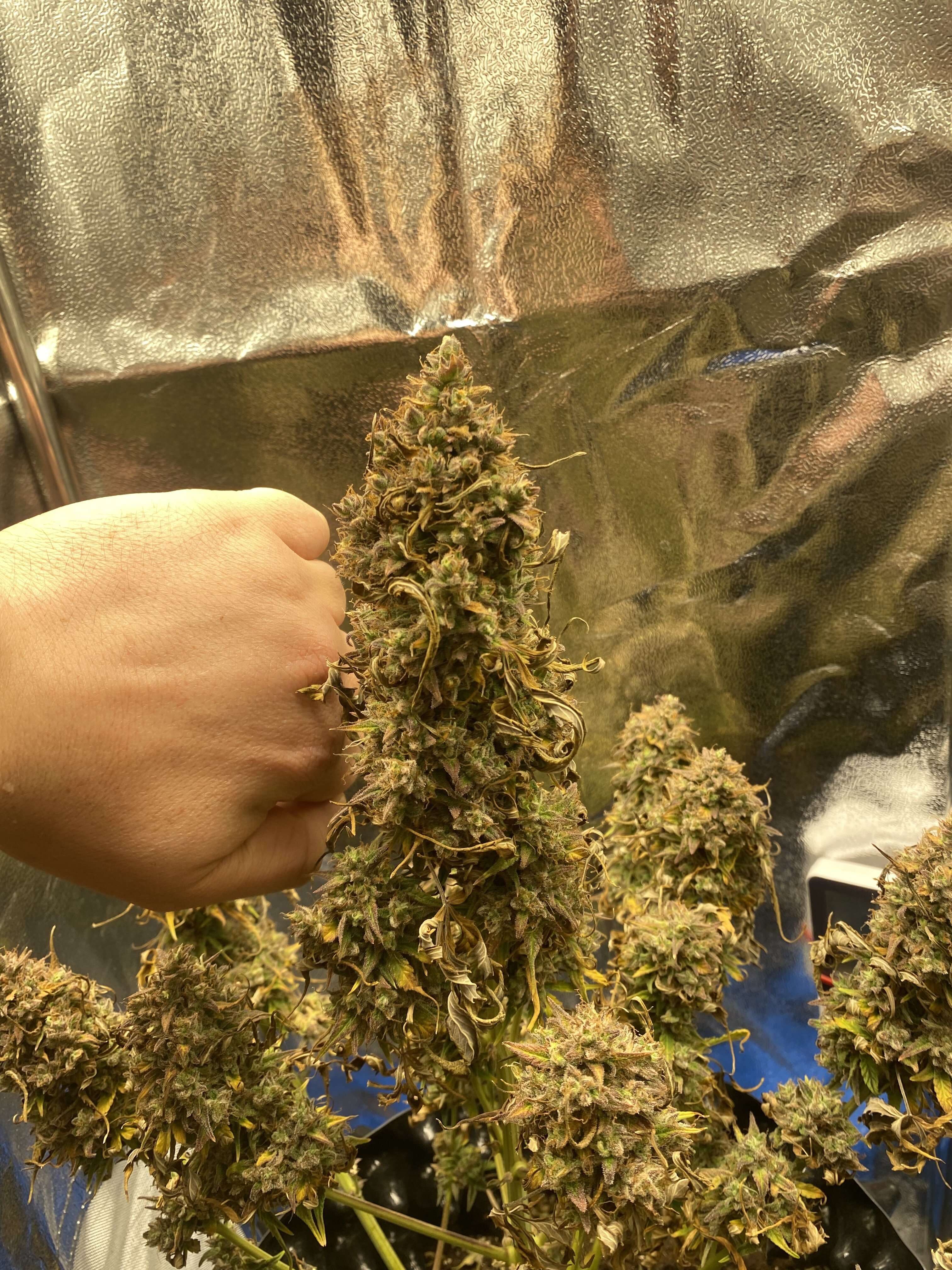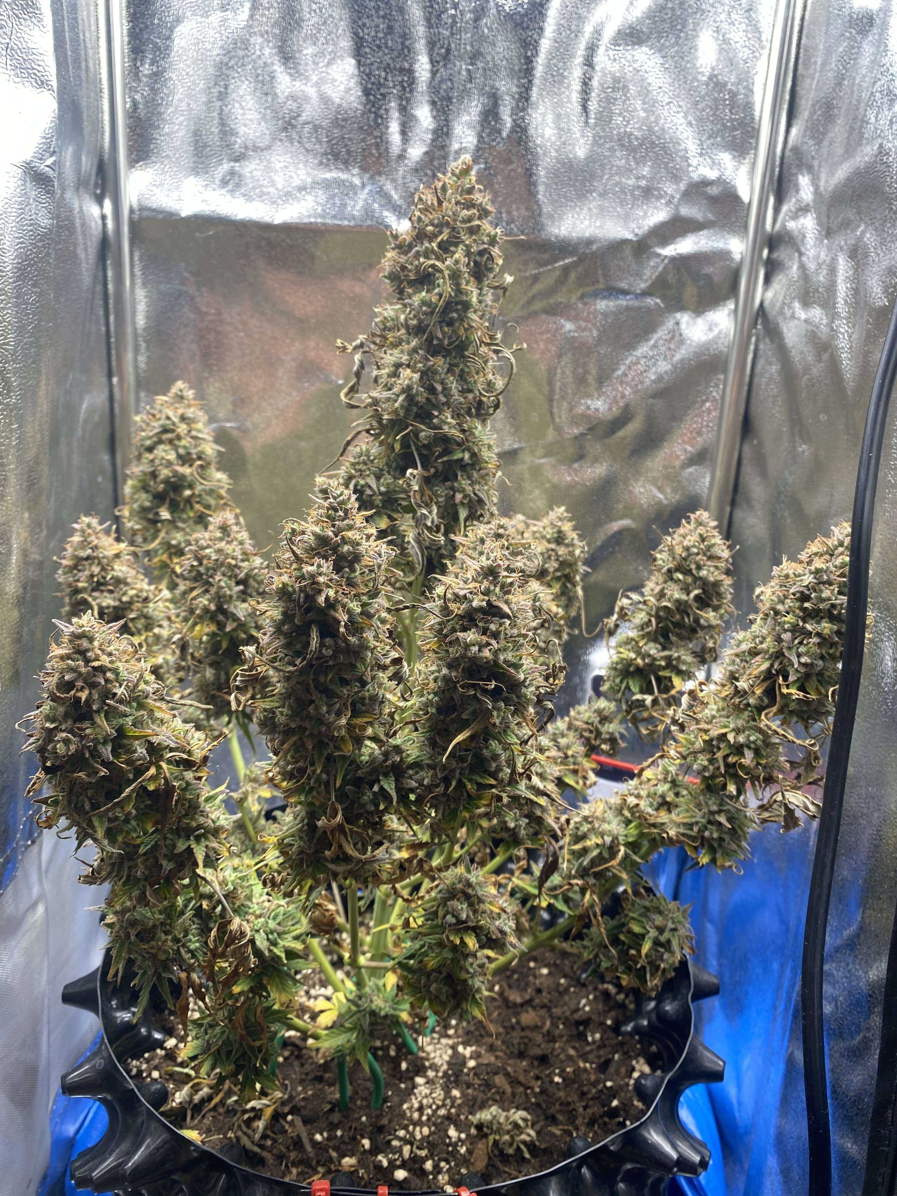И так подошла к концу 11 неделя , куст сам по себе уже харвестится) почти не пьет на фоне как он высох довольно таки неплохие бутоны, думал меньше будут , в предыдущей неделе и в этой , добавлял чуть меньше половины ч.л Мелассы .