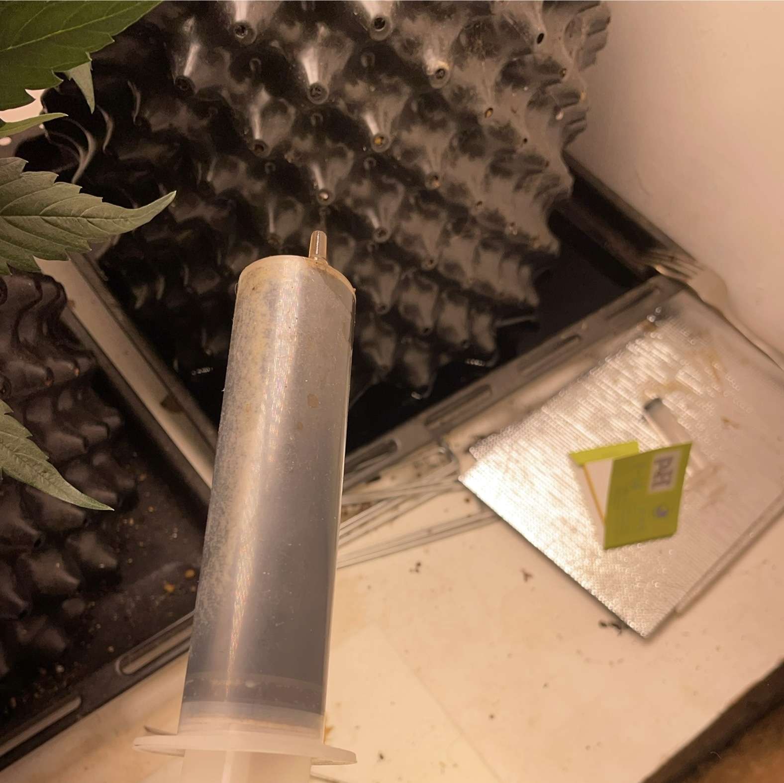 Третью неделю так же просто наблюдал и поливал водичкой, с дренажа шла нефть самая настоящая, разве что не проверял горит или нет