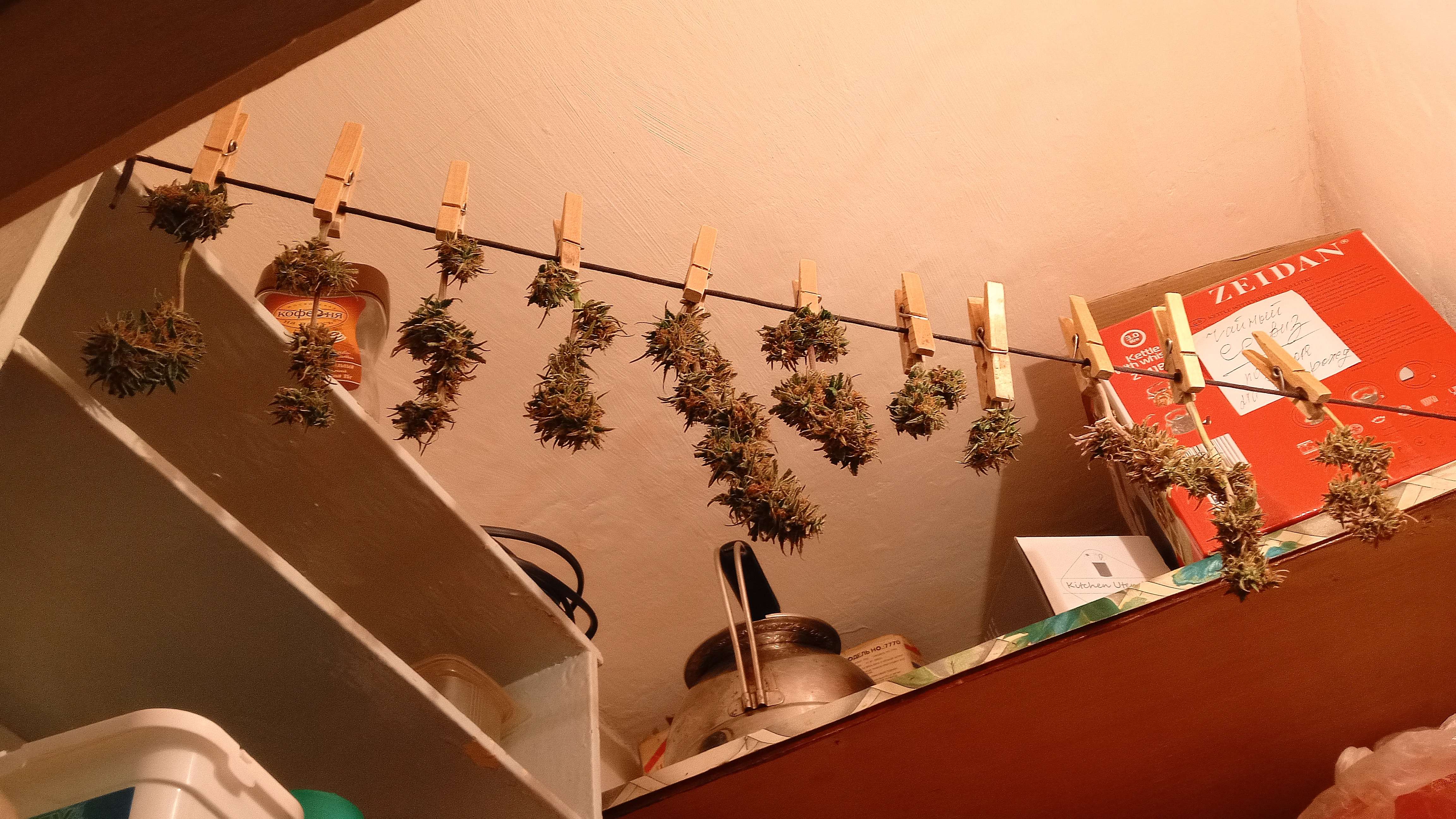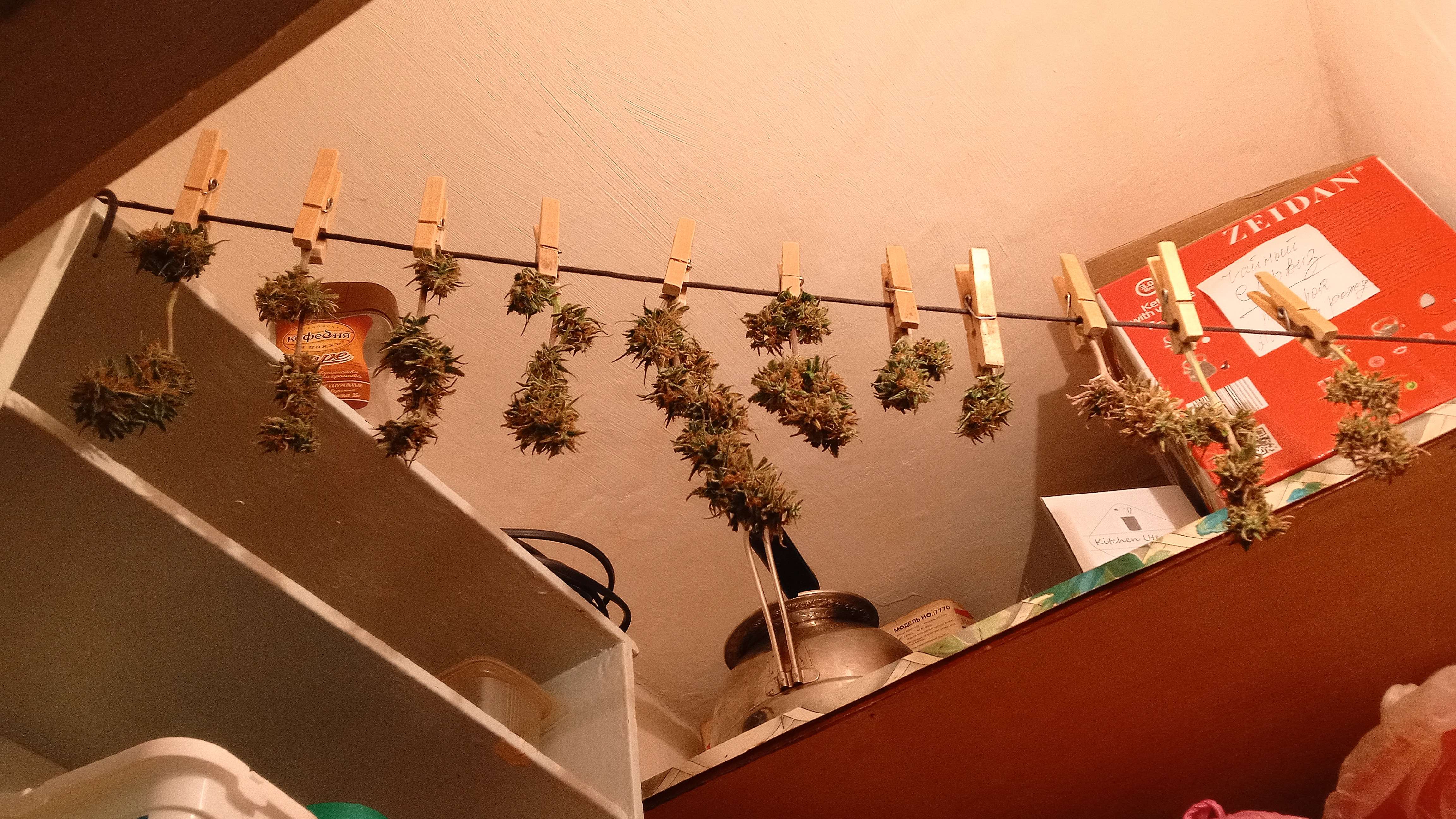 Сделал лёгкий тримминг, повесил в чулан, на кухне "подгоревших товарищей". Подсохнут, на весы и банку с бугельным замком. На балкон, в чулан. А там - 5-10... Норм...