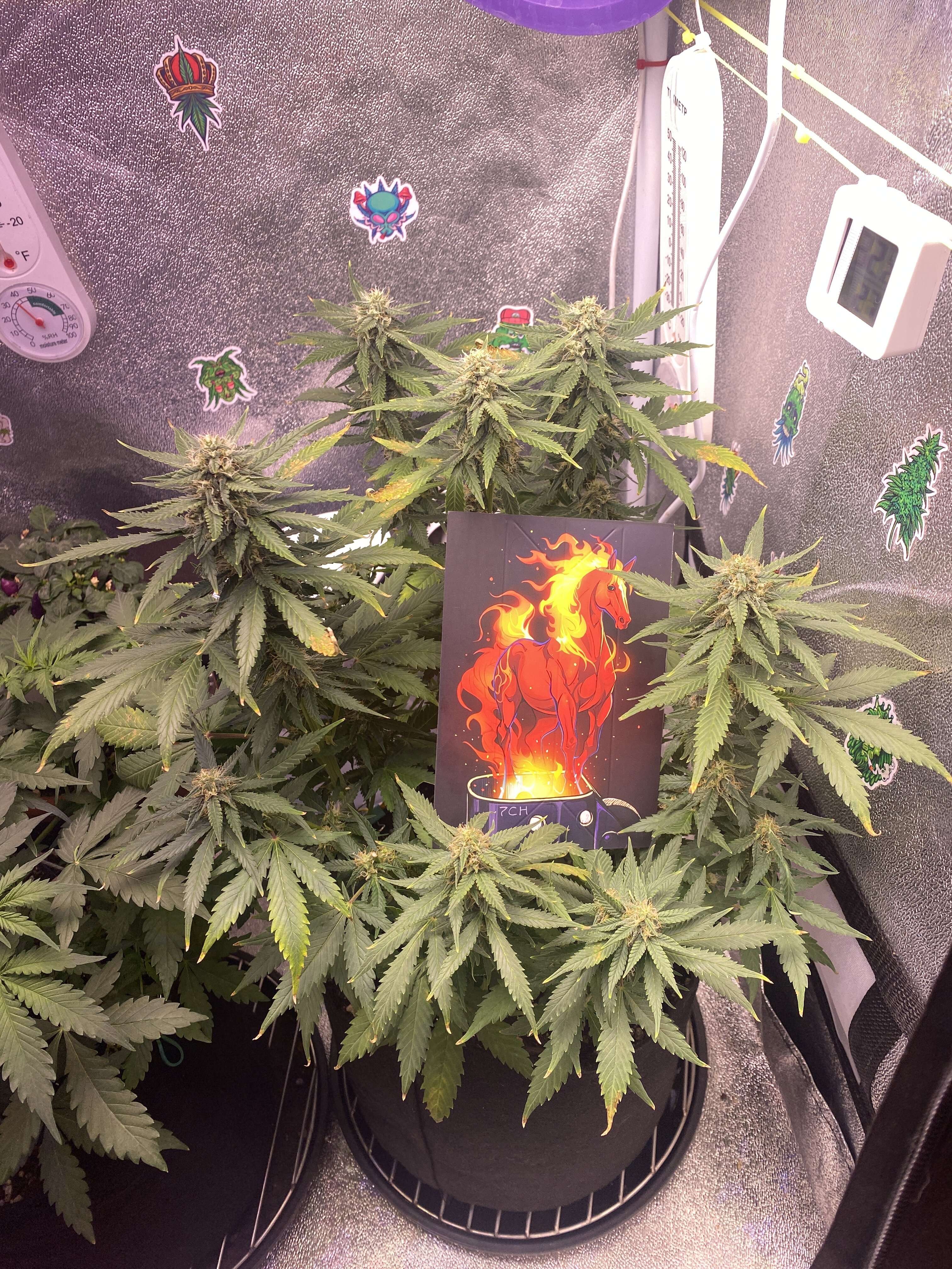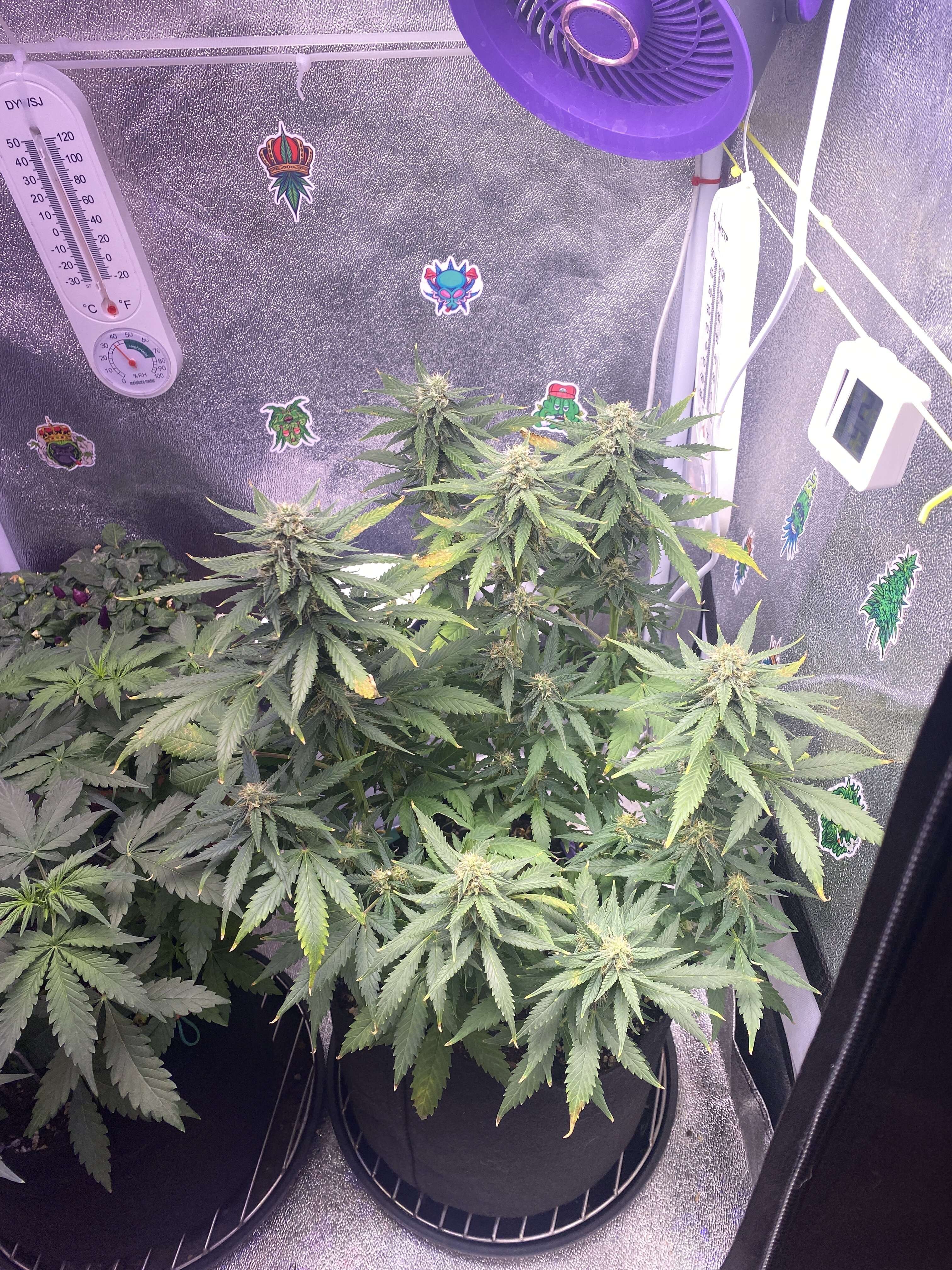 Всем привет✌. Пошла 8 неделя жизни. Цветем и пахнем! Поливы по стандартной схеме. С пш вроде проблем нет. Даю 6.6-6.8. По свету стоит под 45к люкс. Немного беспокоят рыжики, но думаю не критично.