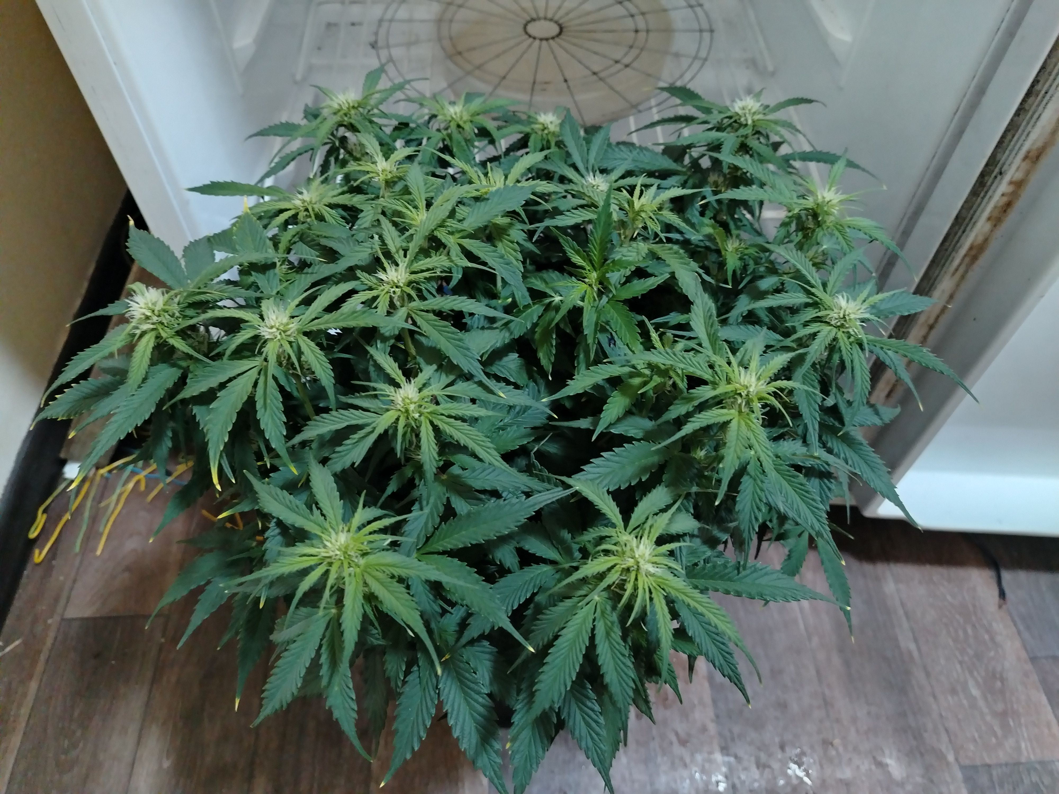 52 дня от каски. Снова полил водой 3,7 литра, 6.7 пш, 208 ппм. Дренаж 0,4 л, 7.2 пш, 872 ппм. Наверное следующий полив будет компотом. Ппм больше не скачет до космических значений. Начал потихоньку чистить низ, удаляя по 2 листа в день. Ну очень густо они прут. Многострадальный клон растёт и курится) Едем дальше