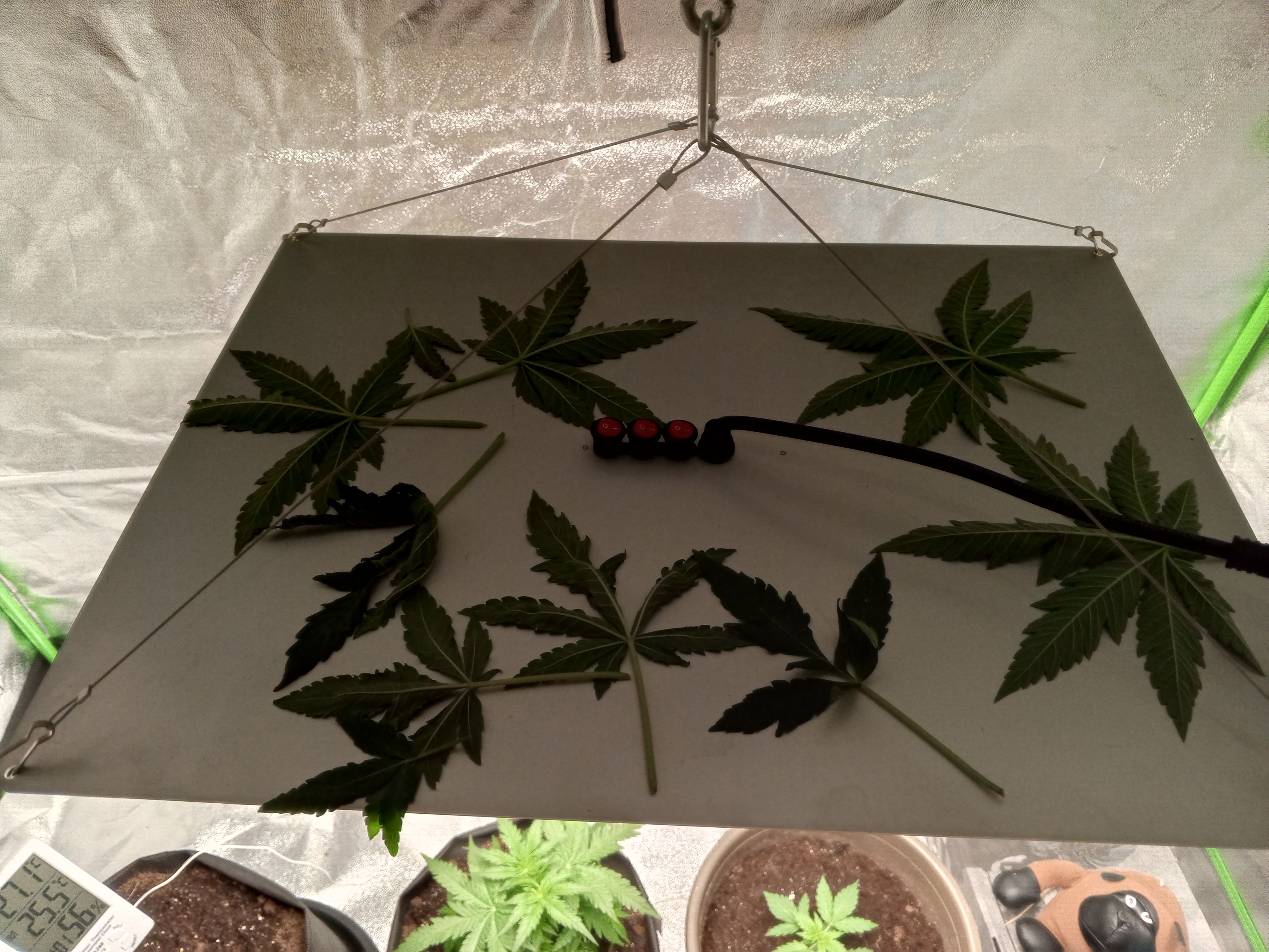 Приподнял горшок на 10 см, приблизительно до верхушек Гориллы. Добавил света до 13000 Lux.