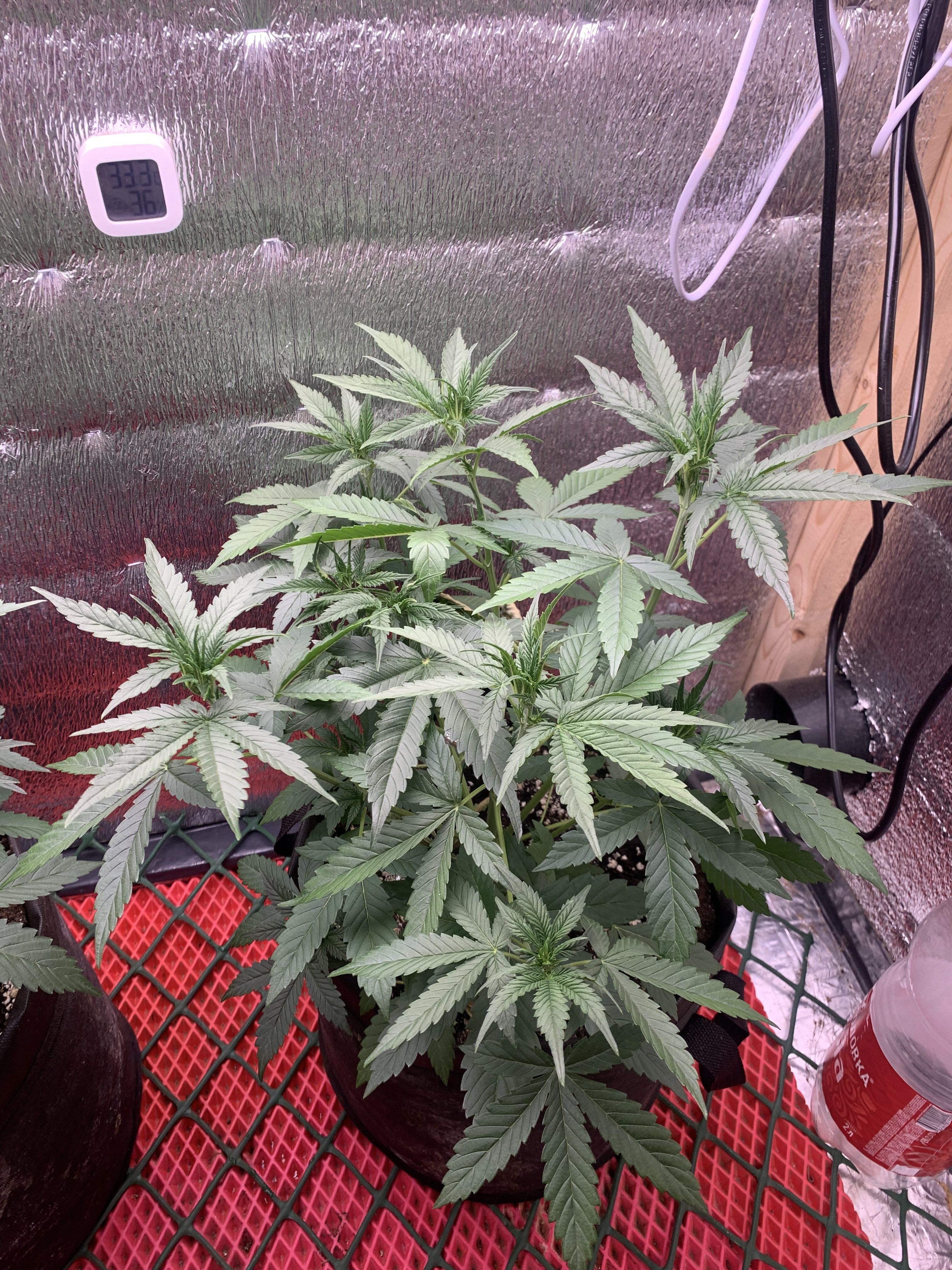 Всем привет 👋, начало 4 недели , сегодня 22 дня от каски , ту которую поломал стрельнула ппц , была меньше первого куста , а теперь обогнала 🤣 походу любит бдсм😁 и так полив рут джус 8мл, гроу 1мл, блум 1мл, топ макс 0.6мл, хевен 1мл, активера 1мл, алгамик 1мл, на два литра воды