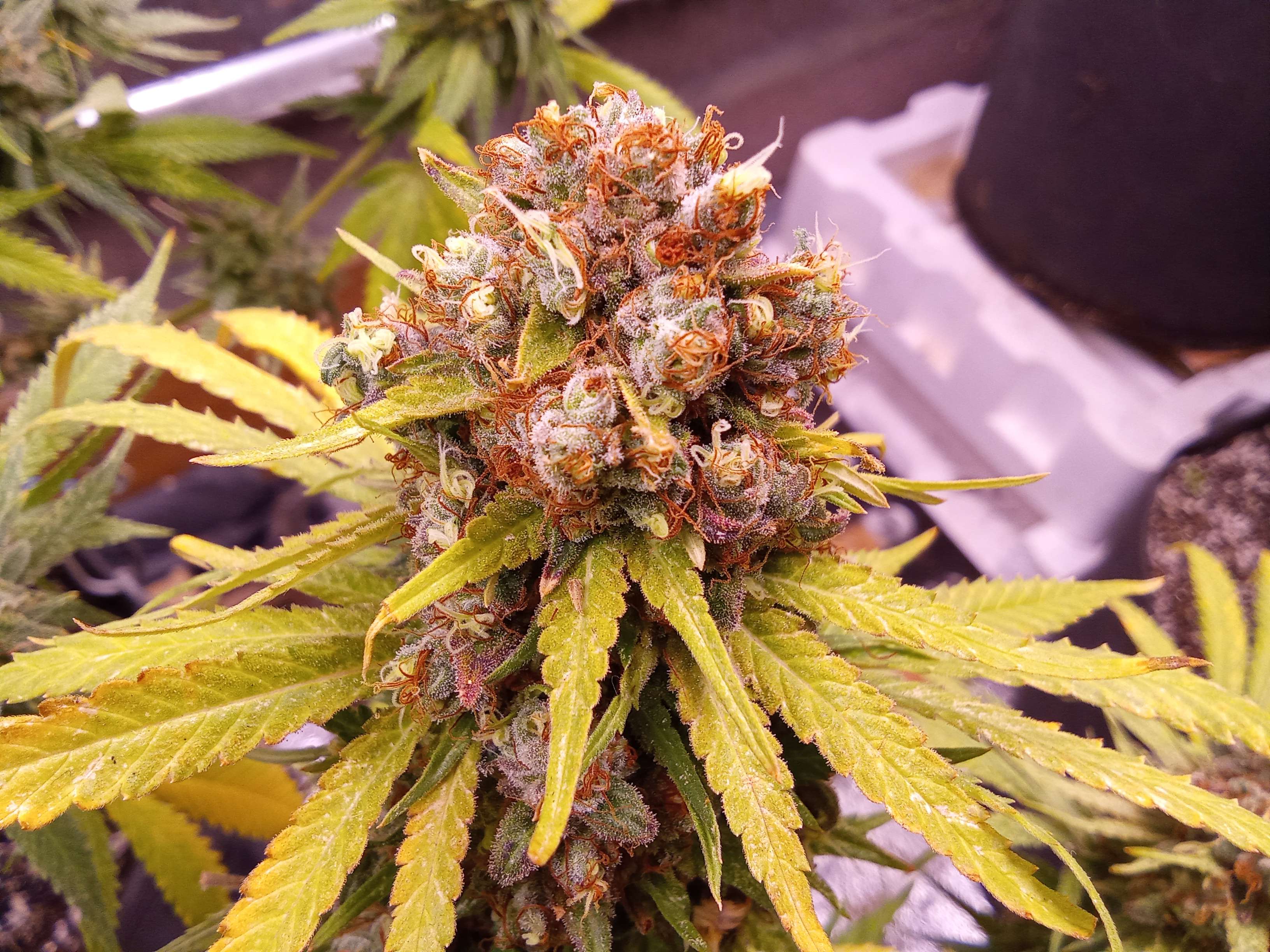 Спасибо, бро! Трихомки все прозрачные) в основном, кое где чуть мутных, янтаря капелюшки) еще недельку-две наверное будем стоять) а некоторые и дольше)