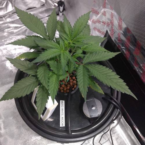 ще две недели вегетации прошли без сюрпризов и неожиданных проблем. К концу пятой недели кустик представлял из себя небольшое, но крепкое растение с широкими листьями. Автор репорта не применял никаких методик тренировки растений. В течение этих двух недель количество удобрений было увеличено до 1.3 мл/л. За счет этого ppm раствора составлял 700.